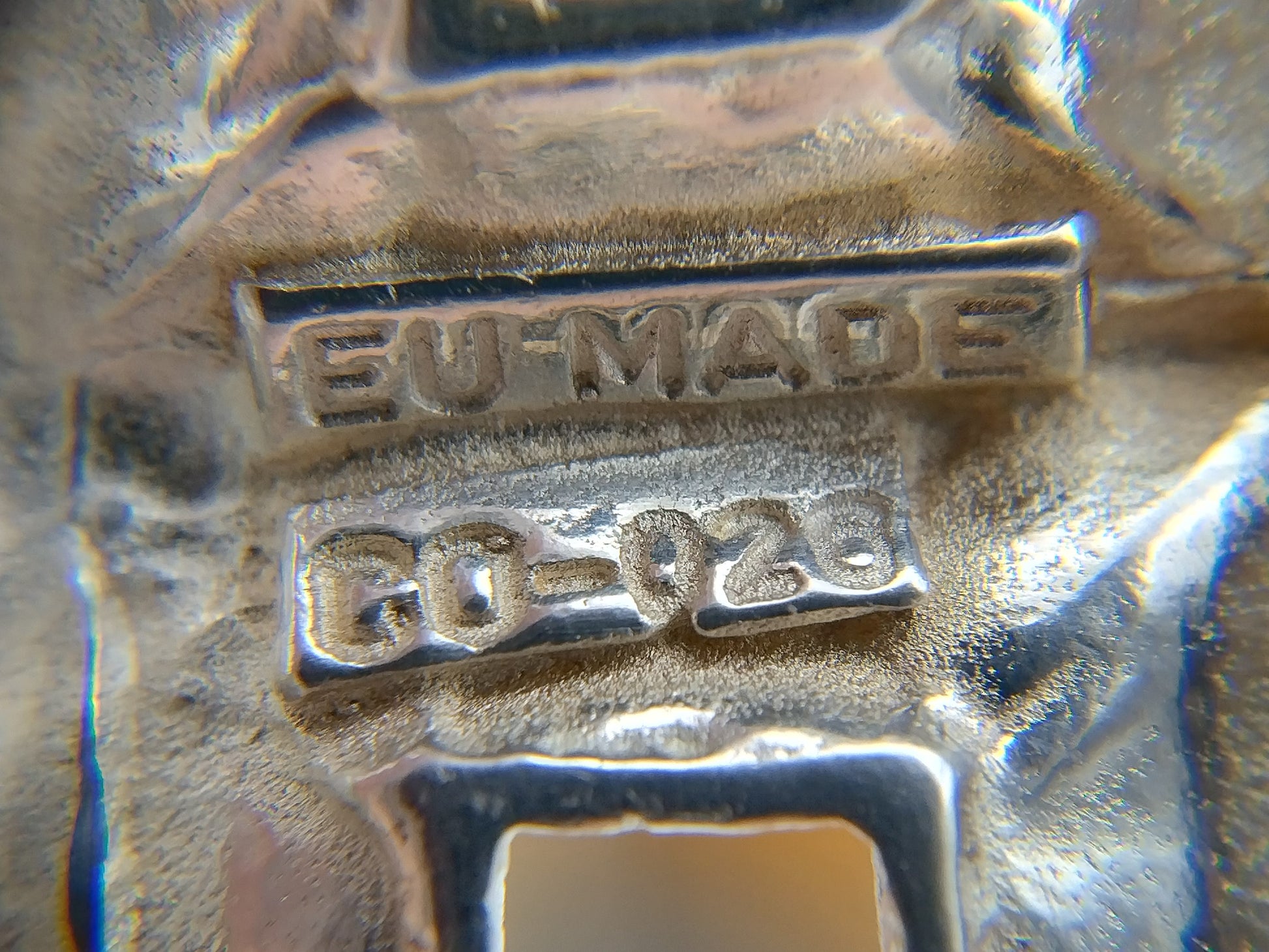 Hallmarked 930 for 1st grade silver. Also hallmarked EU Made.