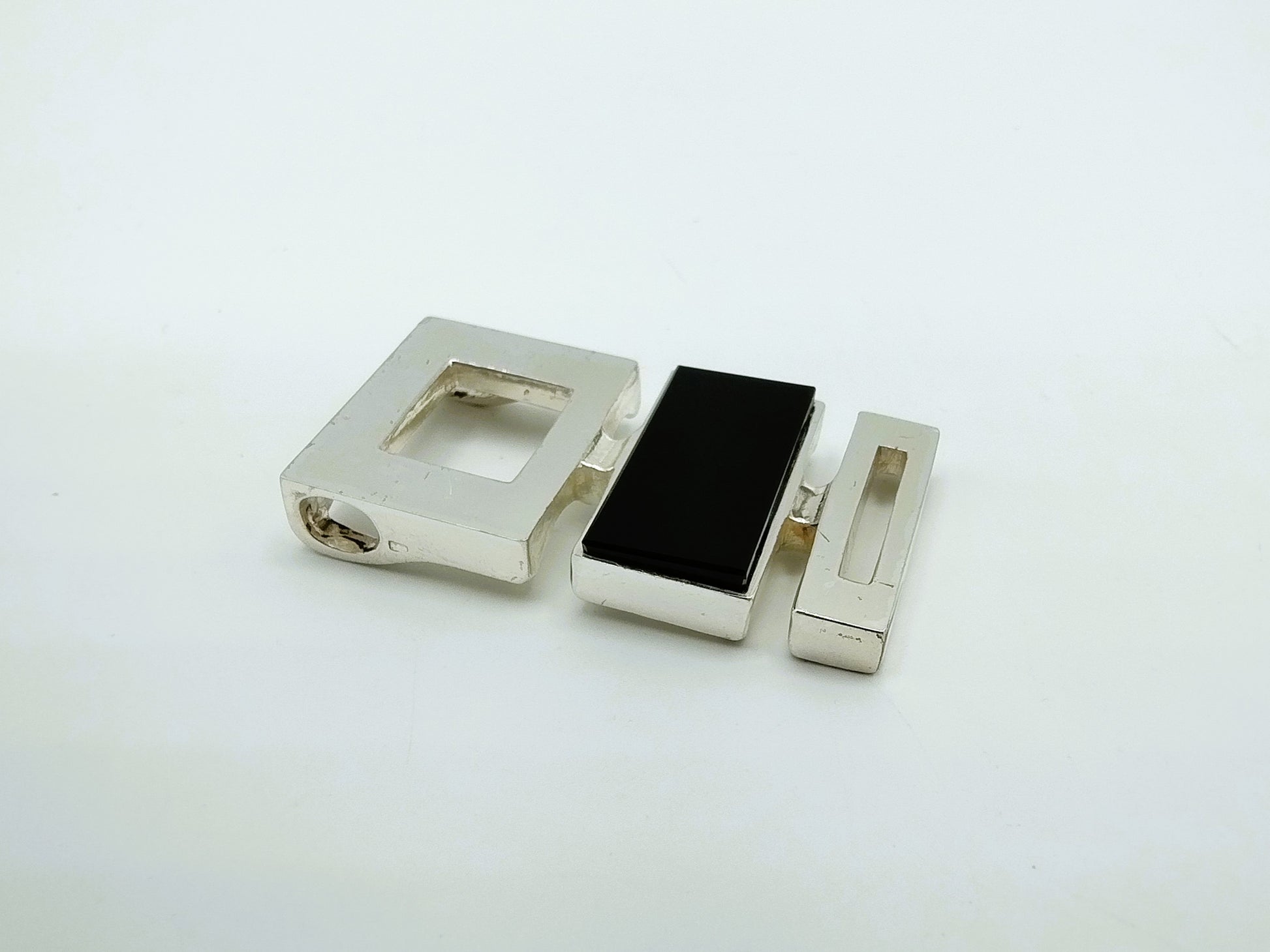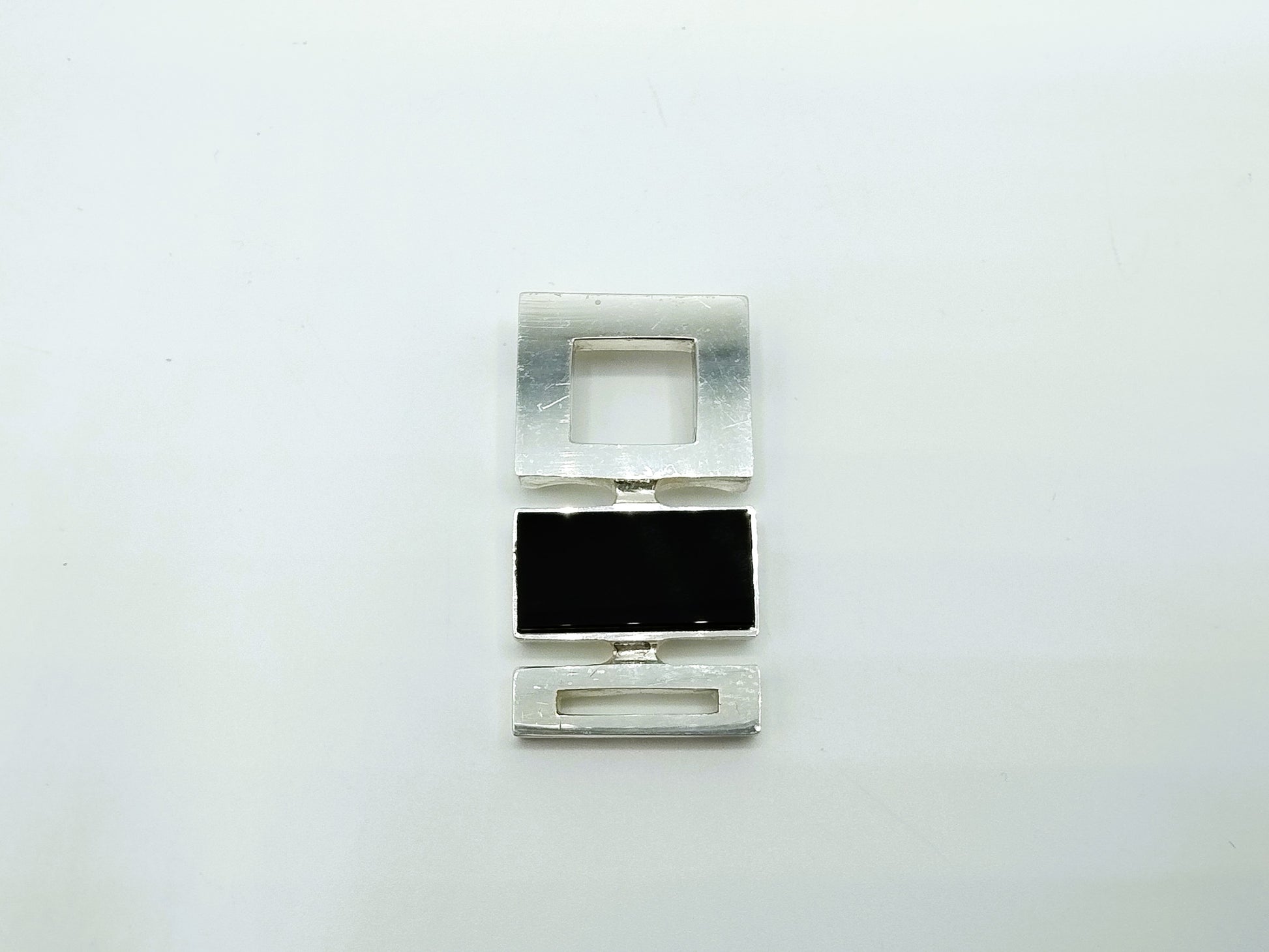 Silver design pendant set with Onyx. The pendant has a cubist design.