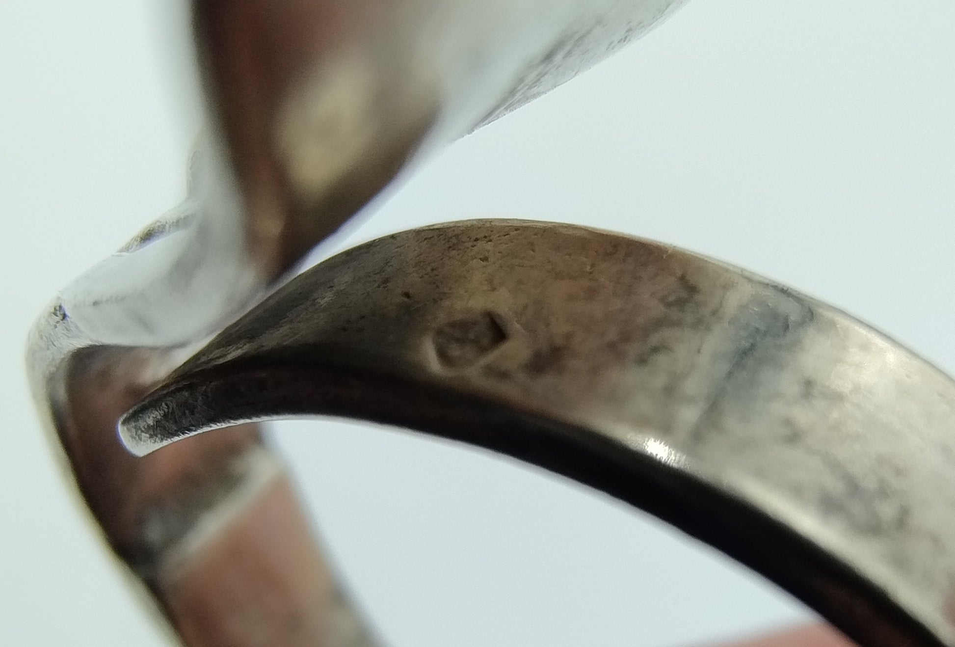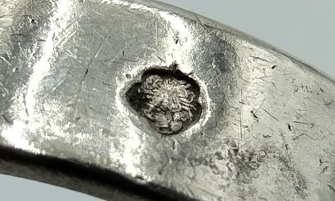 The ring has been hallmarked with 2 hallmarks, but both are difficult to decipher. (see pictures)