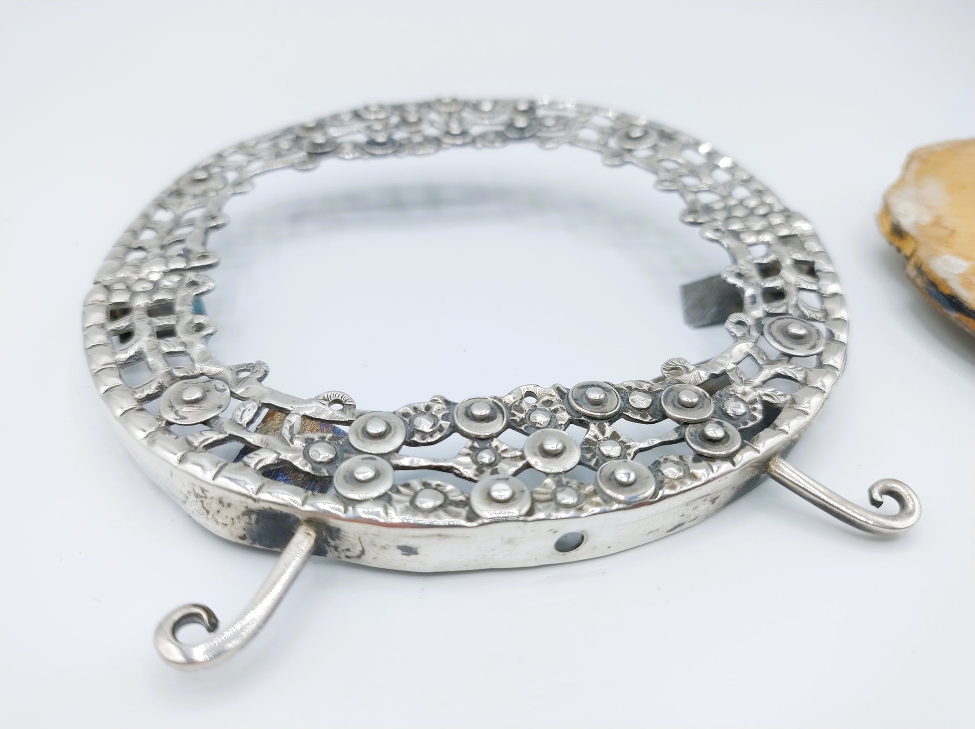 Silver weight: 45.3 grams. Total weight: 65.6 grams. Dimensions: 10 x 10.5 cm.