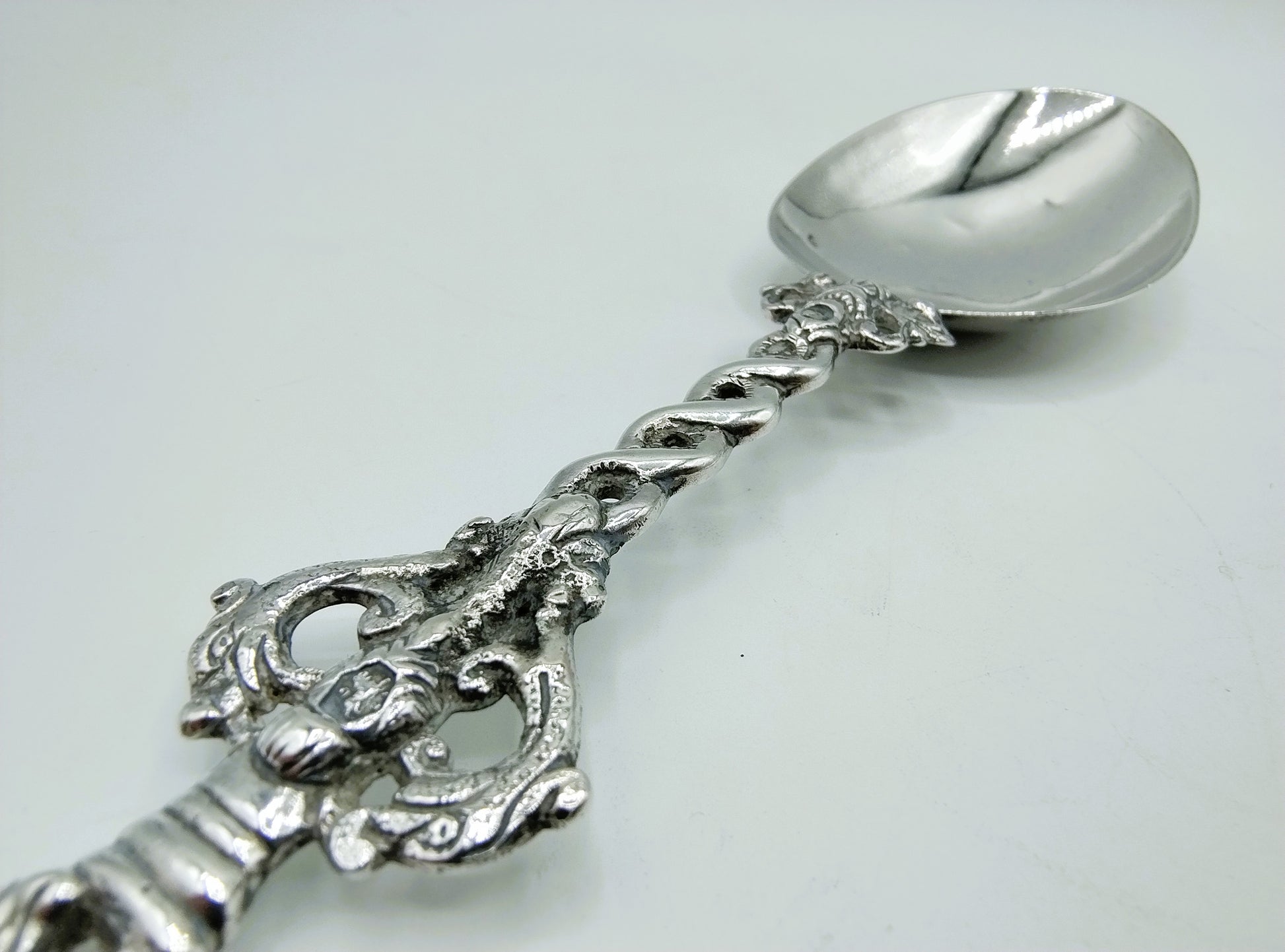 The spoon is marked with master mark HA98, 2nd grade mark, Minerva head and date letter c for 1862.