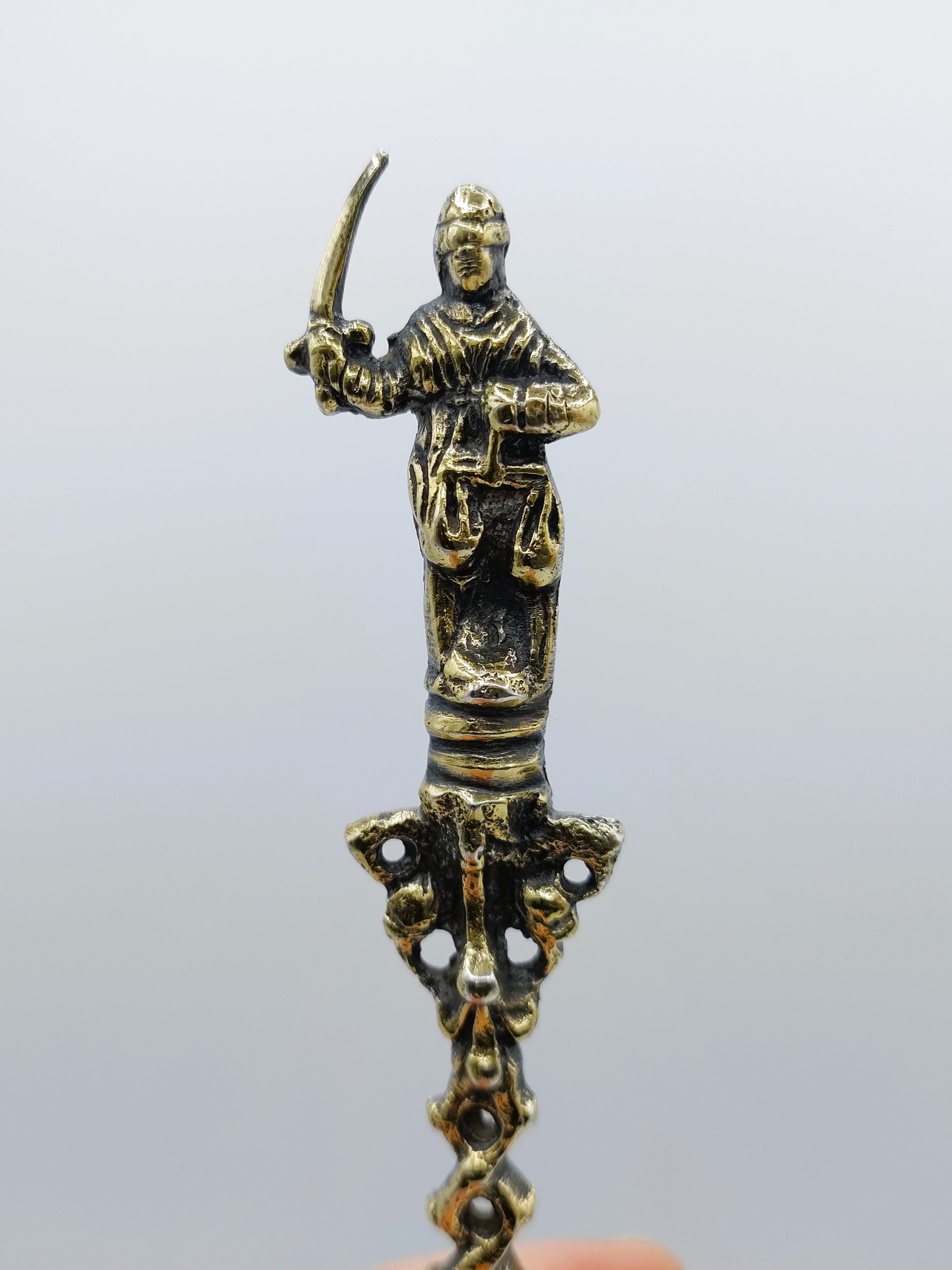 Gilded silver occasional spoon with Lady Justice as the crowning glory.