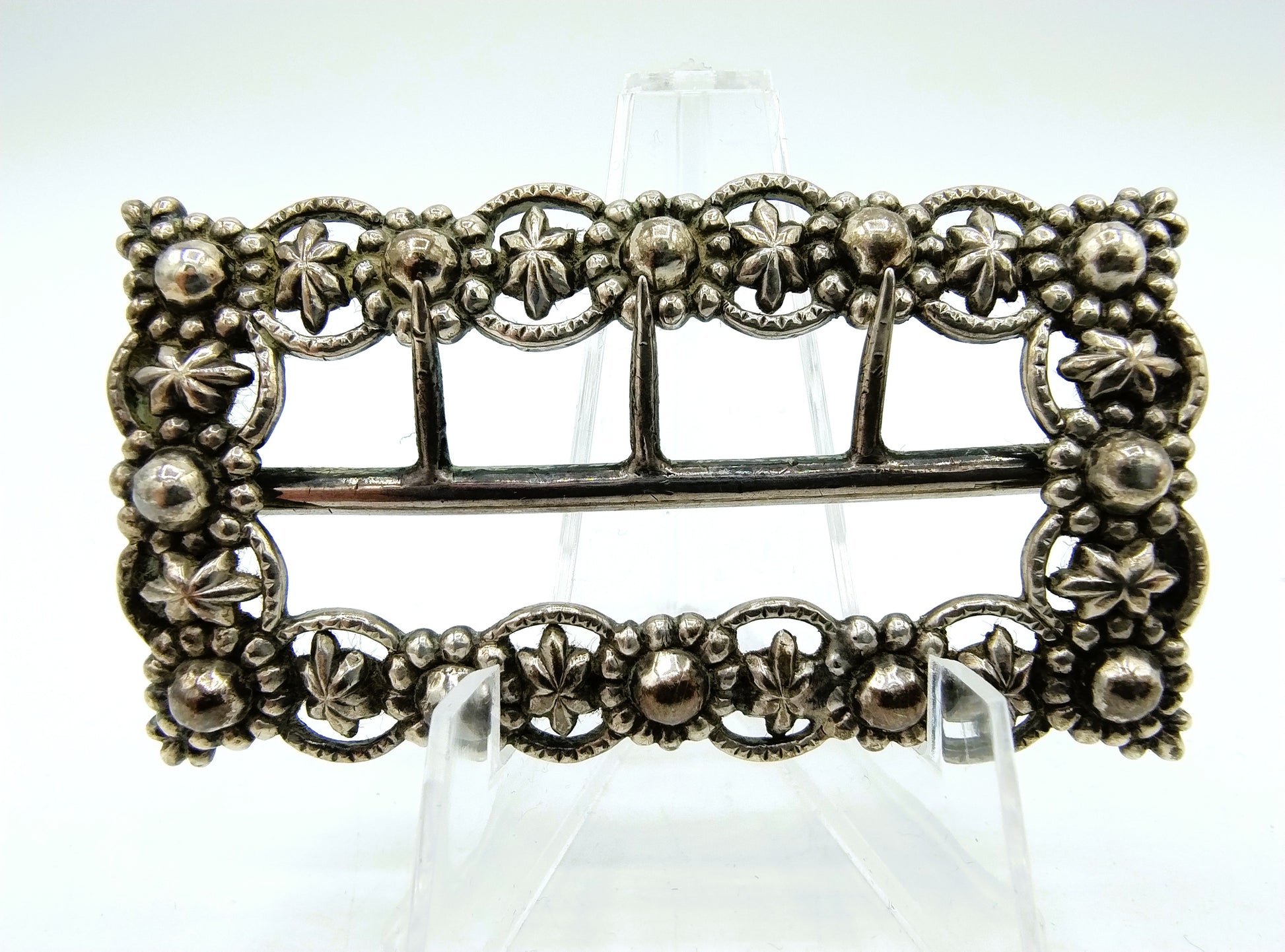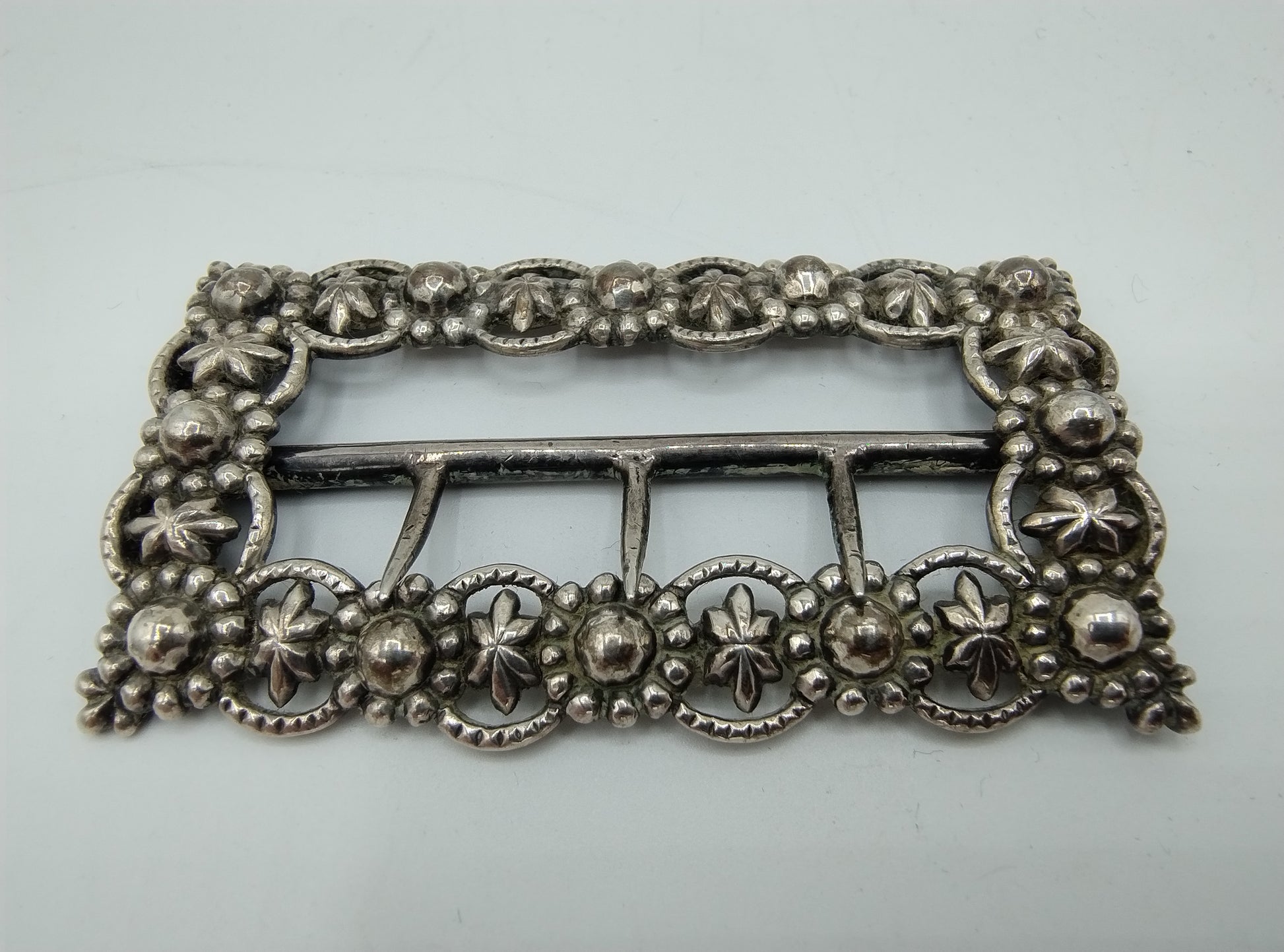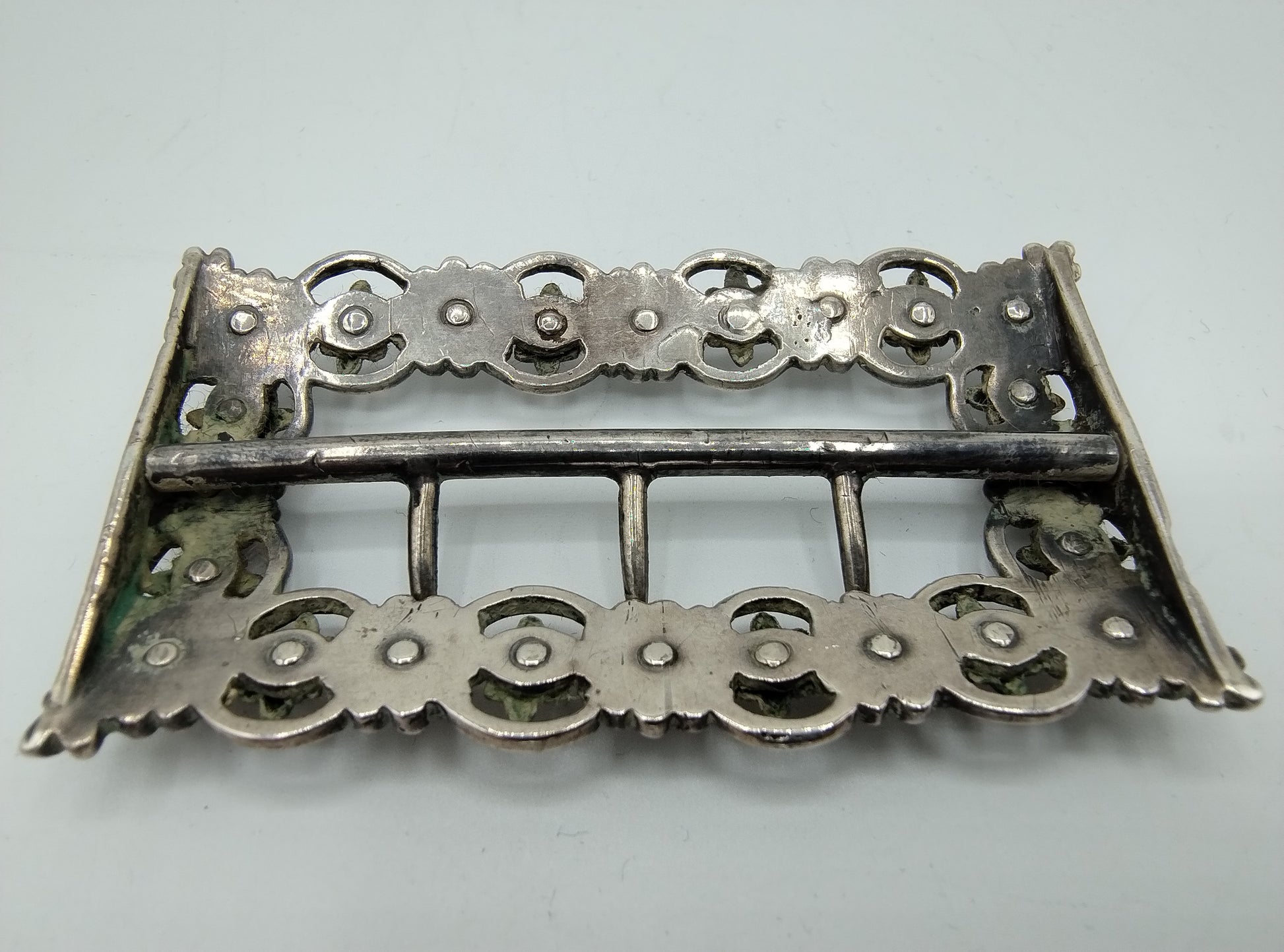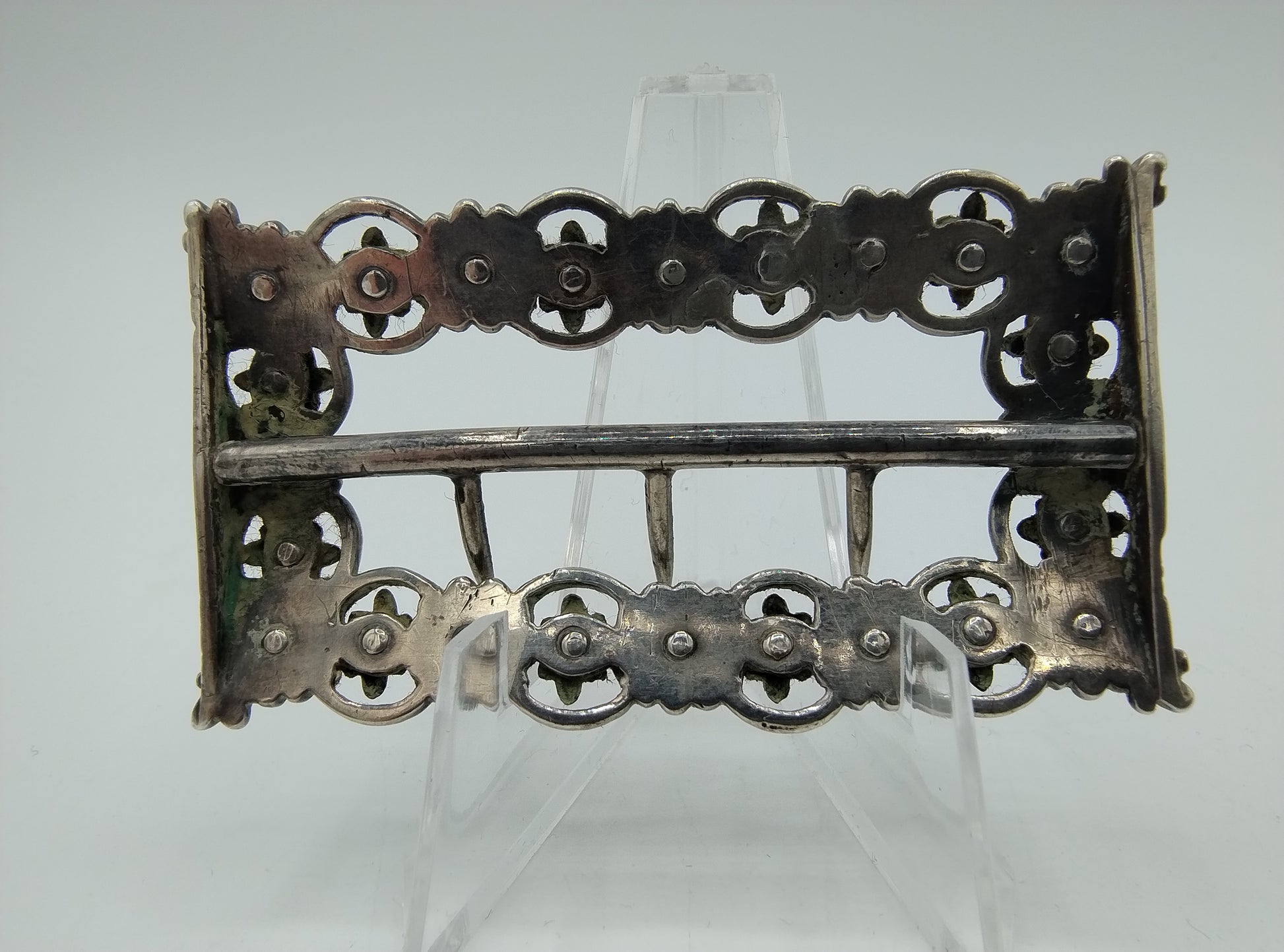 English silver buckle made by the firm of Charles Rawlings & William Summers from London. Dating around 1850.
