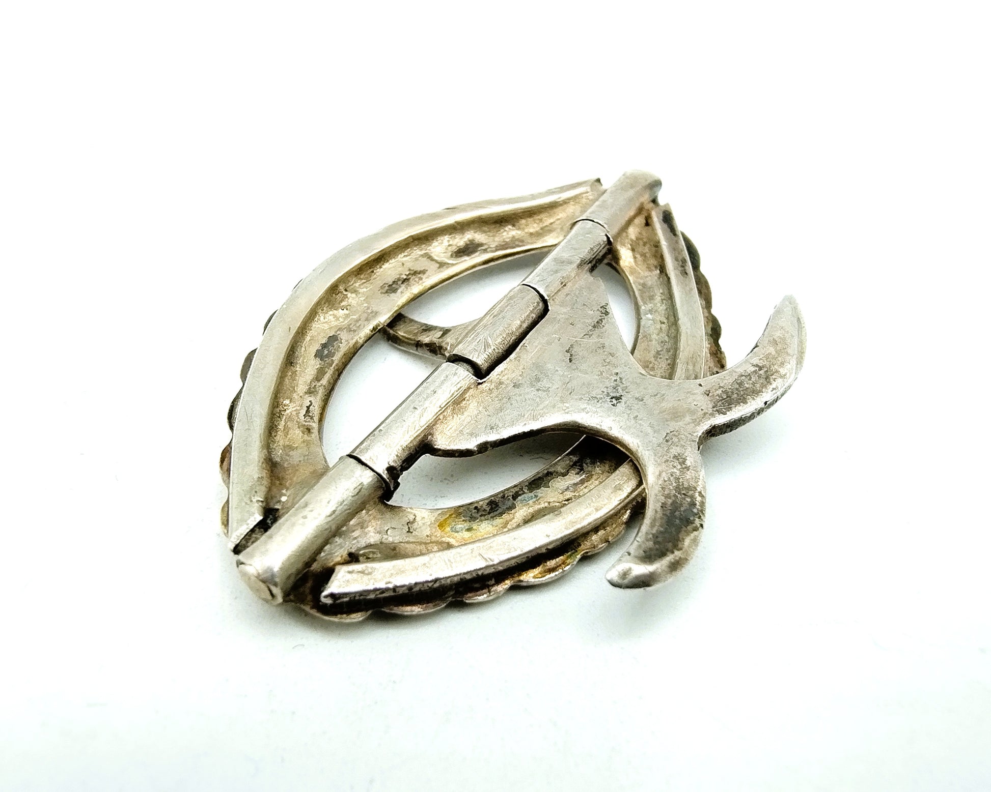Silver buckle made by the silversmith J. van de Berg from Schoonhoven. Active from 1837 to 1853.