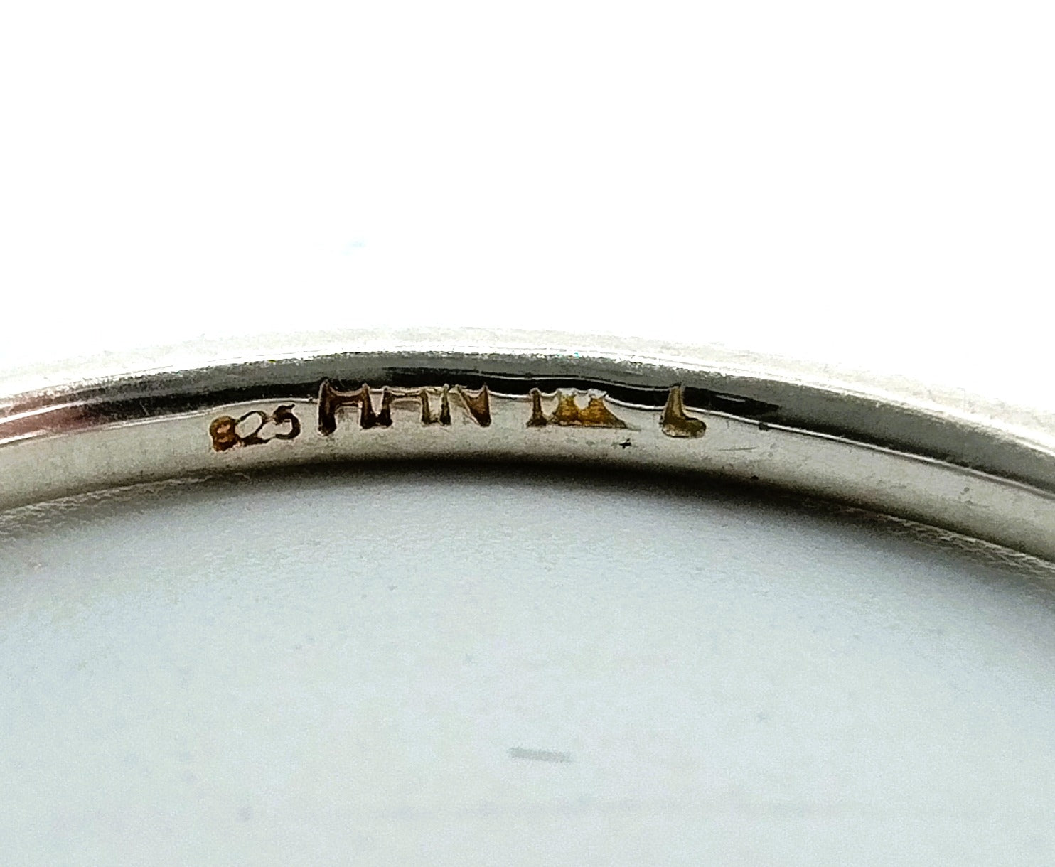 The ring is hallmarked with a maker's mark, 925 for 1st grade silver and 14k for 14 carat gold.