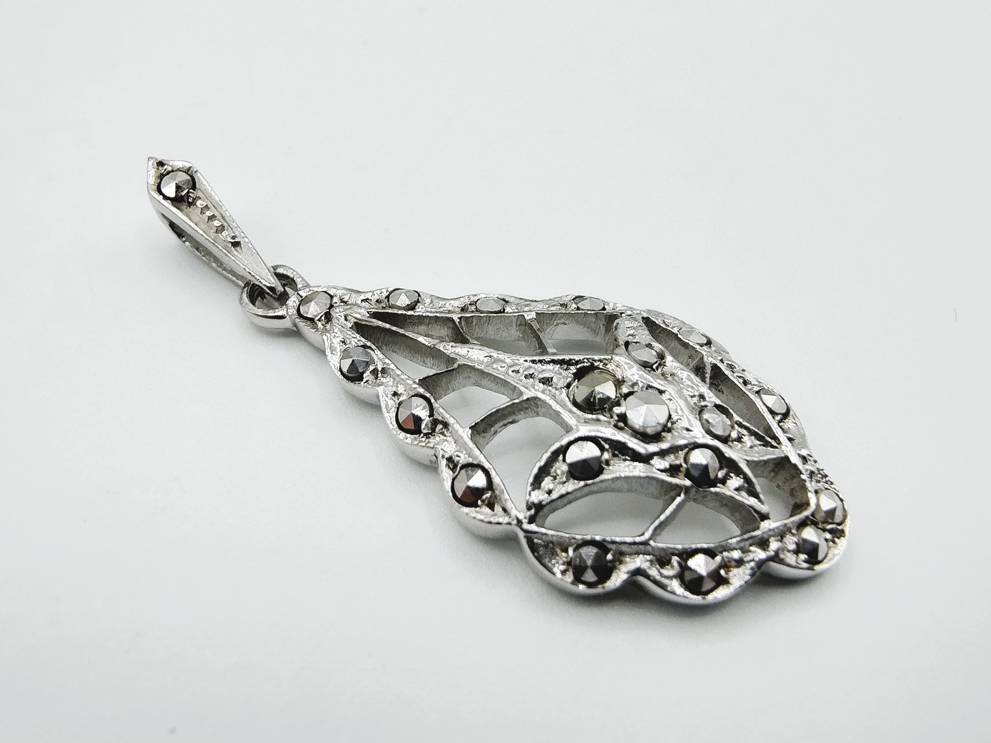 Vintage silver pendant set with cut marcasites.