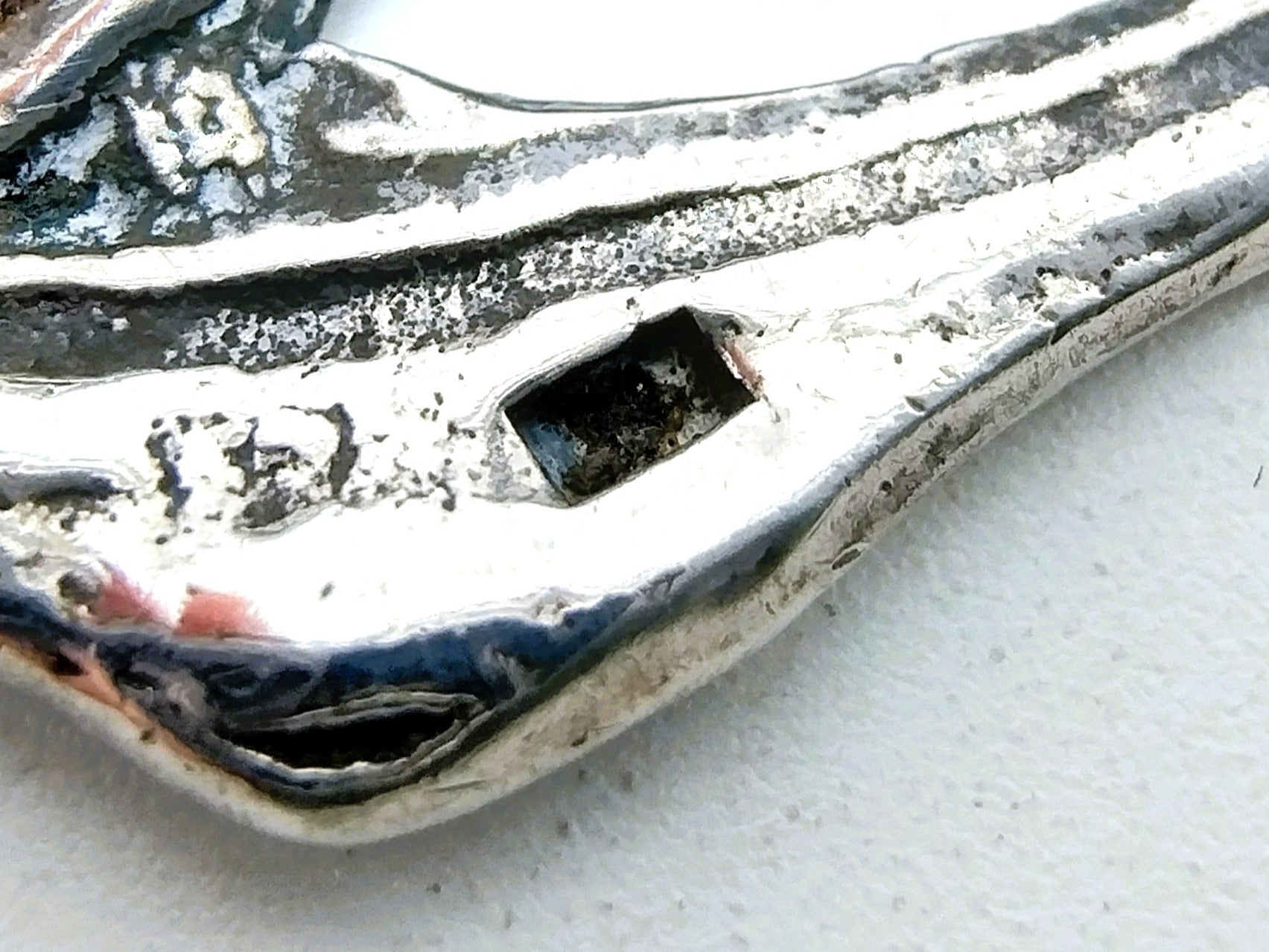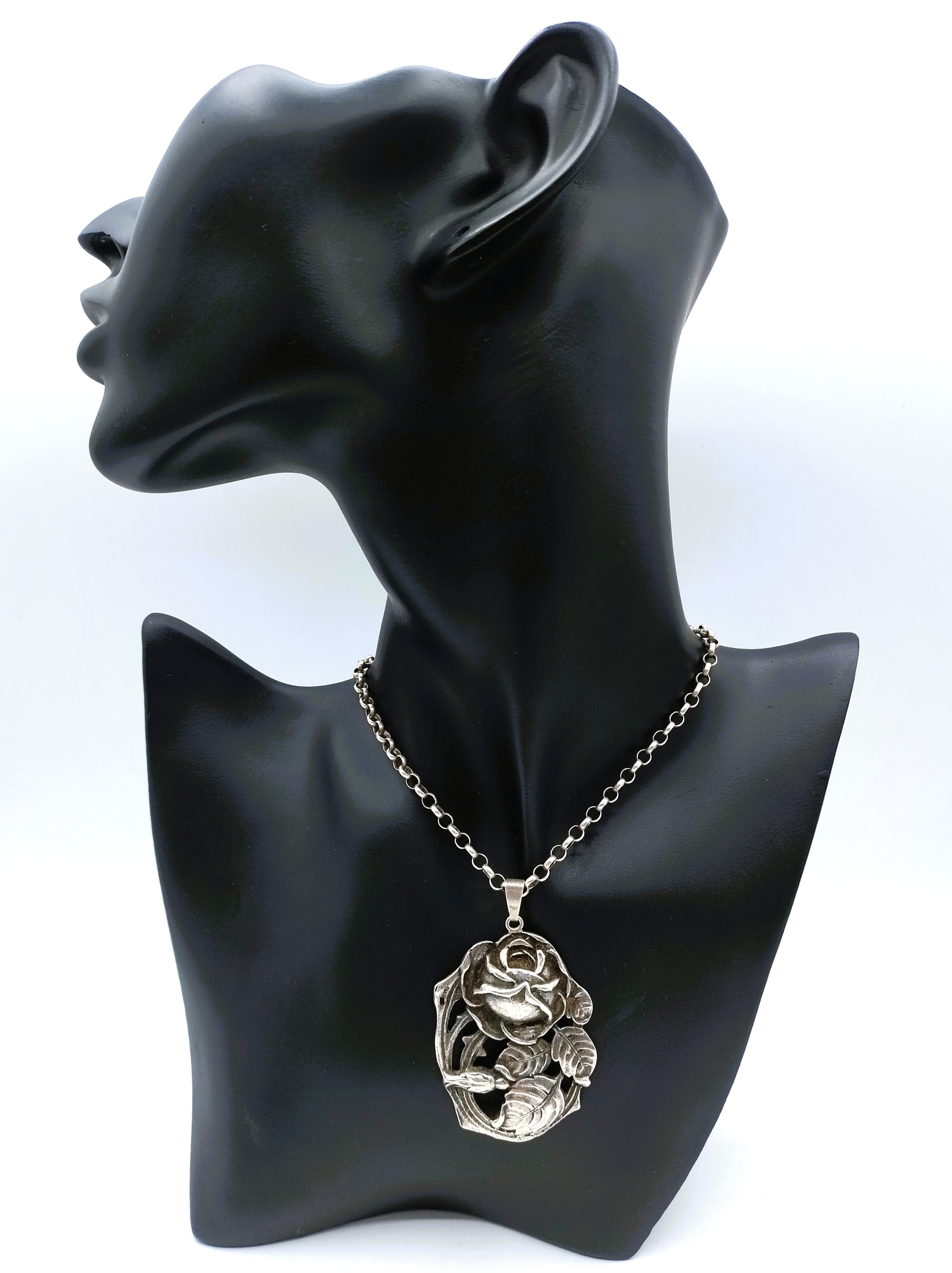 The pendant has the following dimensions: 5.5 x 4 cm and is marked with an unclear master mark. The chain is marked 925 for 1st grade silver.