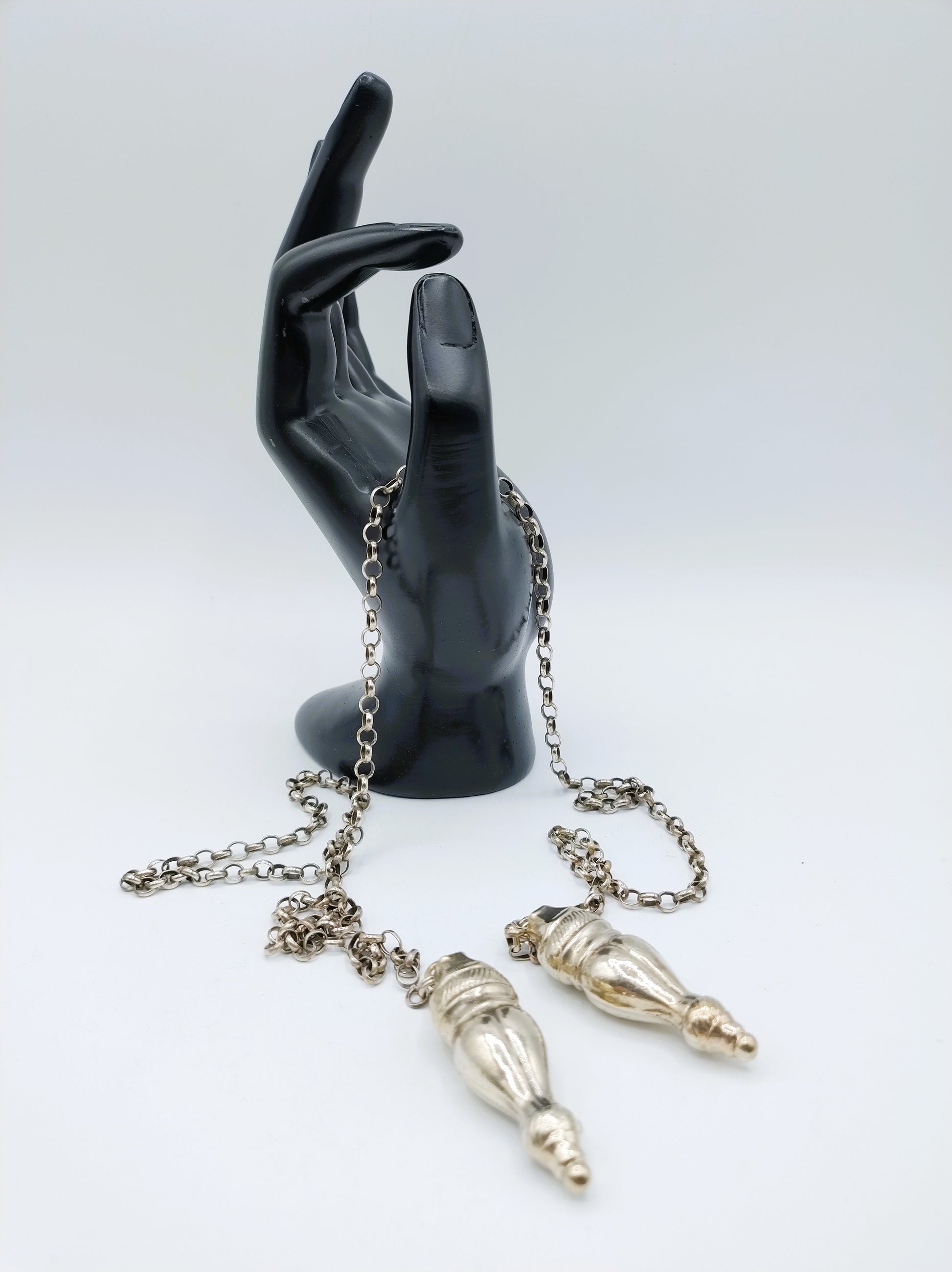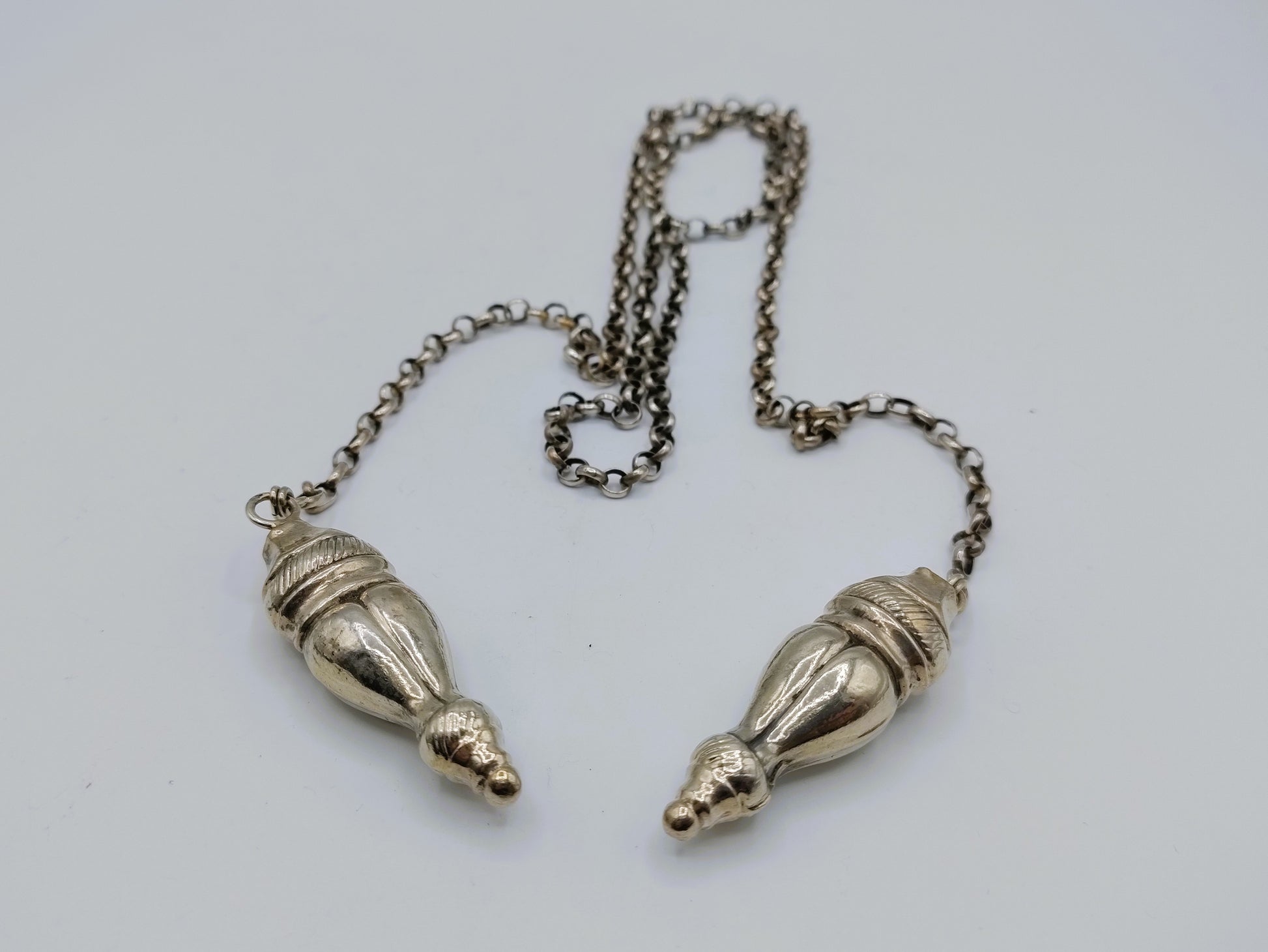 Silver chain necklace with knitting needle caps, H. Looren - de Jong, Schoonhoven
