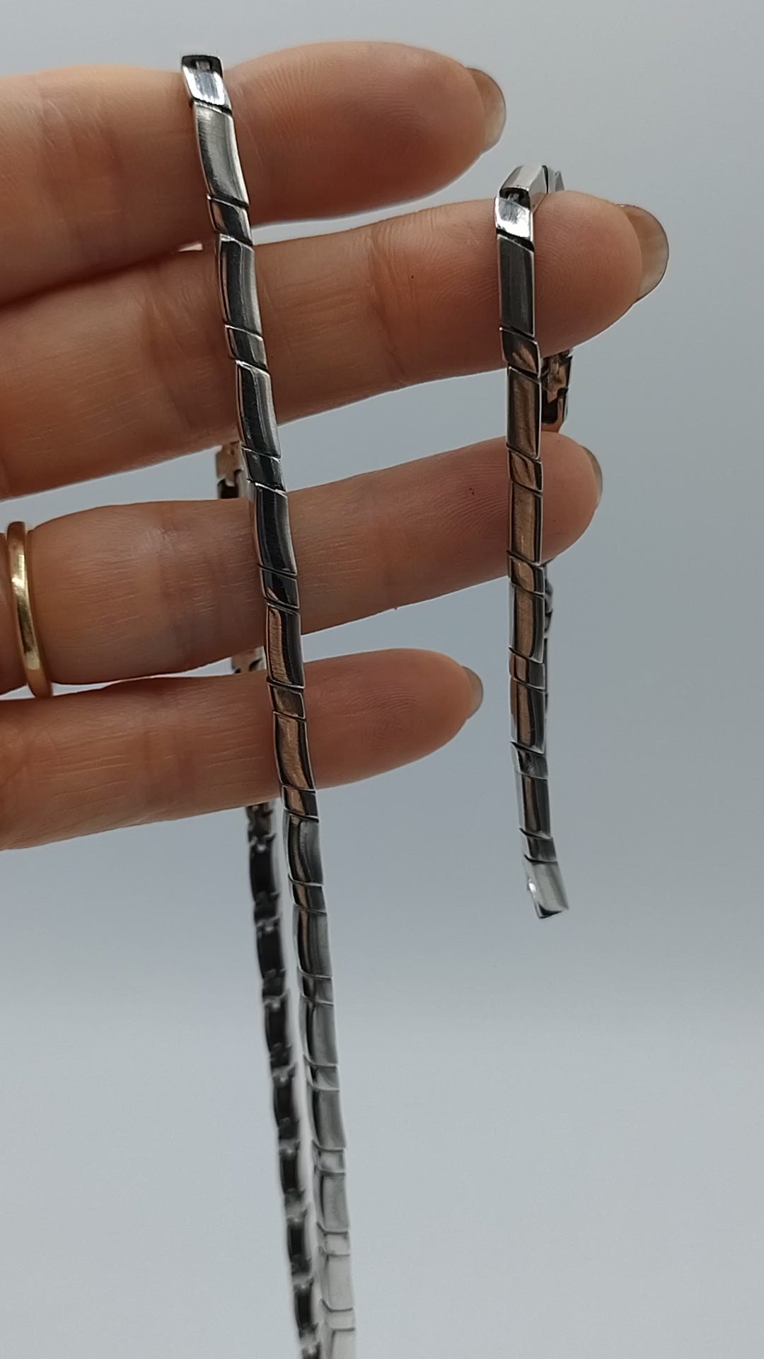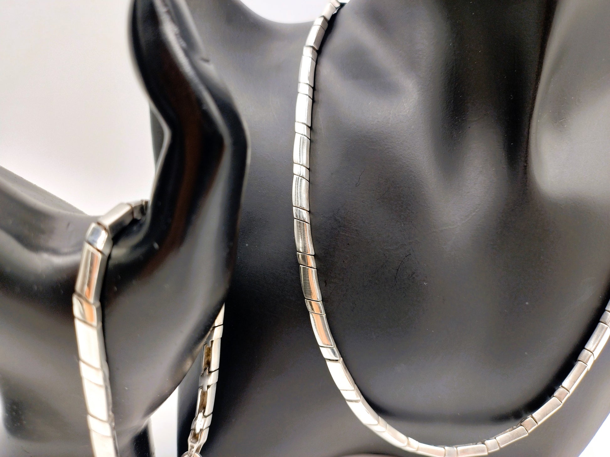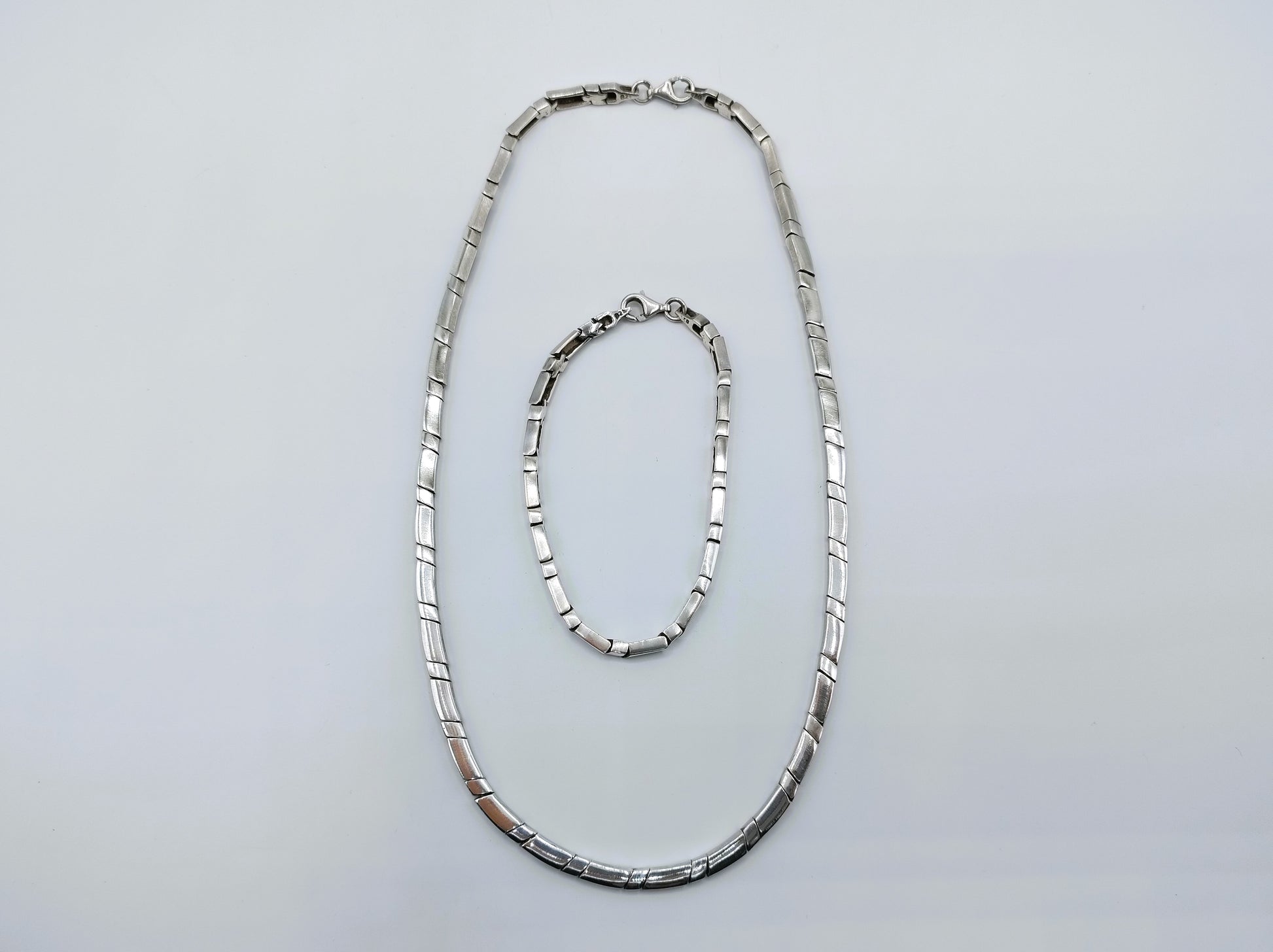 Silver set consisting of a bracelet and a necklace with design links. The link width is 3.5 mm.
