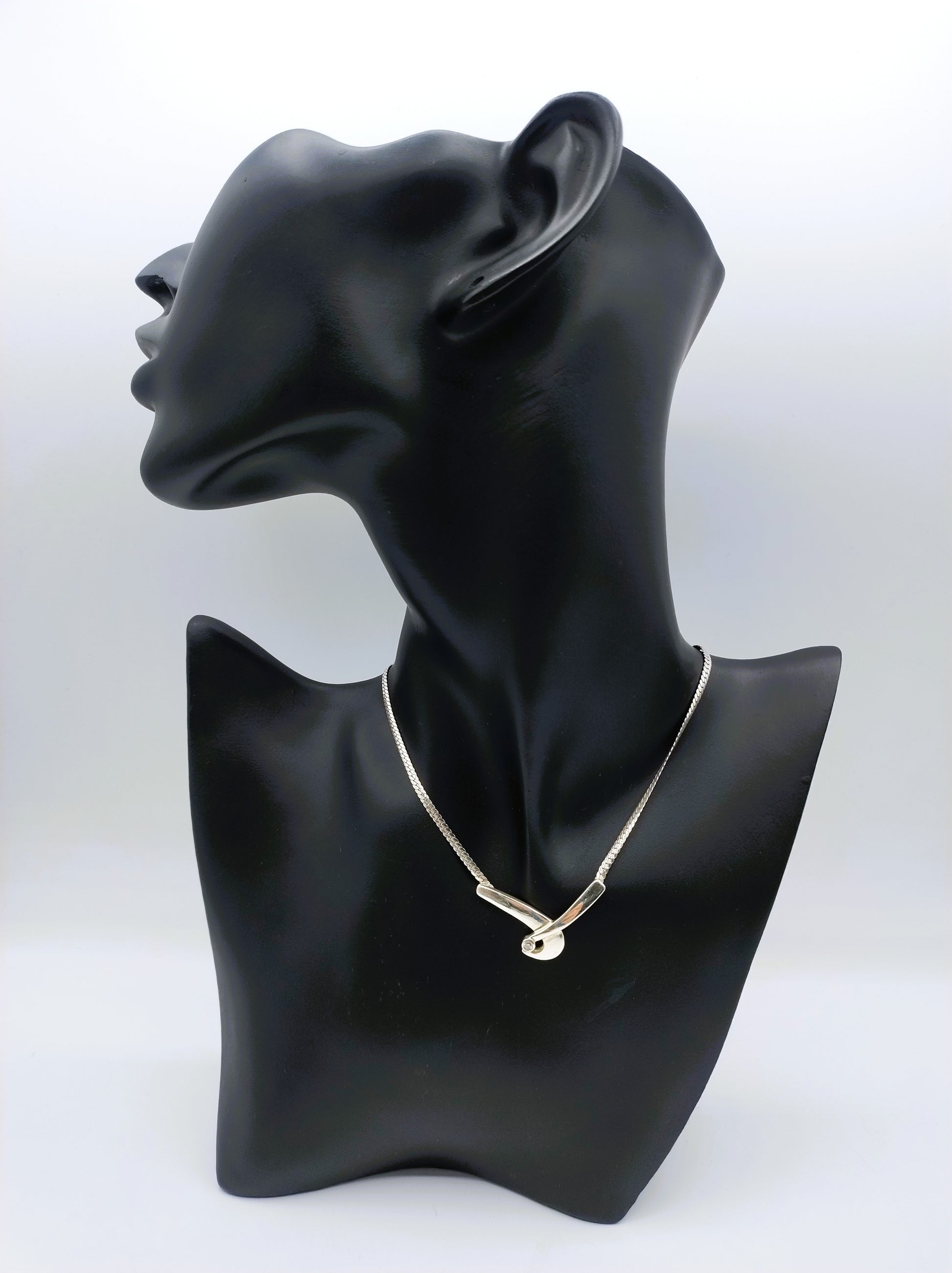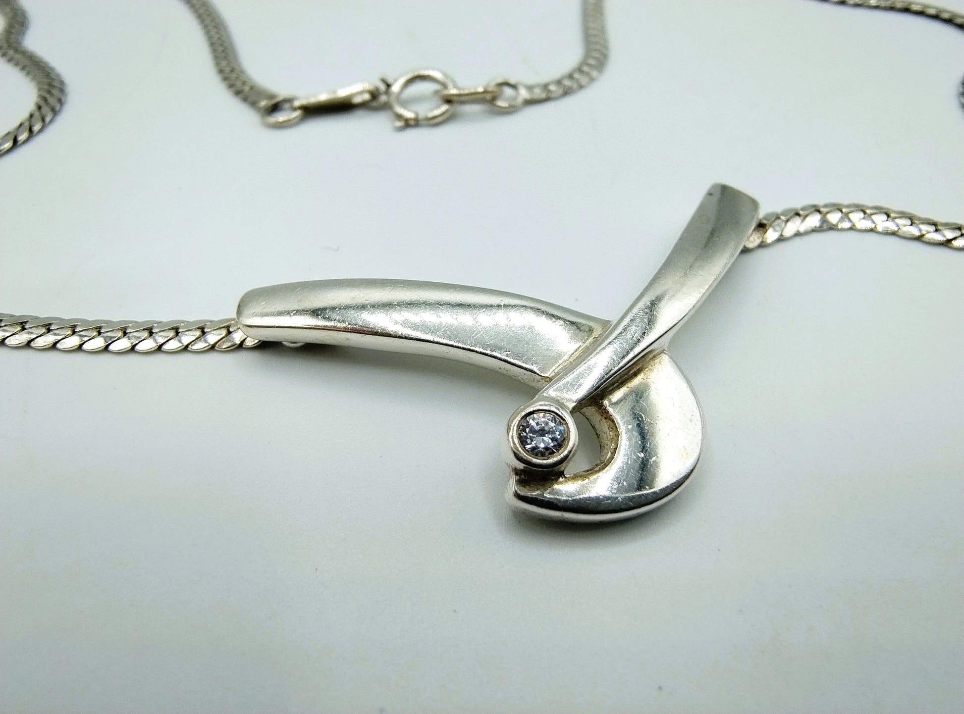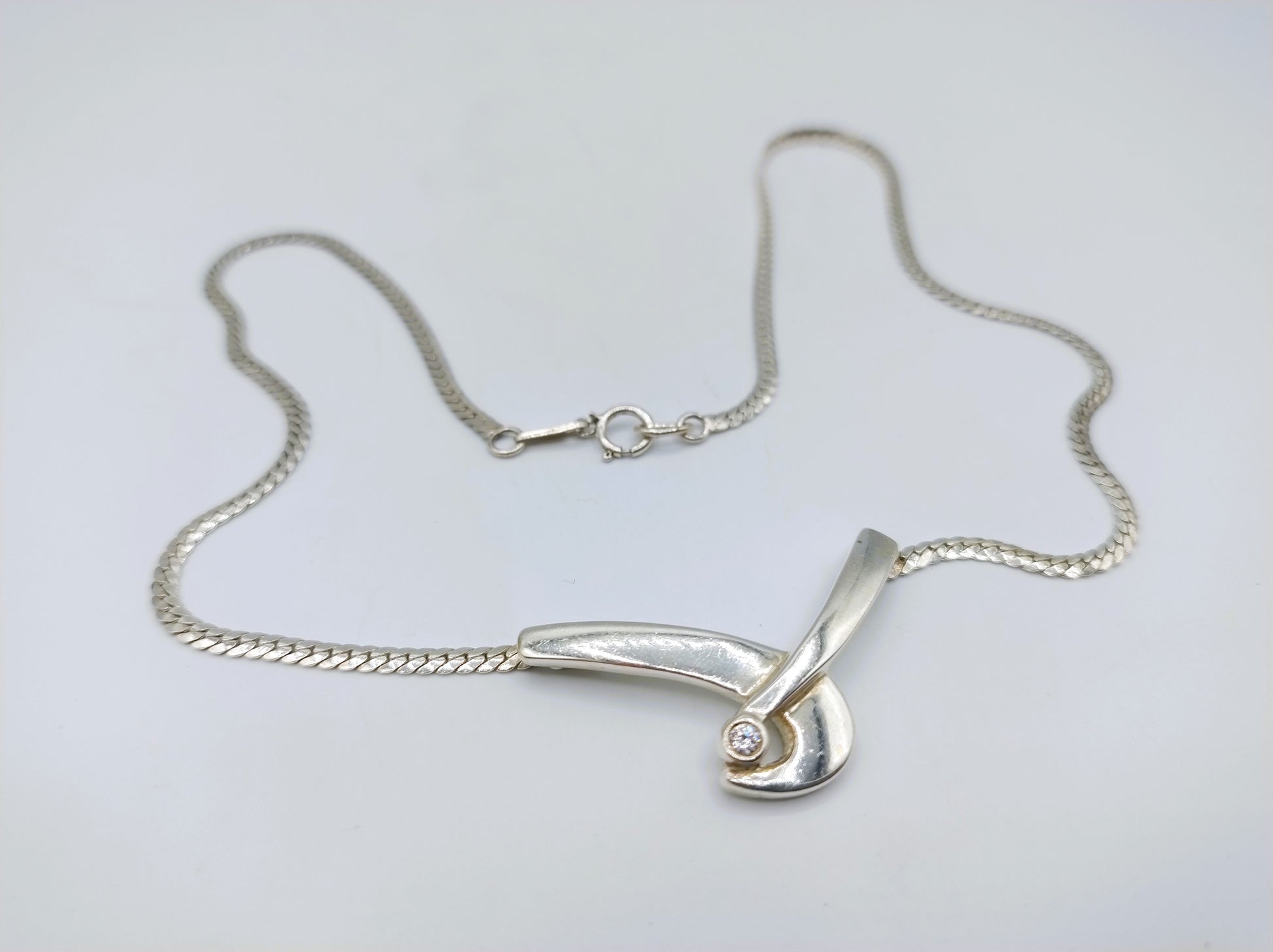 Silver necklace with silver fantasy pendant containing a zirconia with a diameter of 2 mm.