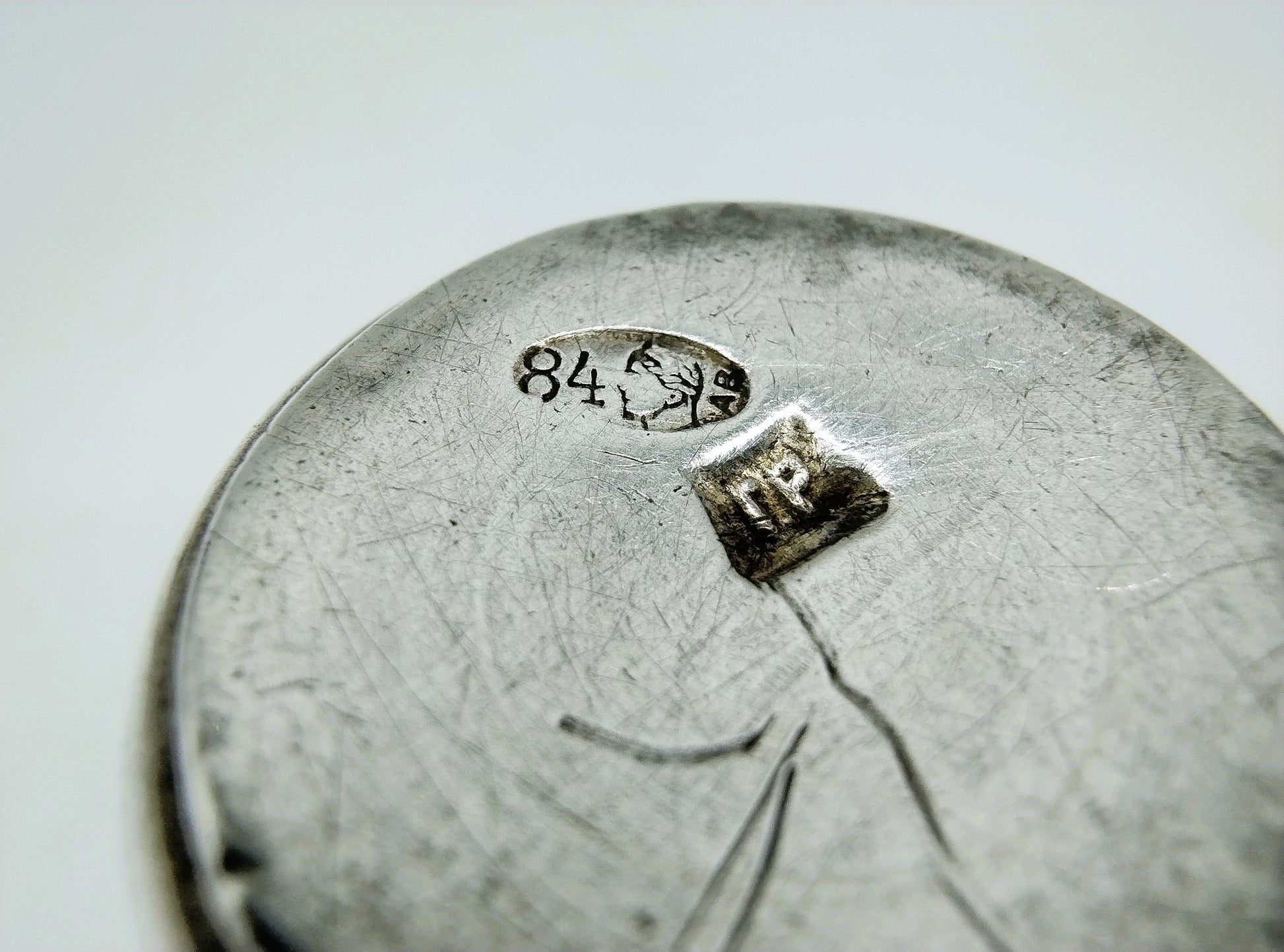 The cup bears the master's mark ГР , belonging to Гирш Равкин (Girsh Ravkin) , a well-known silversmith and manufacturer of Judaica.