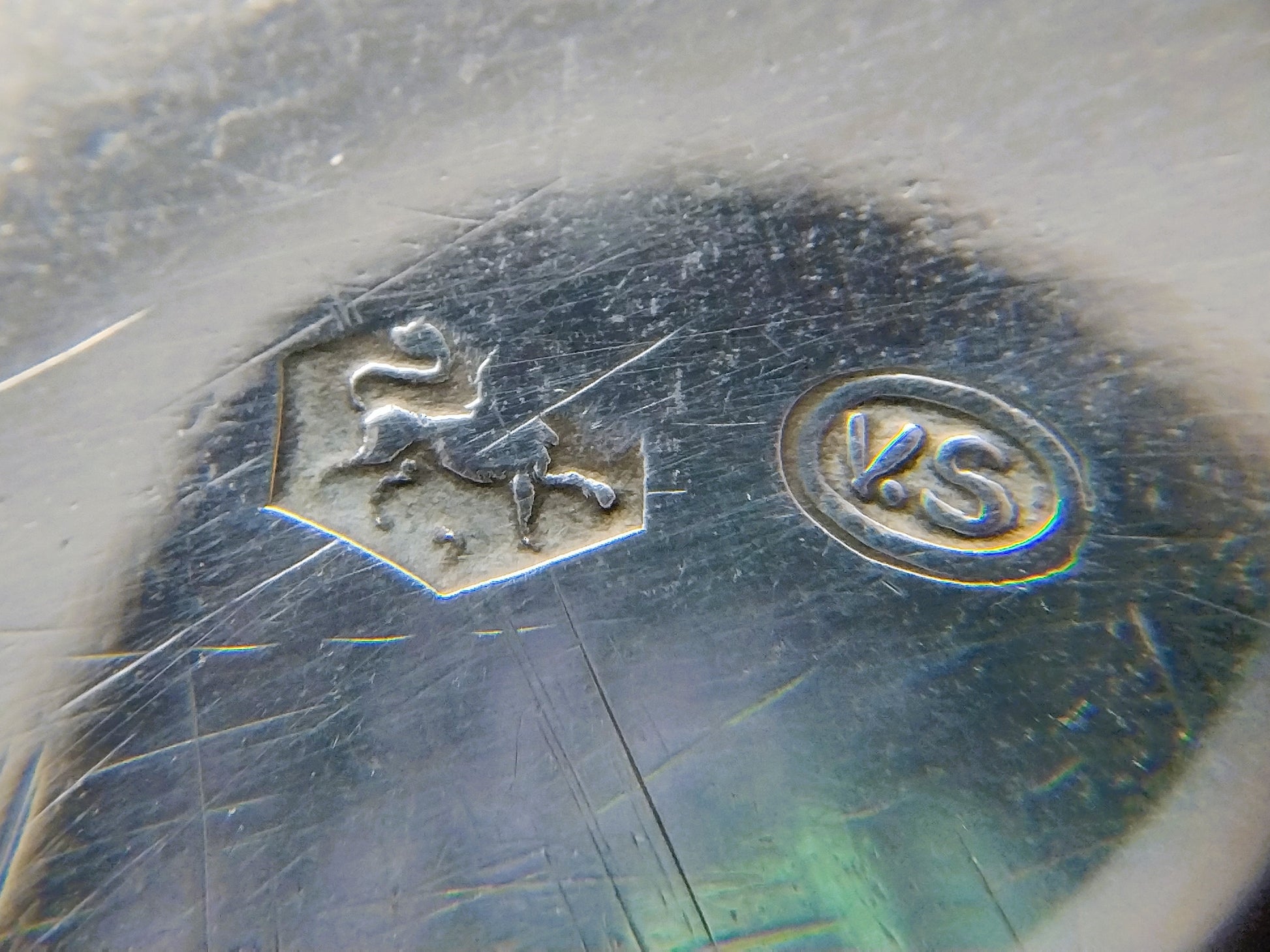 The basket is marked with master mark VS, second fineness mark, Minerva head and date letter J for 1919.