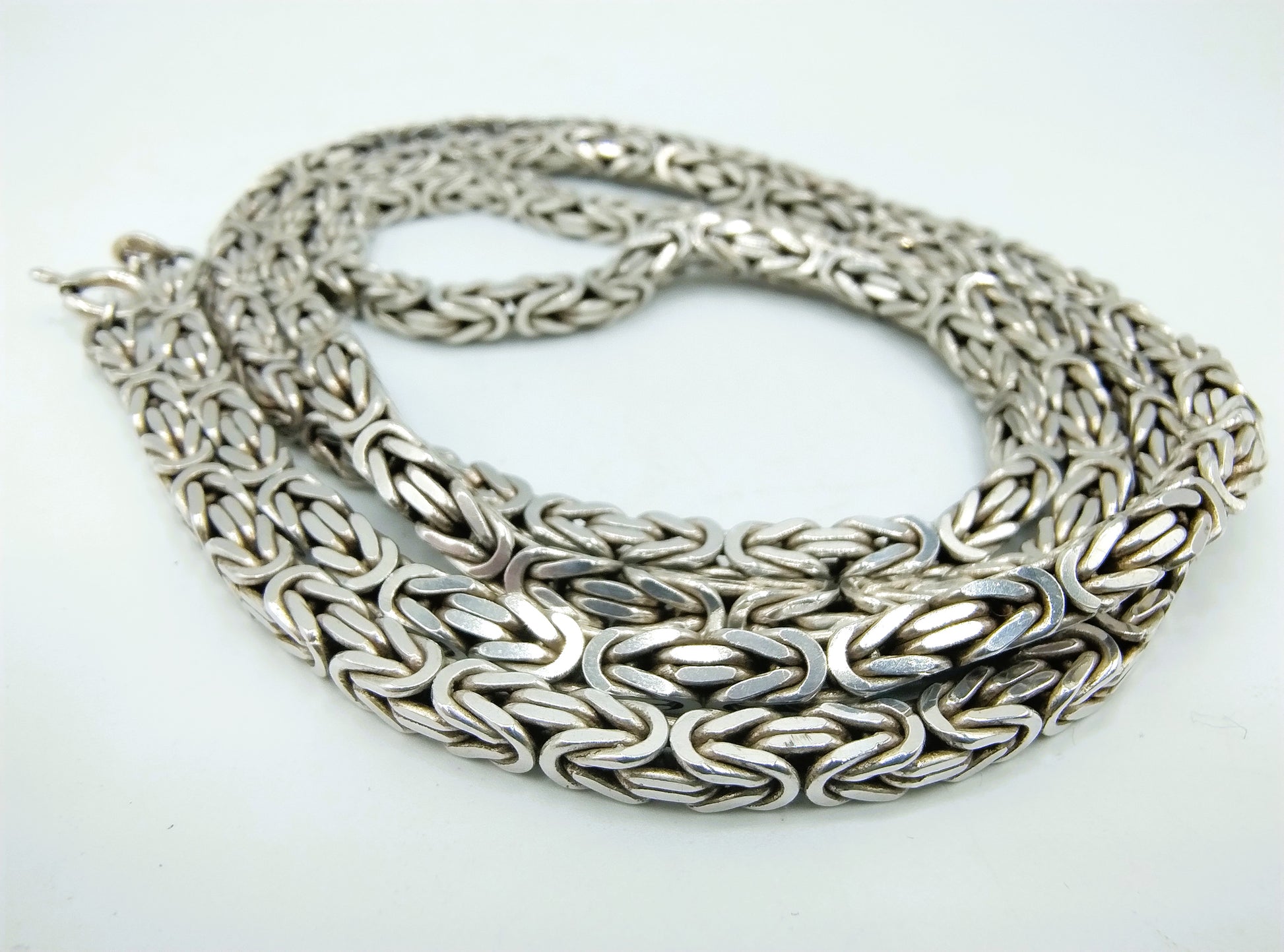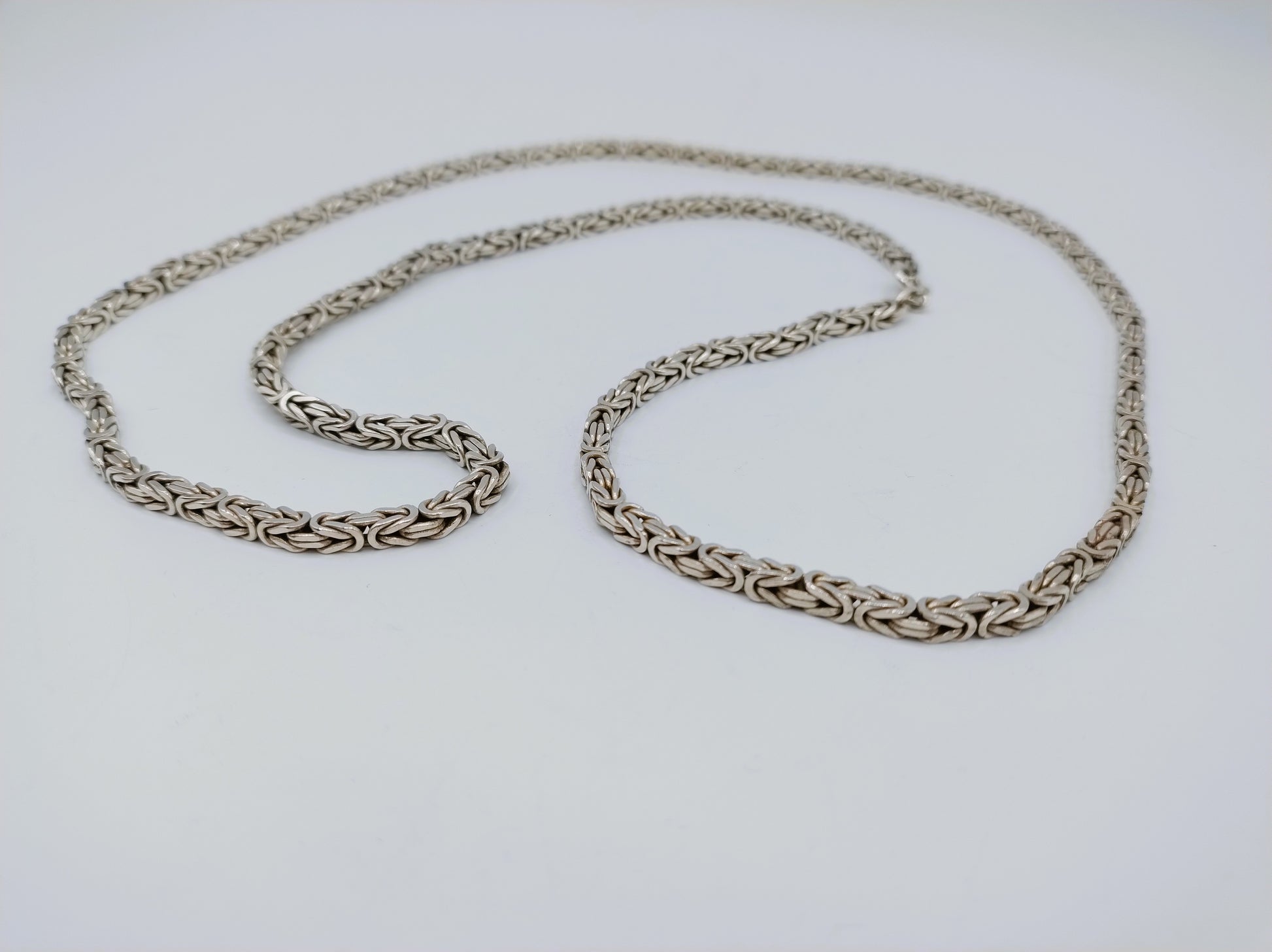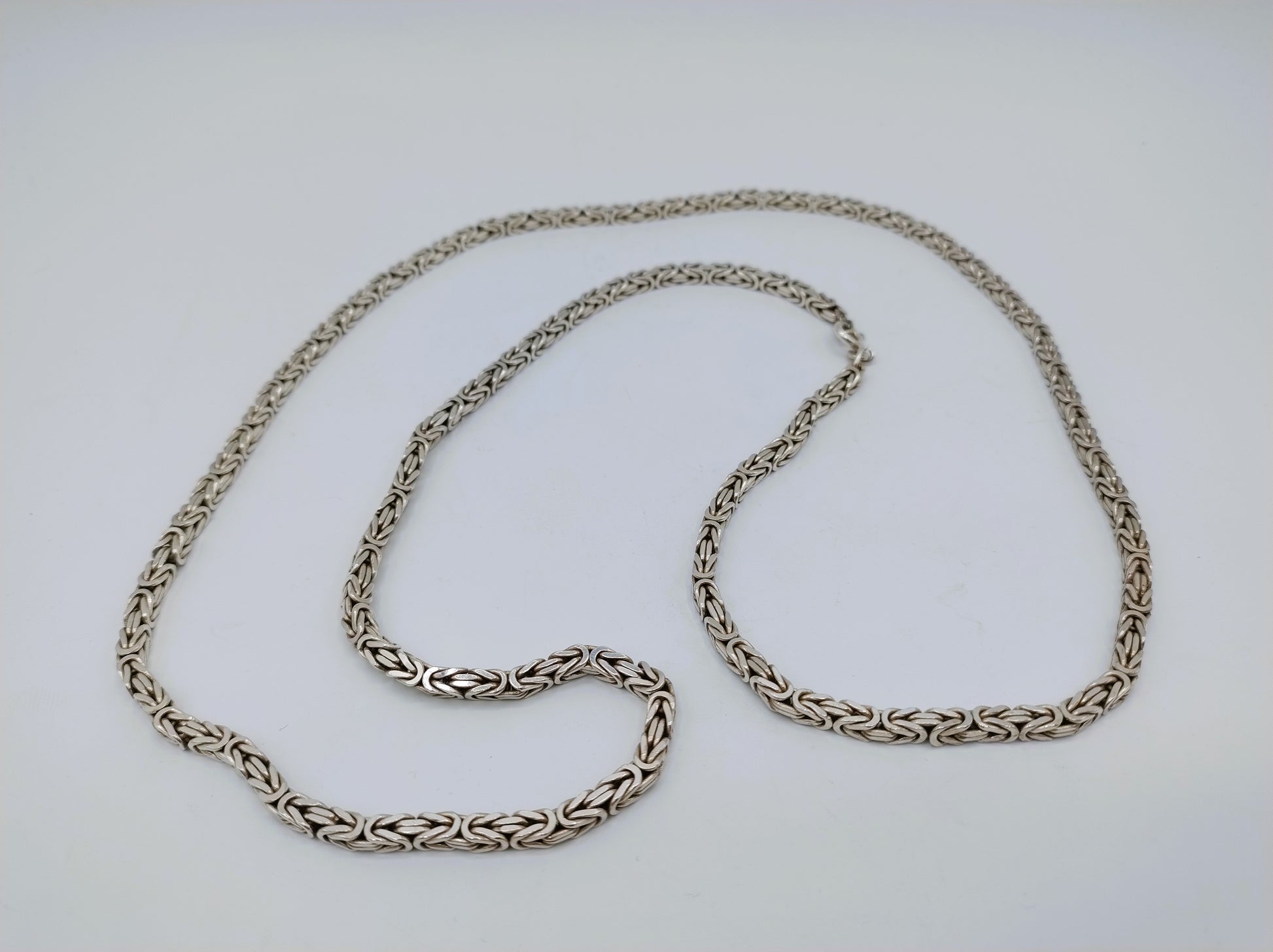 Silver king chain with a square link. The links have a diameter of 4 mm. The length of the chain is 80 cm in closed position.