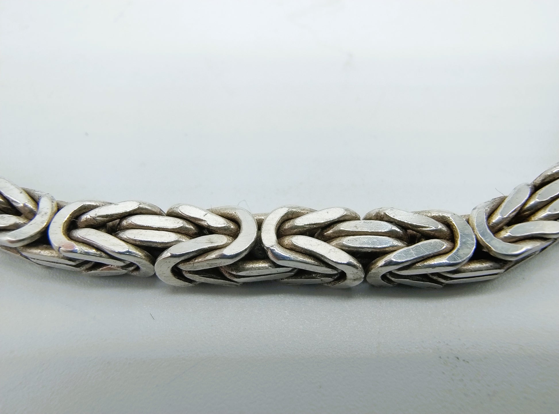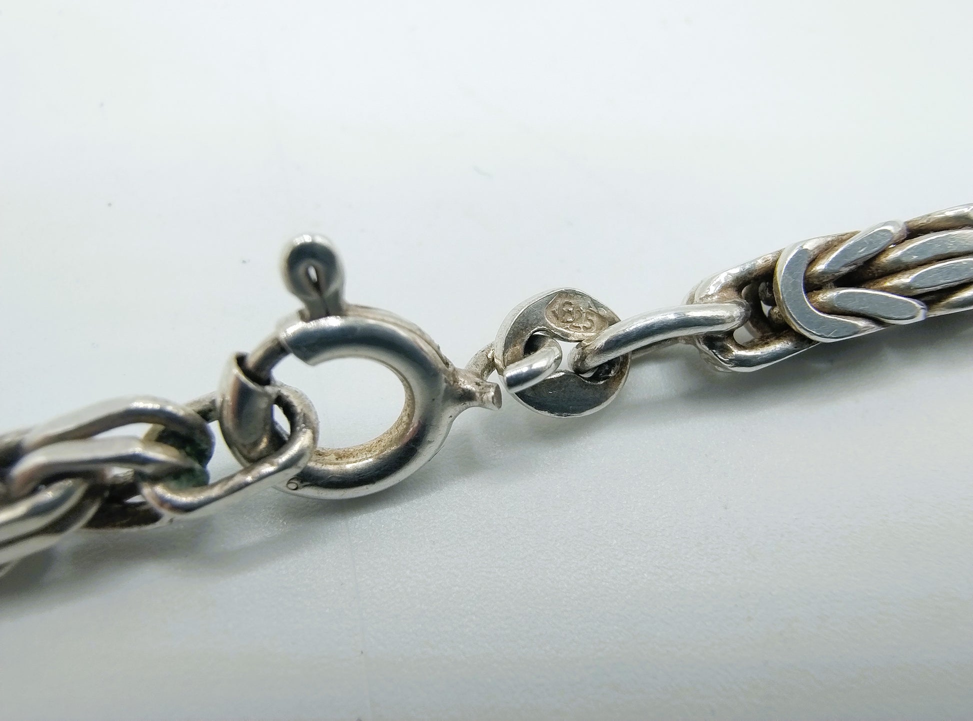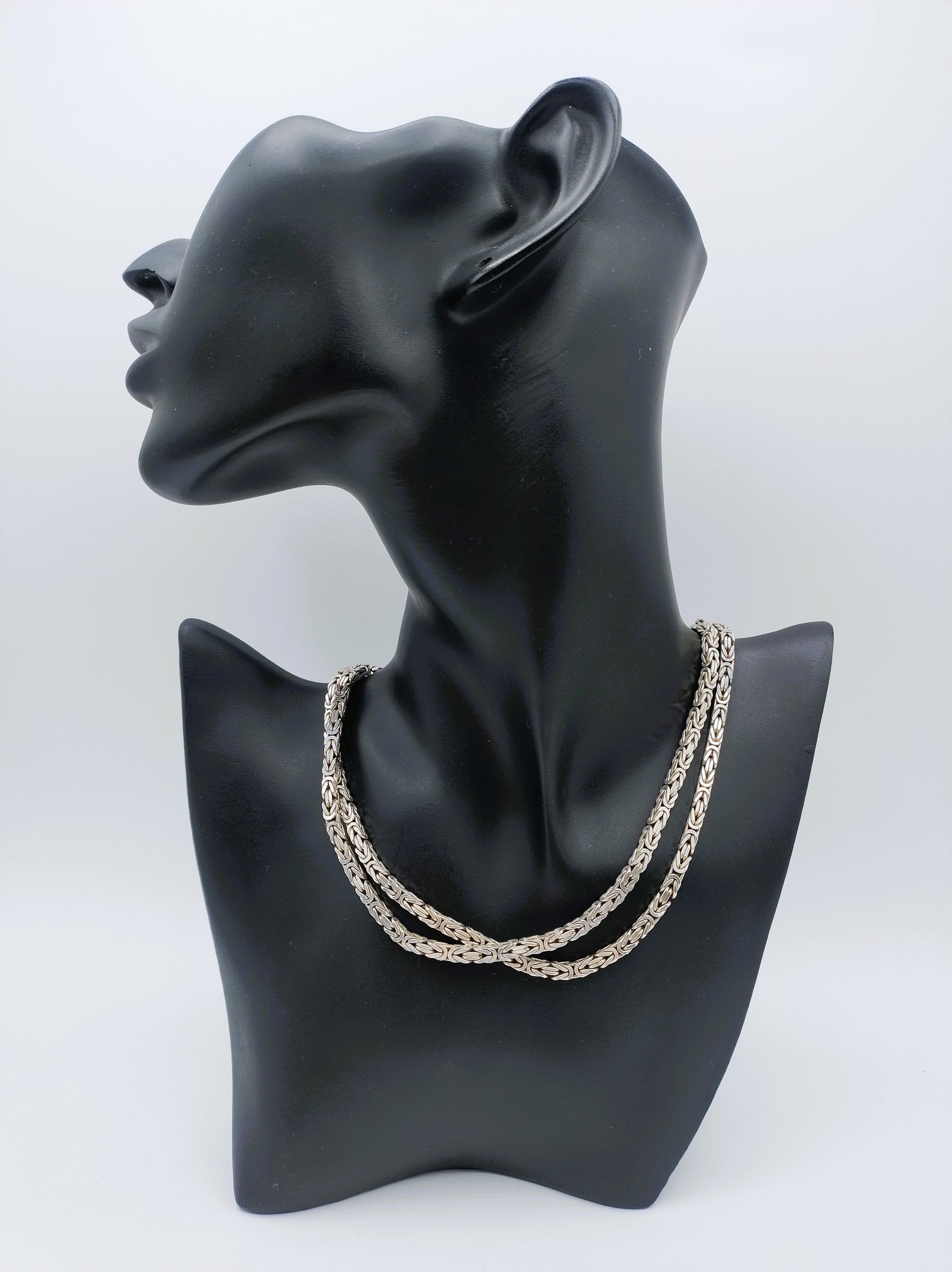 Silver king chain with a square link. The links have a diameter of 4 mm. The length of the chain is 80 cm in closed position.