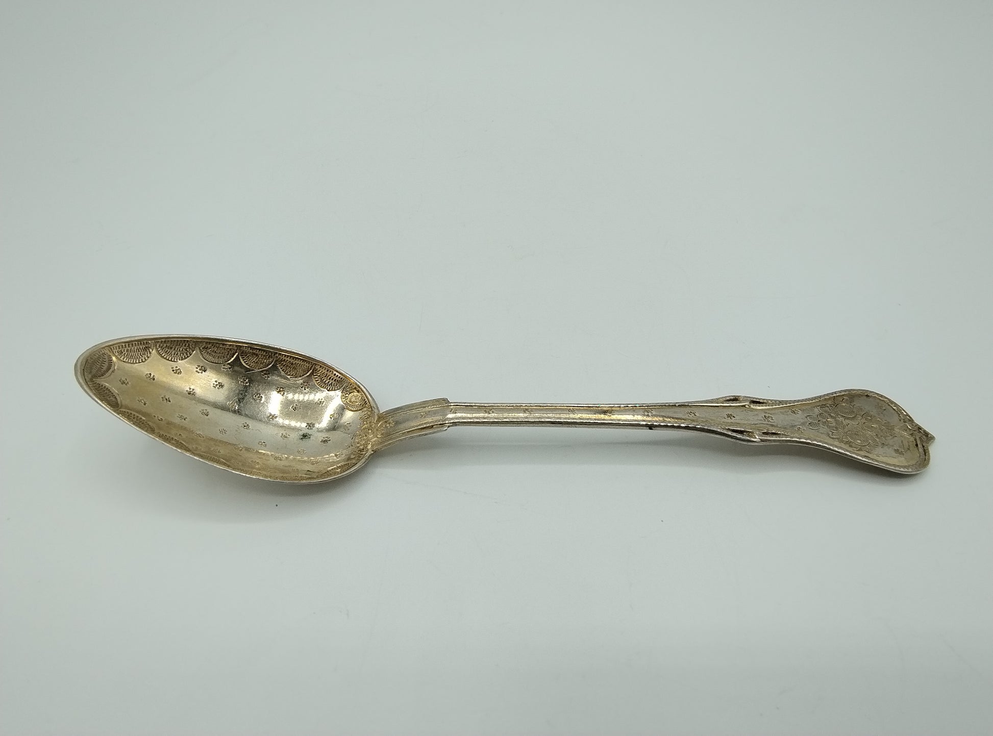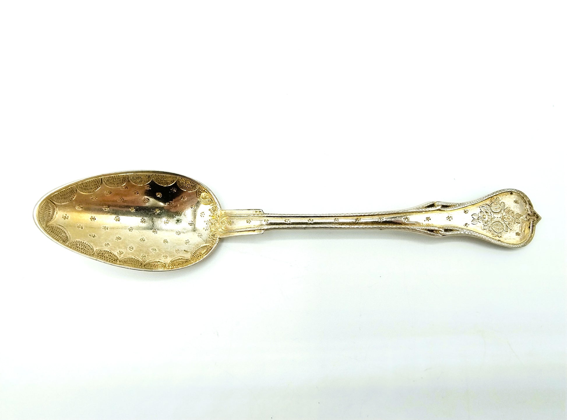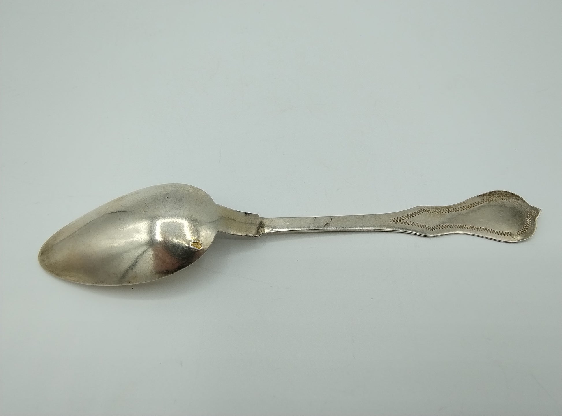 Worked silver spoon by the Parisian silversmith Callot from France.