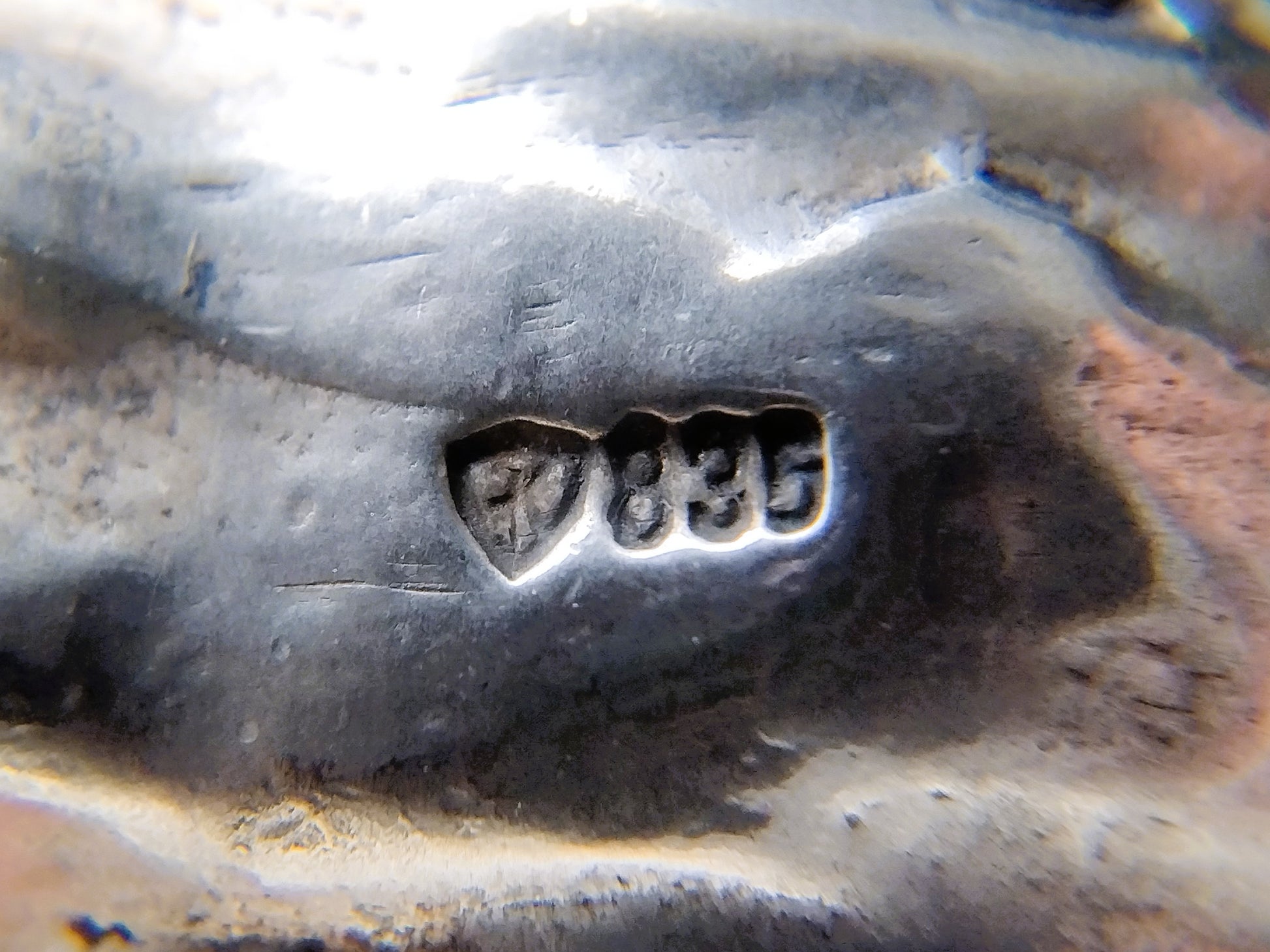 Finely crafted miniature, hallmarked 835 for second-grade silver. Also bears a maker's mark (Germany?).