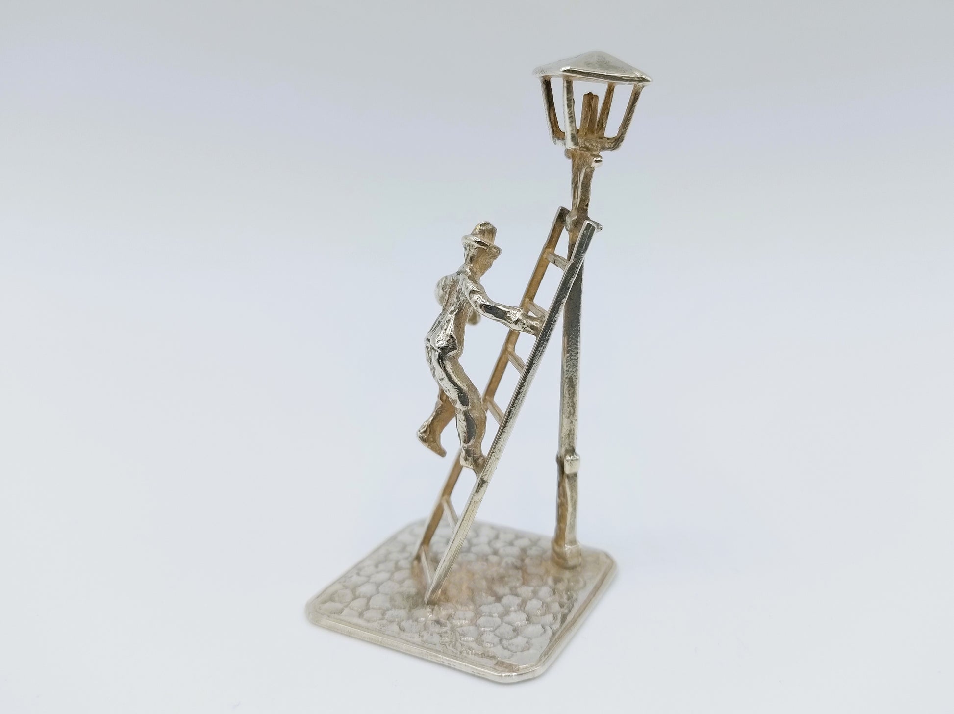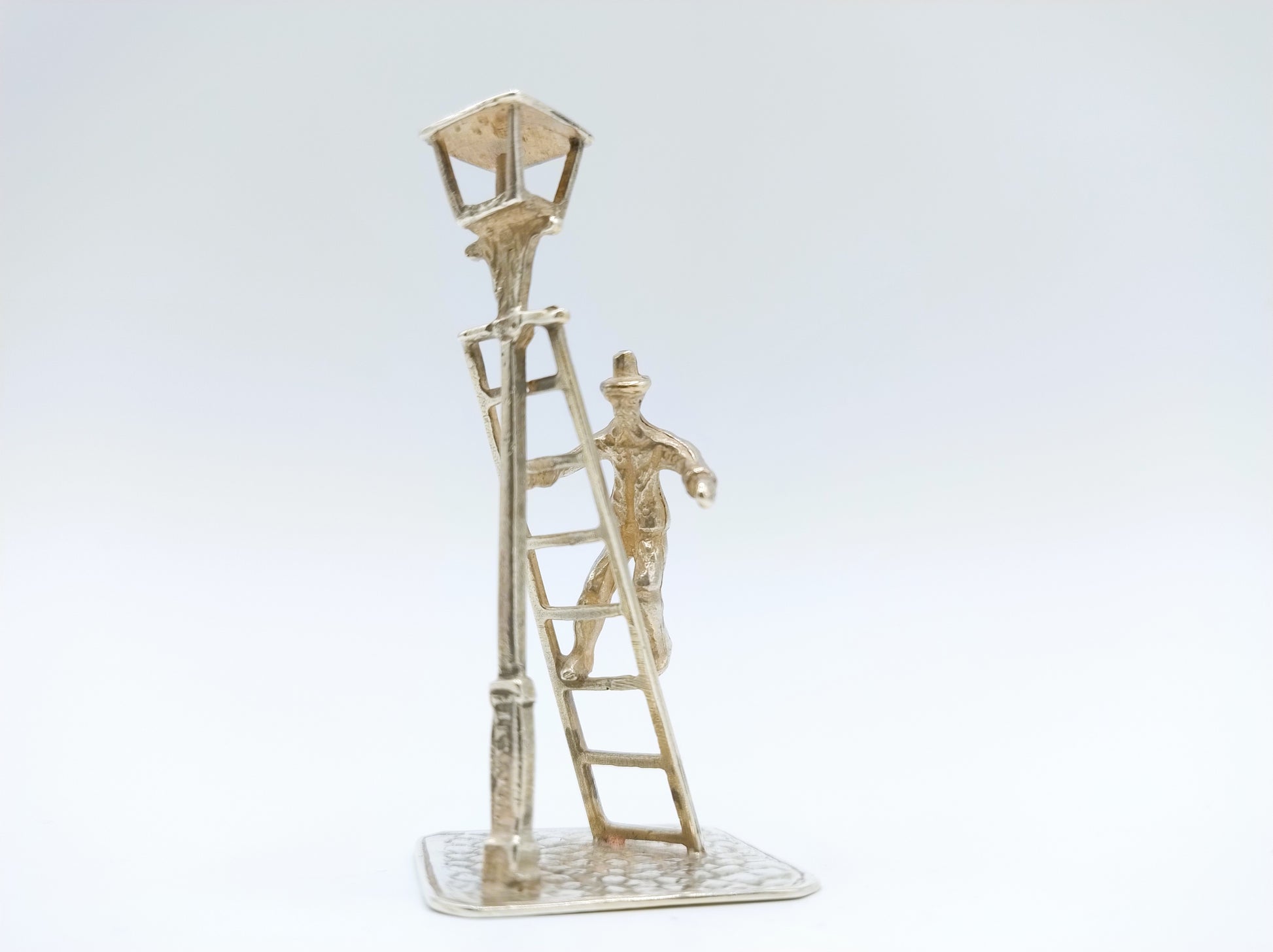 Silver miniature of a lantern lighter made by silversmith CB Bos & Zn from Zandvoort. Active since 1969.