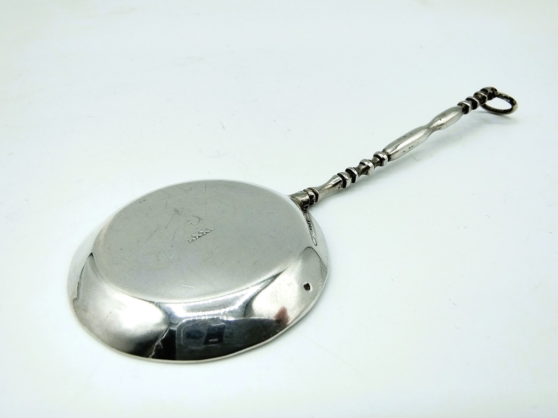 The pan is hallmarked with the city hallmark of Amsterdam and the master mark of a tree of Pieter I van Somerwil, who worked from 1706 to approx. 1753. These may be pseudo hallmarks.