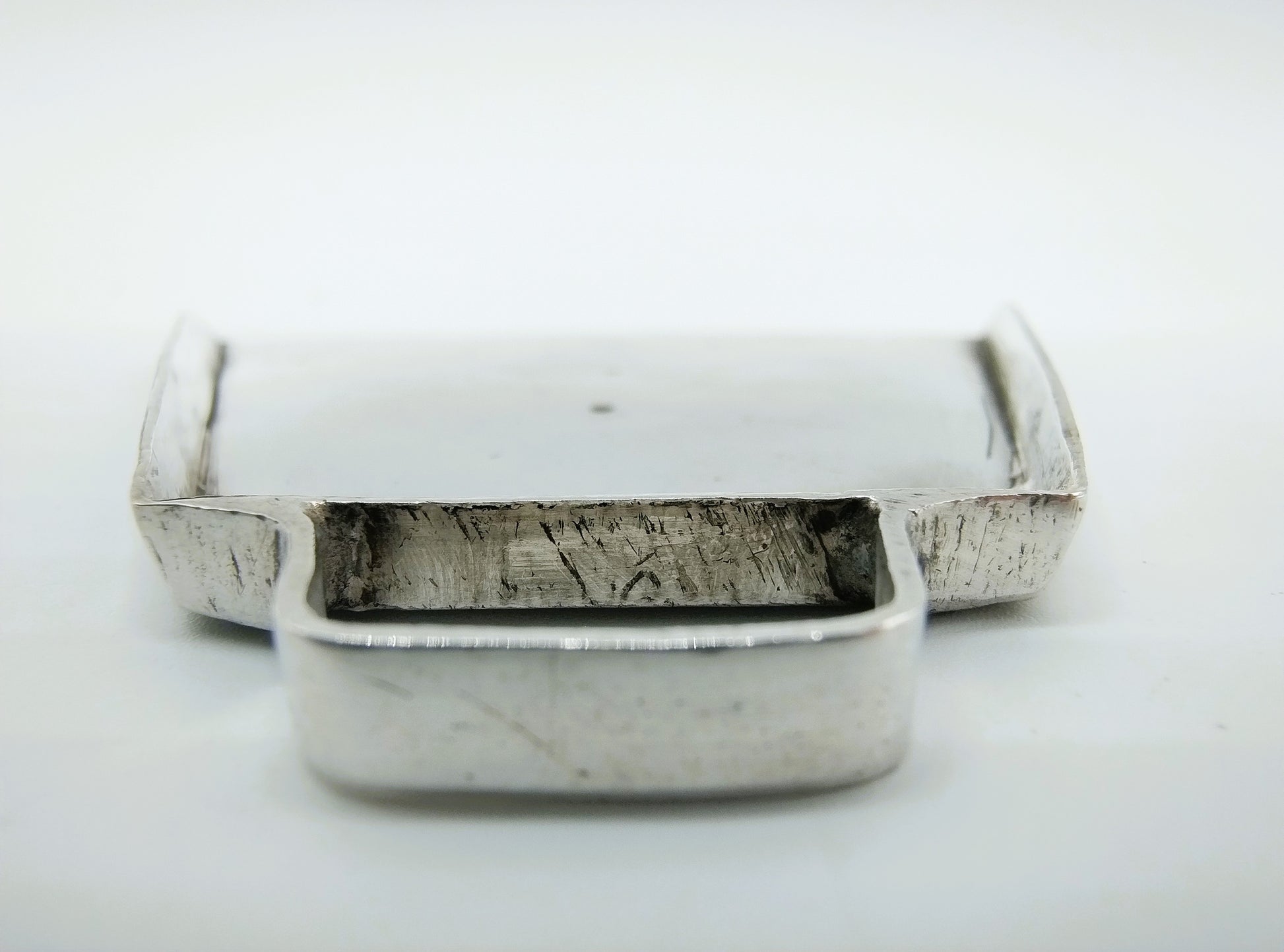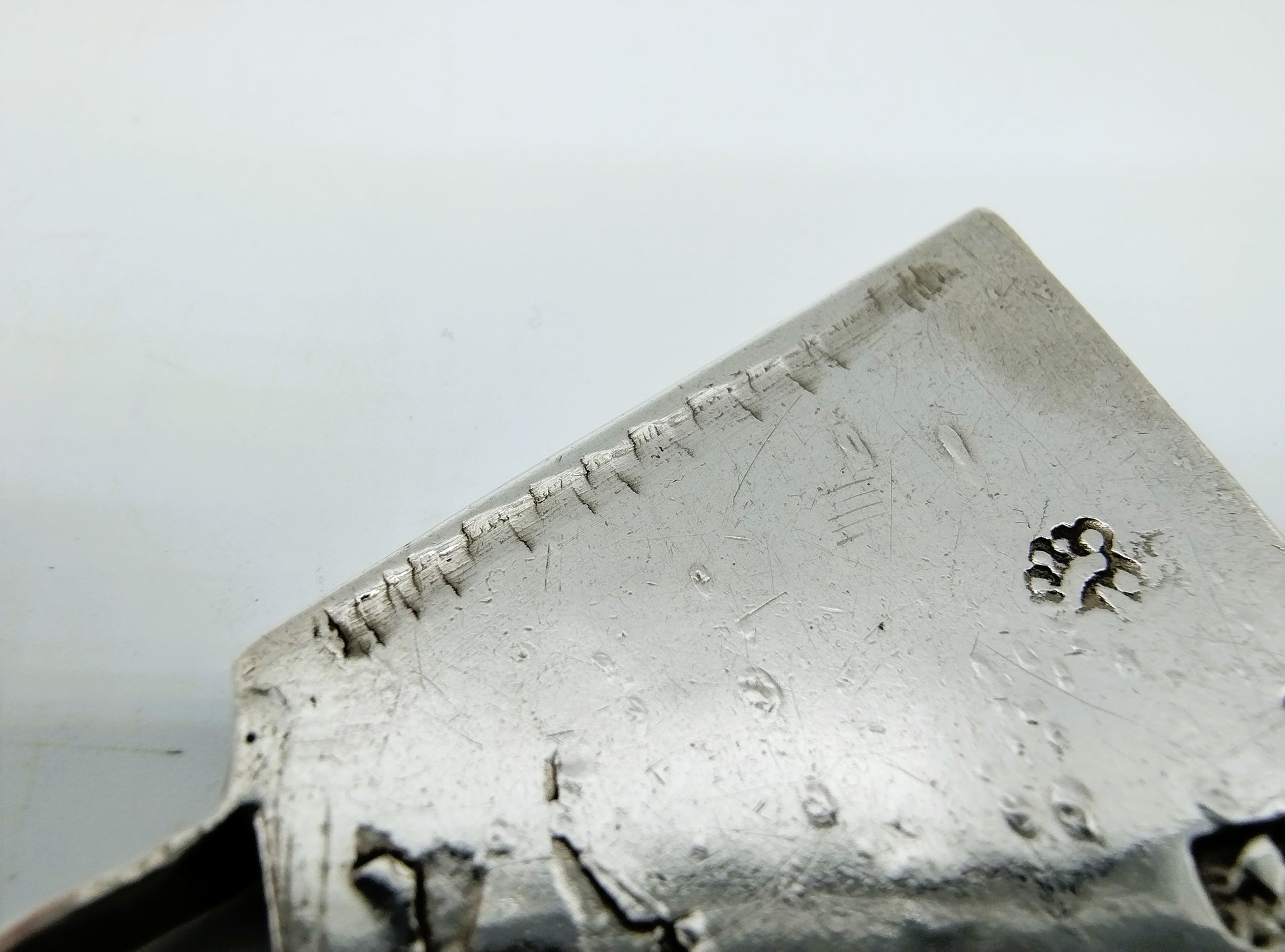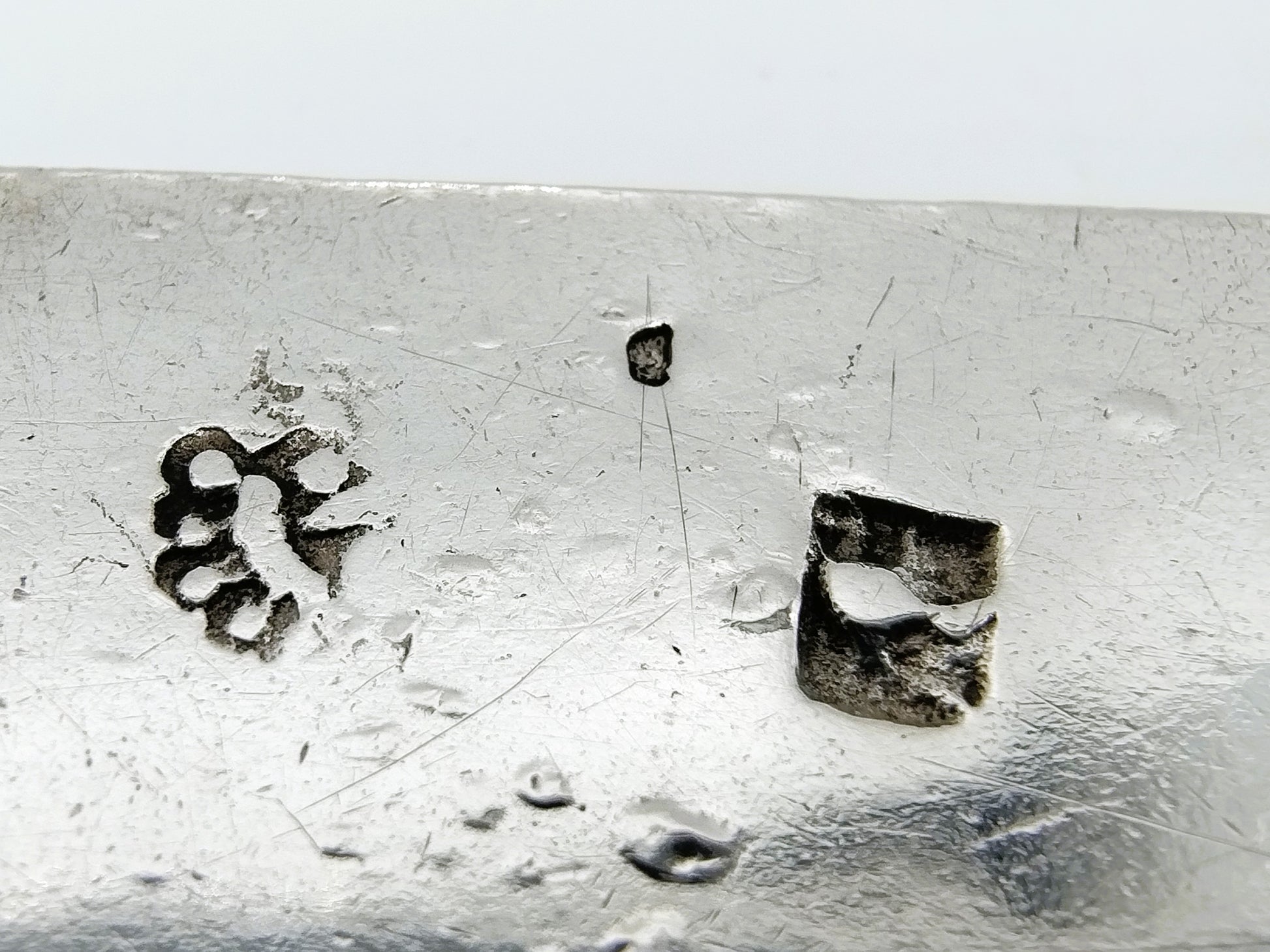 Equipped with a test strip to determine the silver content.