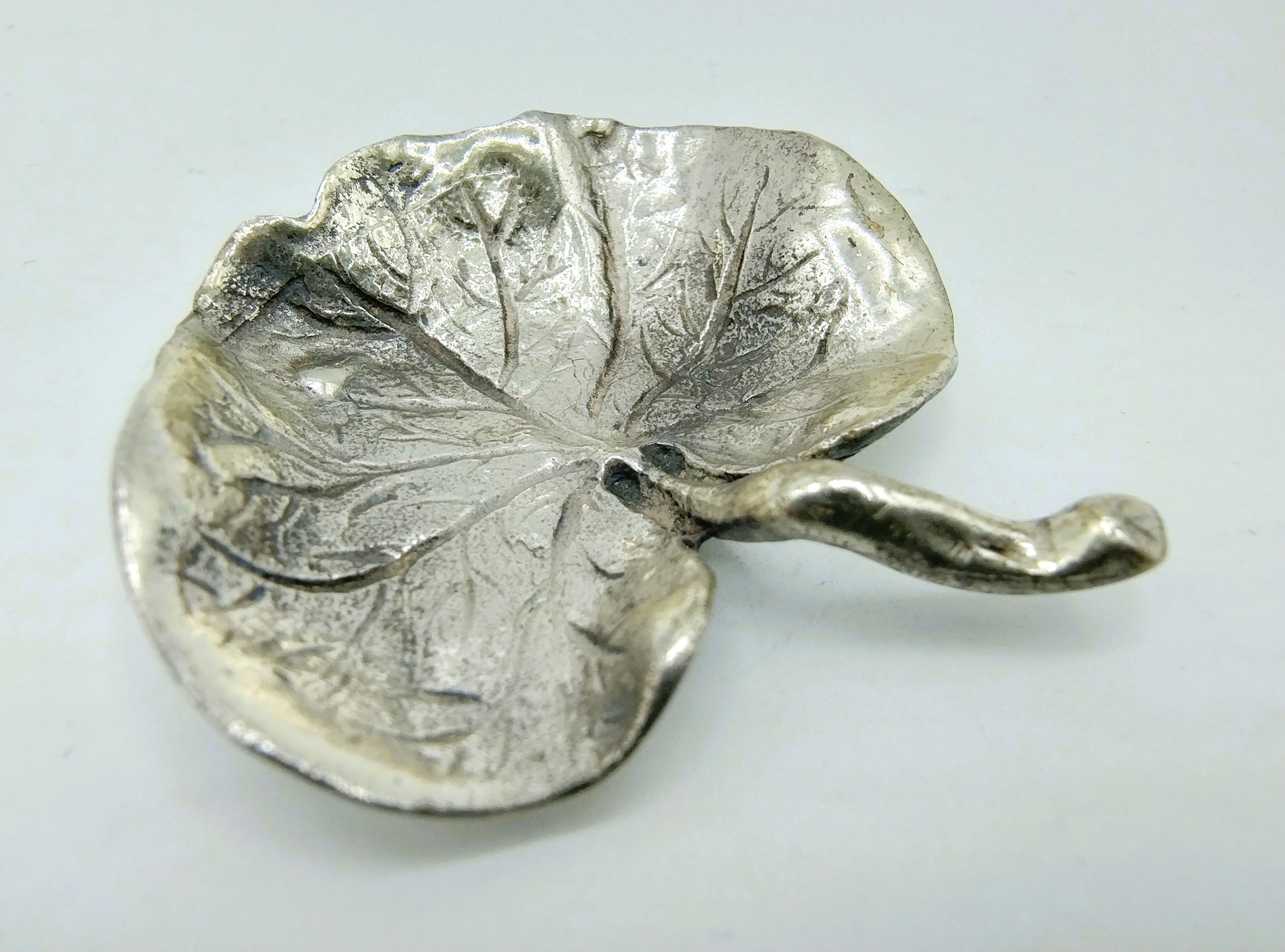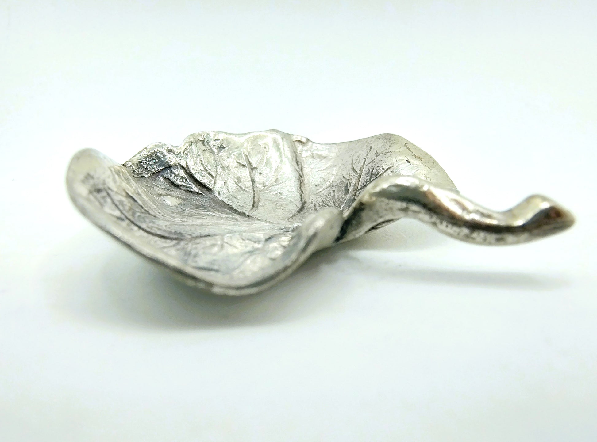 Silver miniature bowl in the shape of a leaf made in Italy.