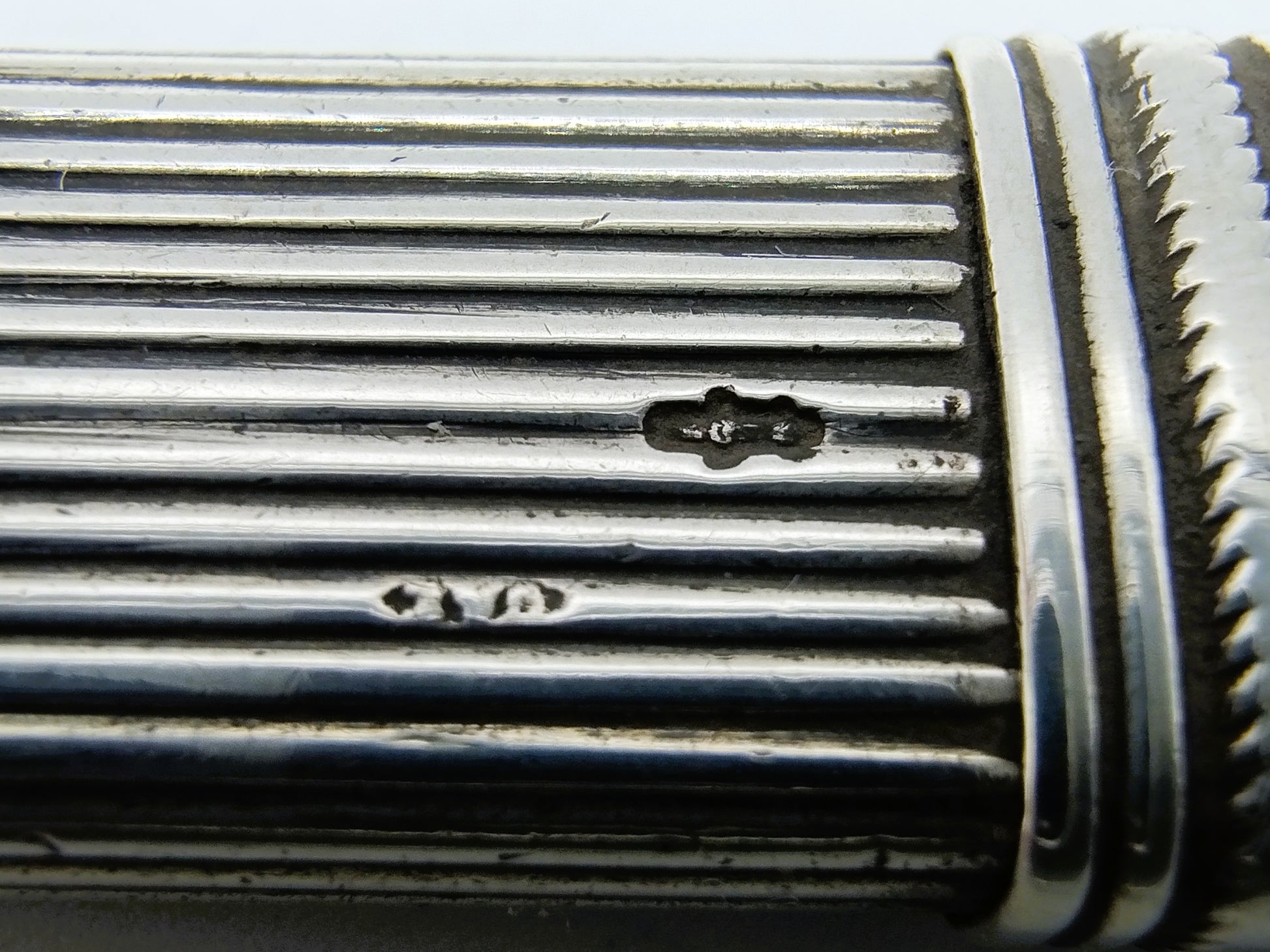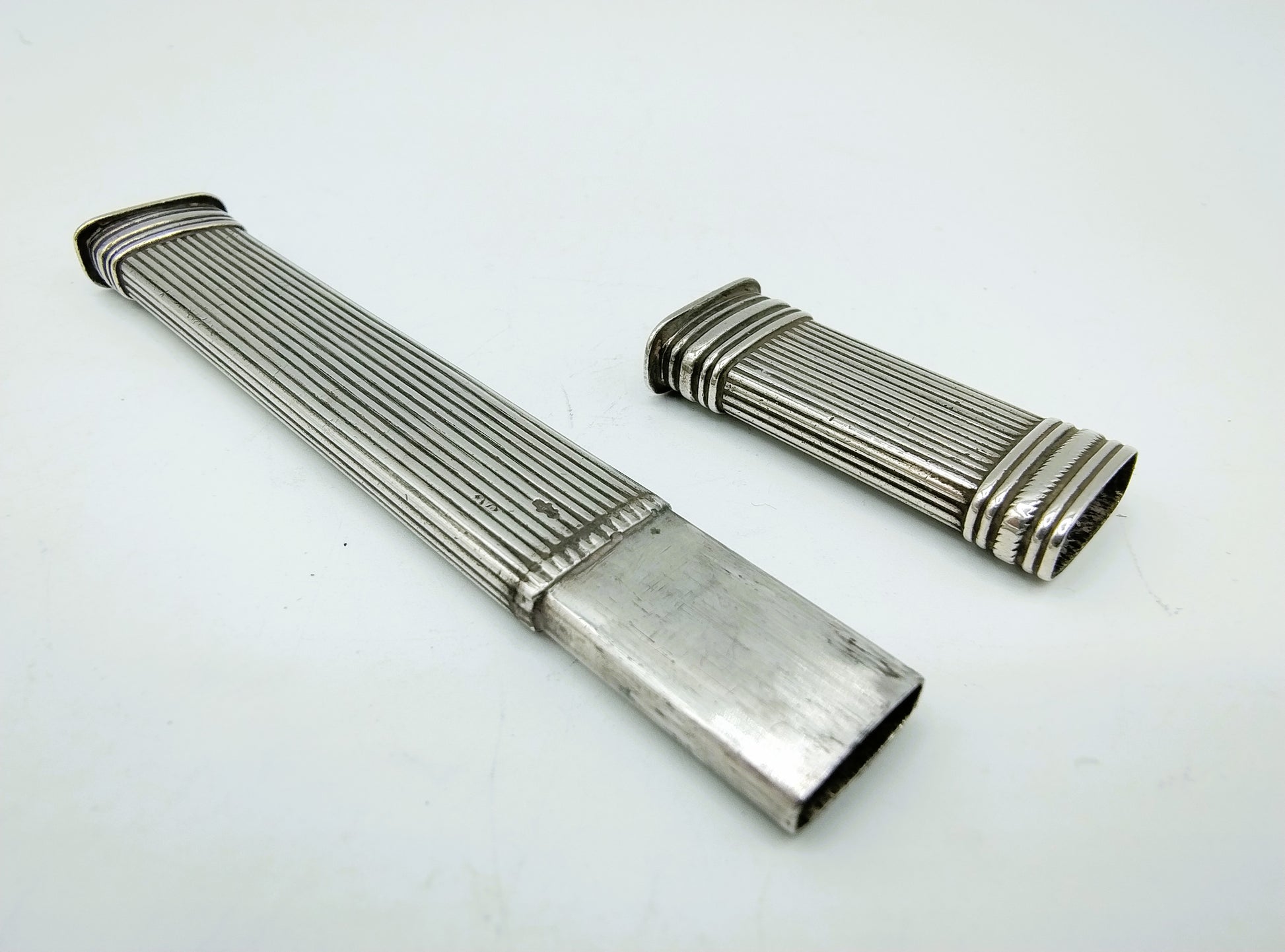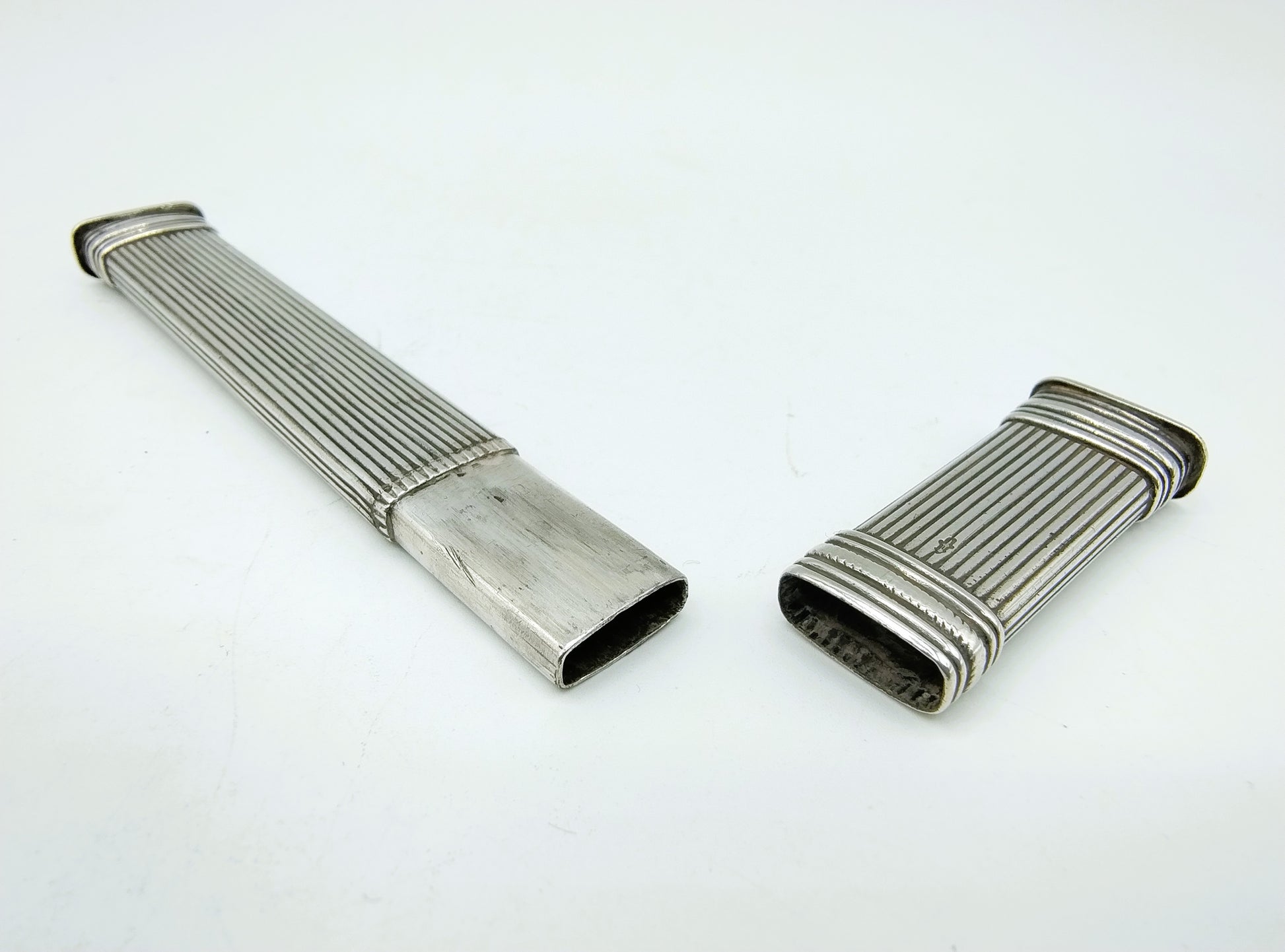 Silver needle case with a ribbed motif made by the silversmith JH van Denderen from Wildervank / Oude Pekela, active from 1878 to 1891.