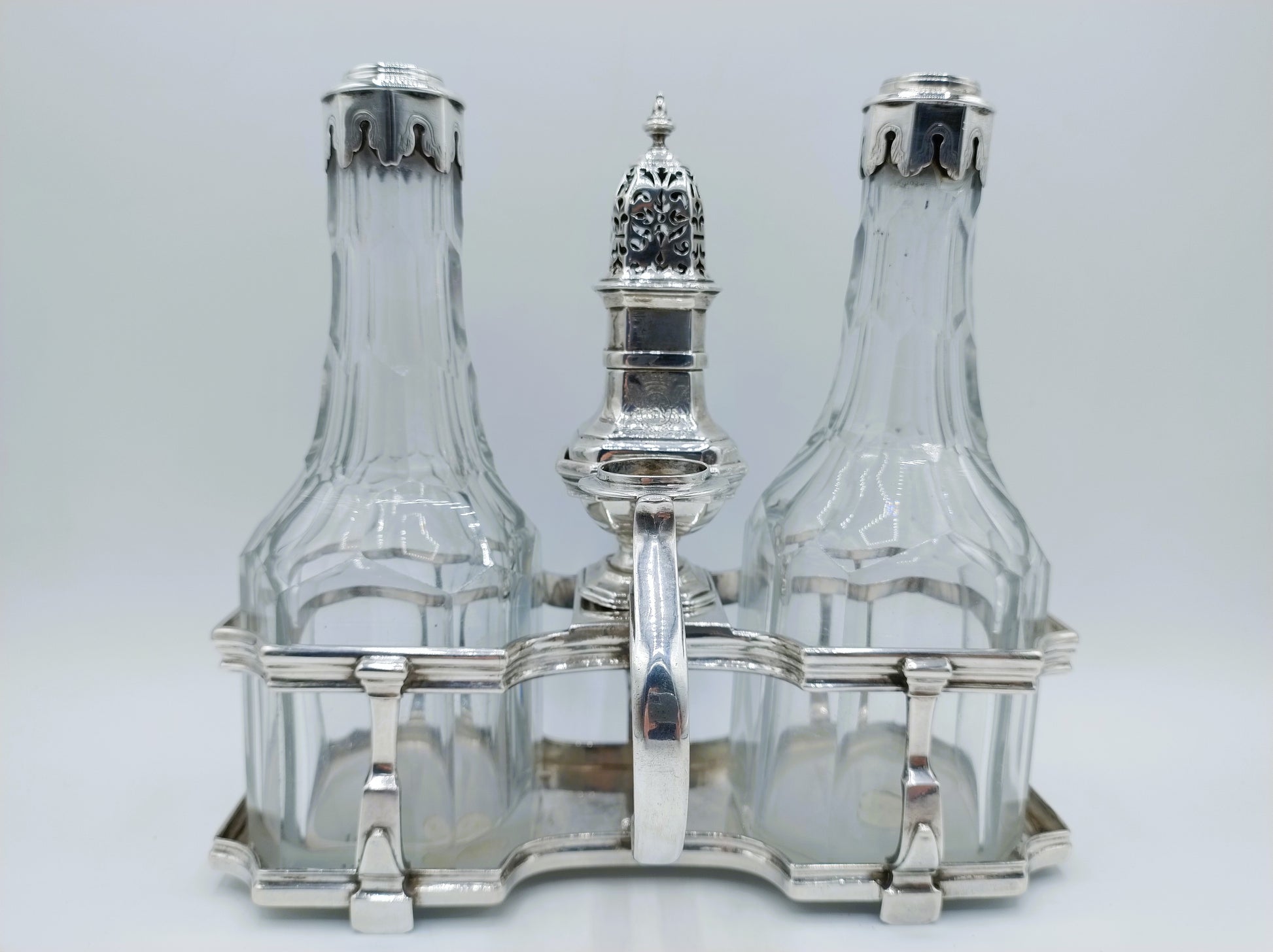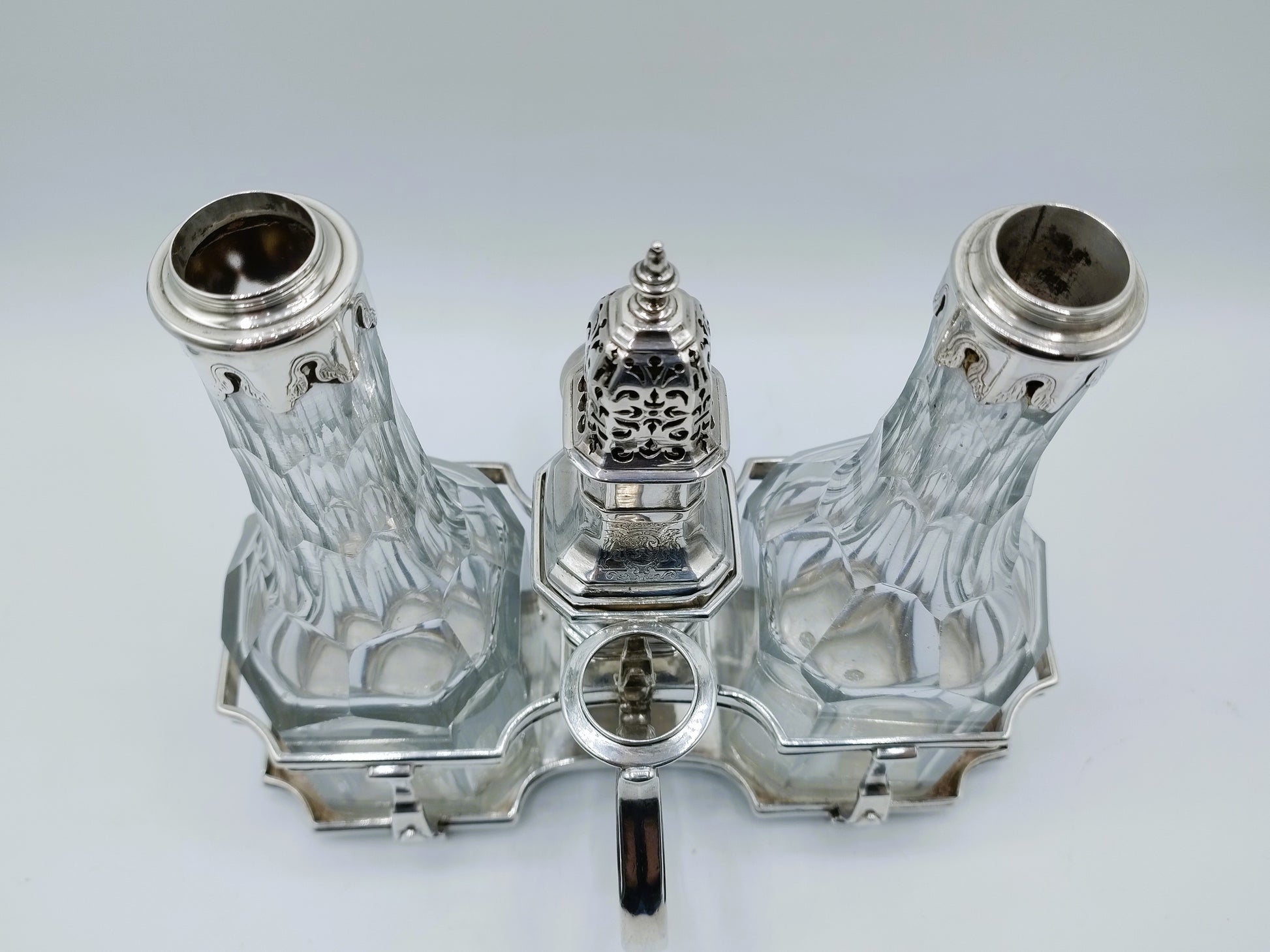 Zilveren olie- en azijnstel incl. strooibus, J. Logerath I, Den Haag, 1737