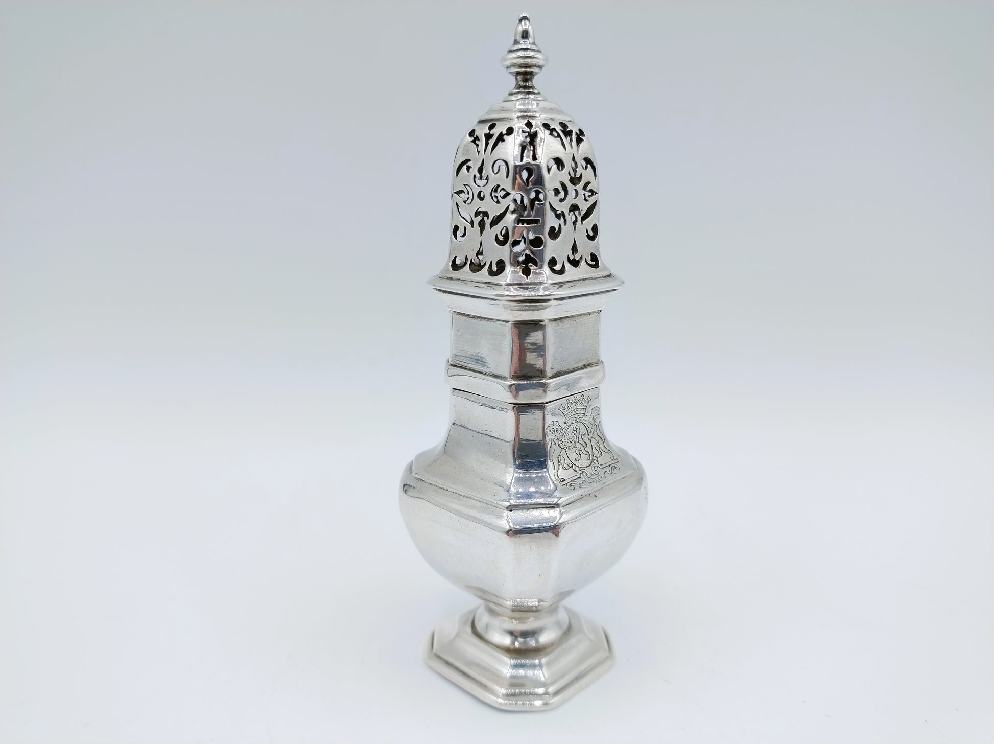 Bijzonderheden: Gegraveerd wapenschild op de strooibus