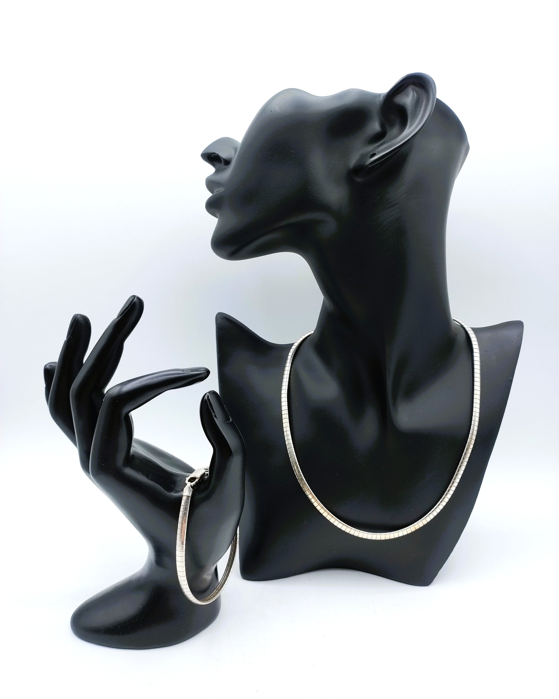 Silver set consisting of an omega bracelet and an omega chain with a link width of 4 mm.