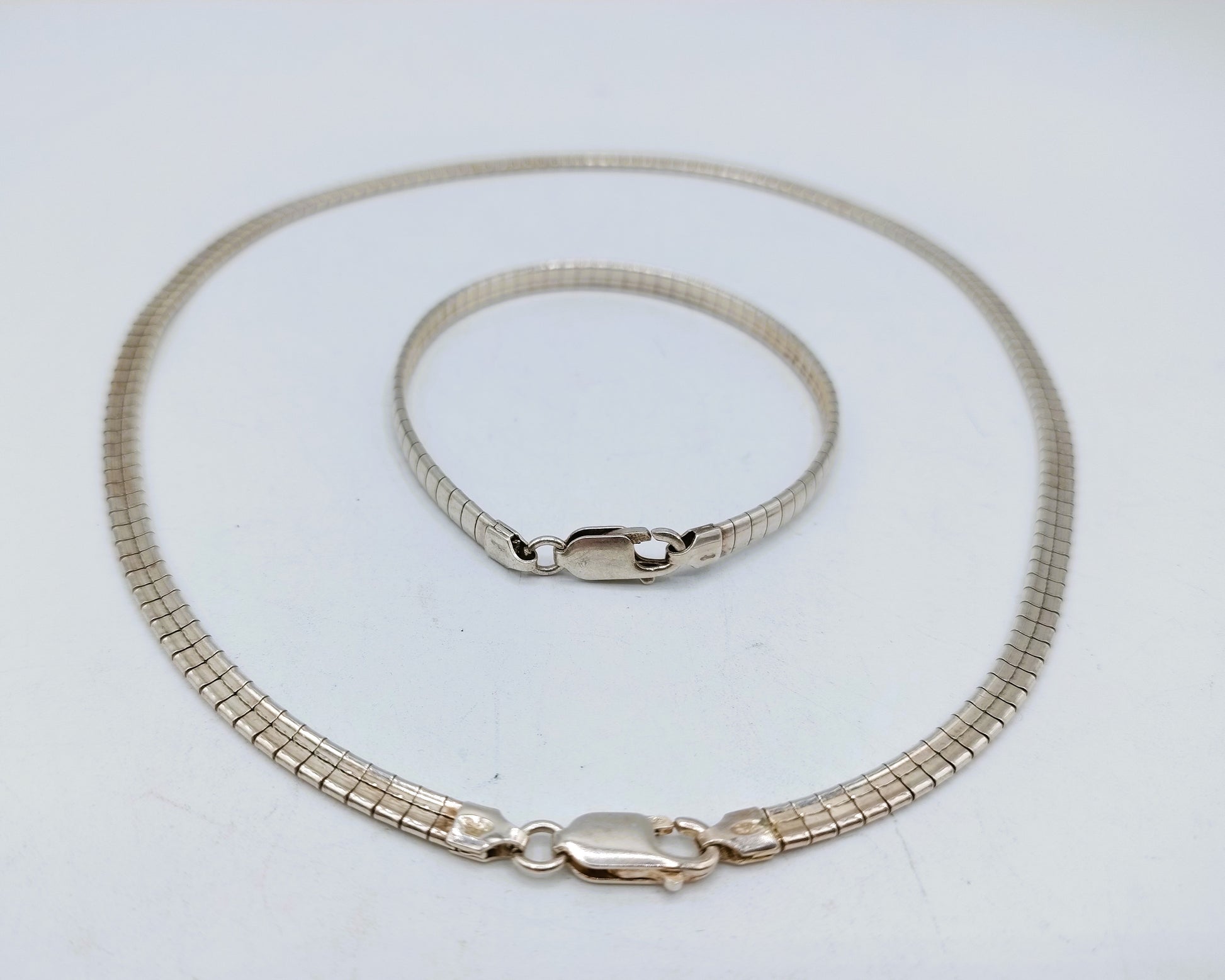 Silver omega necklace (42 cm) + bracelet, (19 cm).