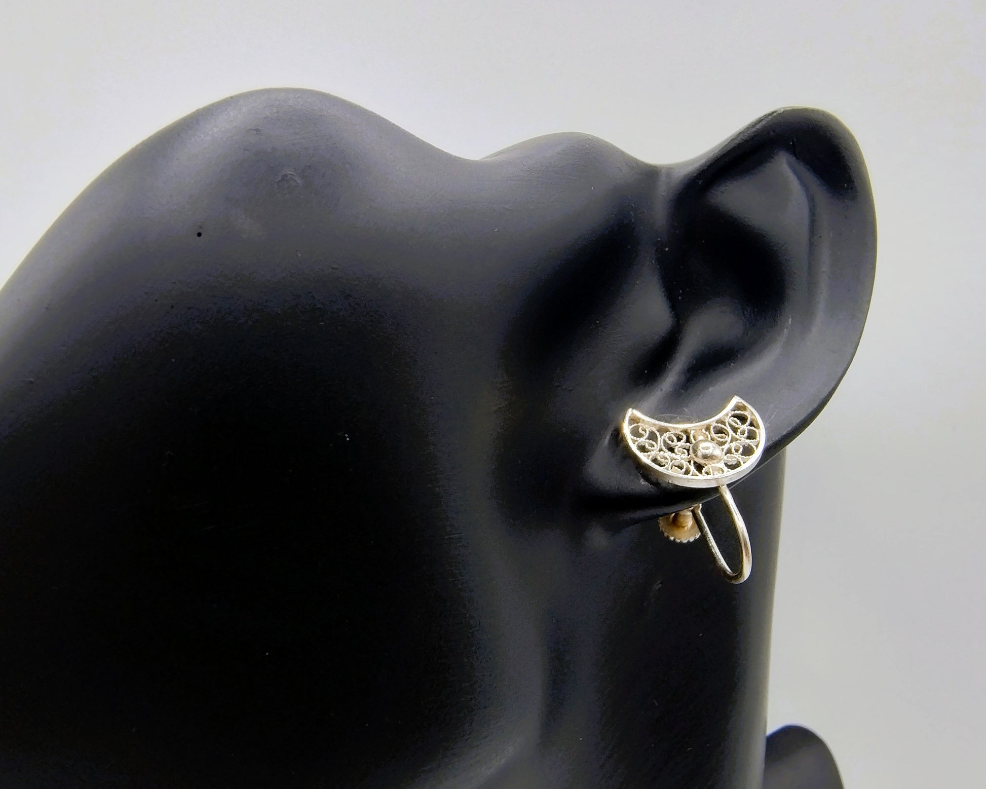 Silver earrings with filigree metalwork.