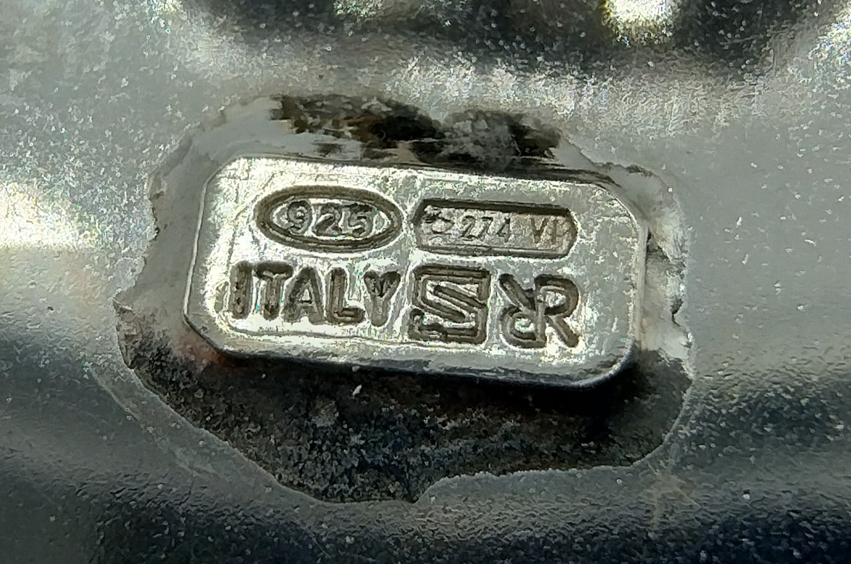Marked 925 for 1st grade silver, master mark 274 VI and Italy.