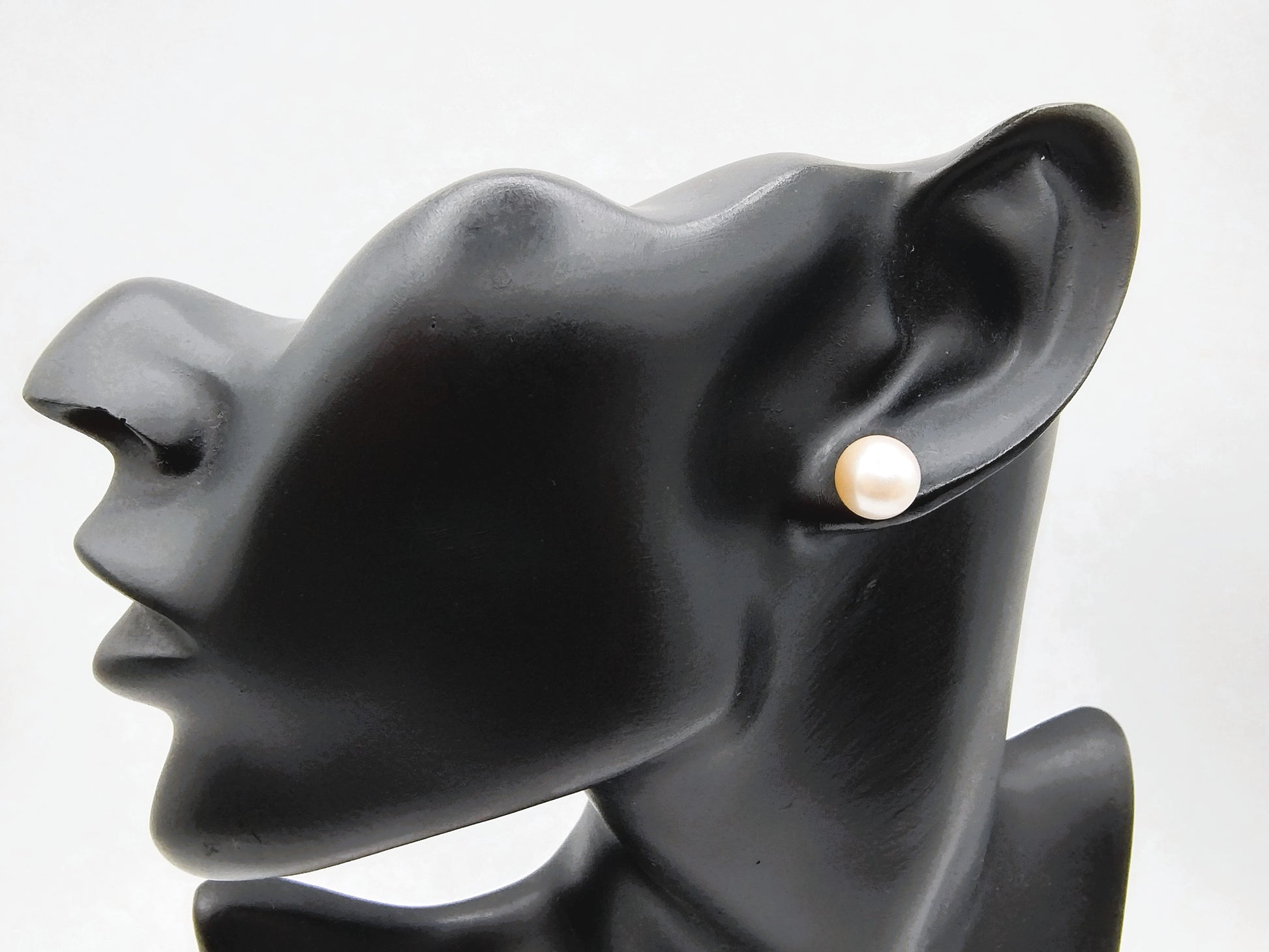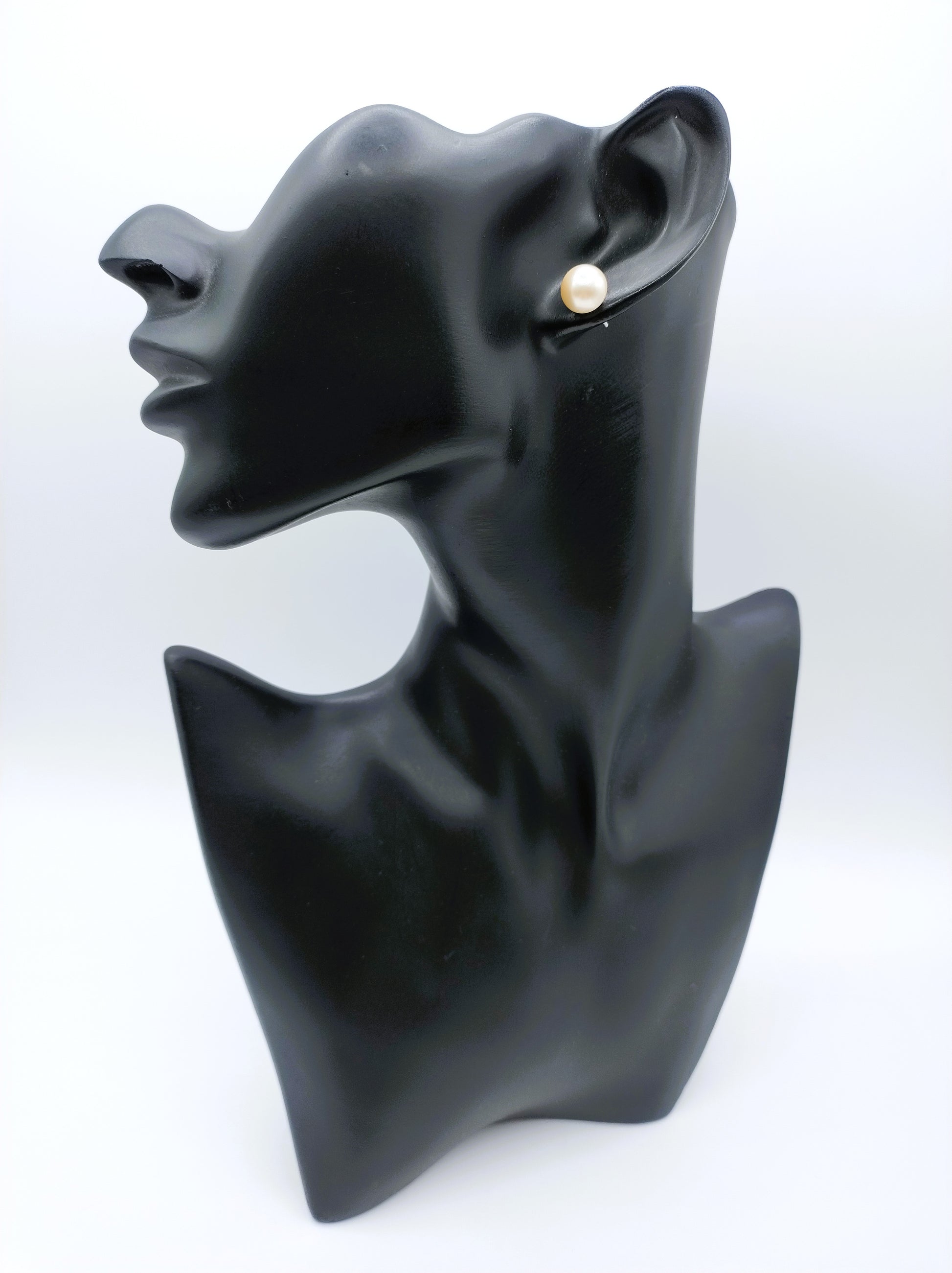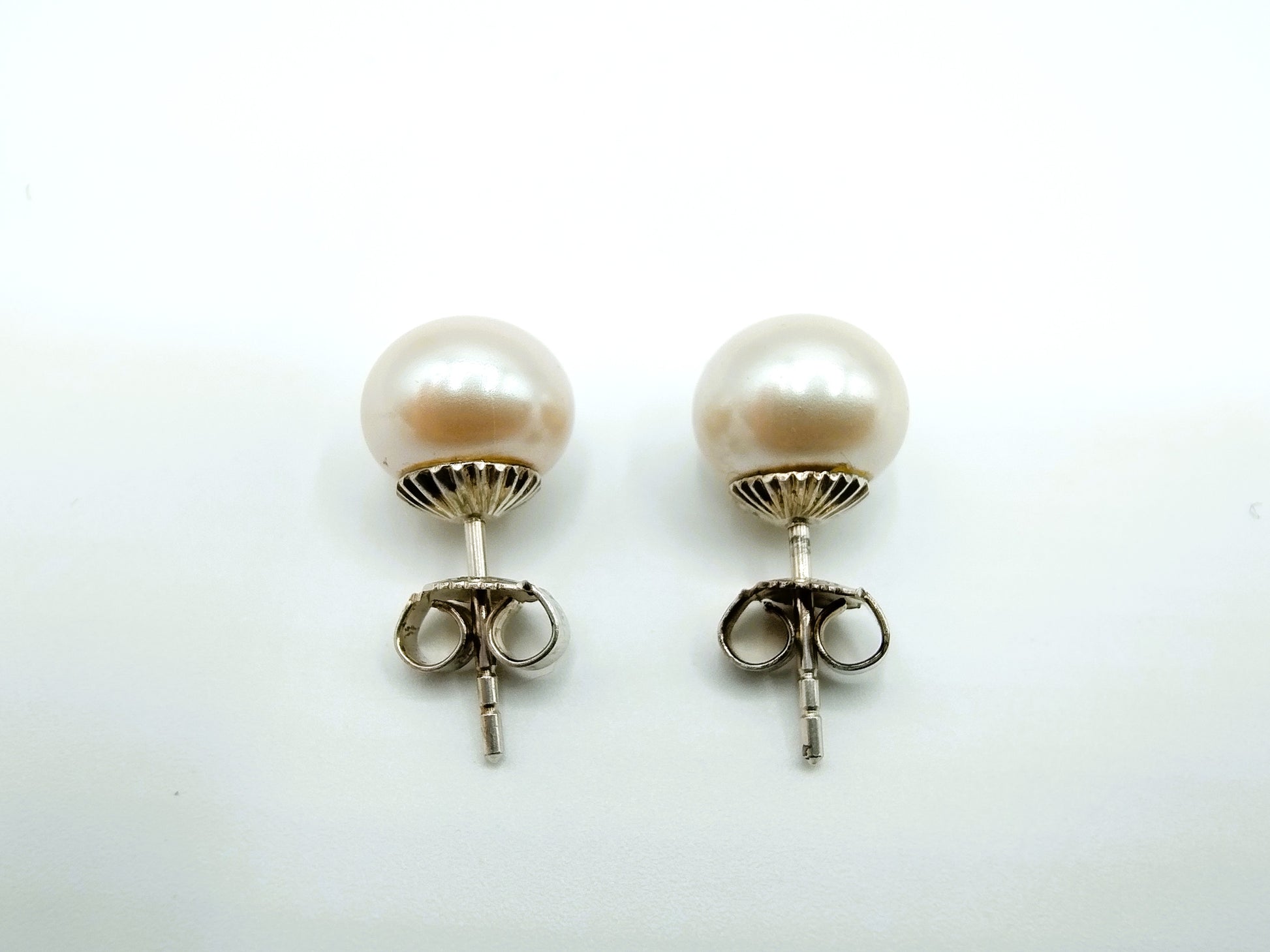 Silver stud earrings with a large pearl. 1 cm in diameter.