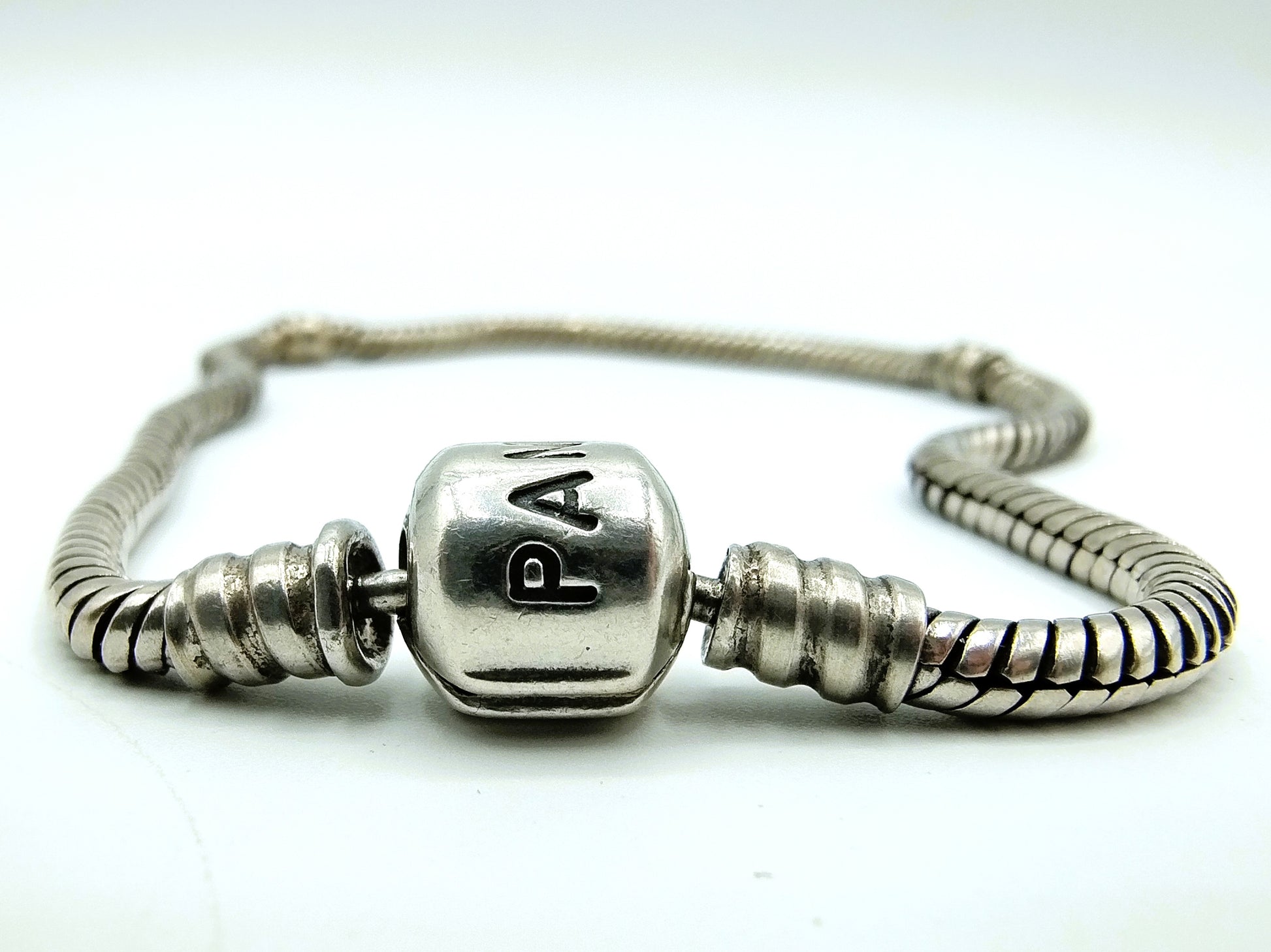 The bracelet has a clasp with Pandora on it.