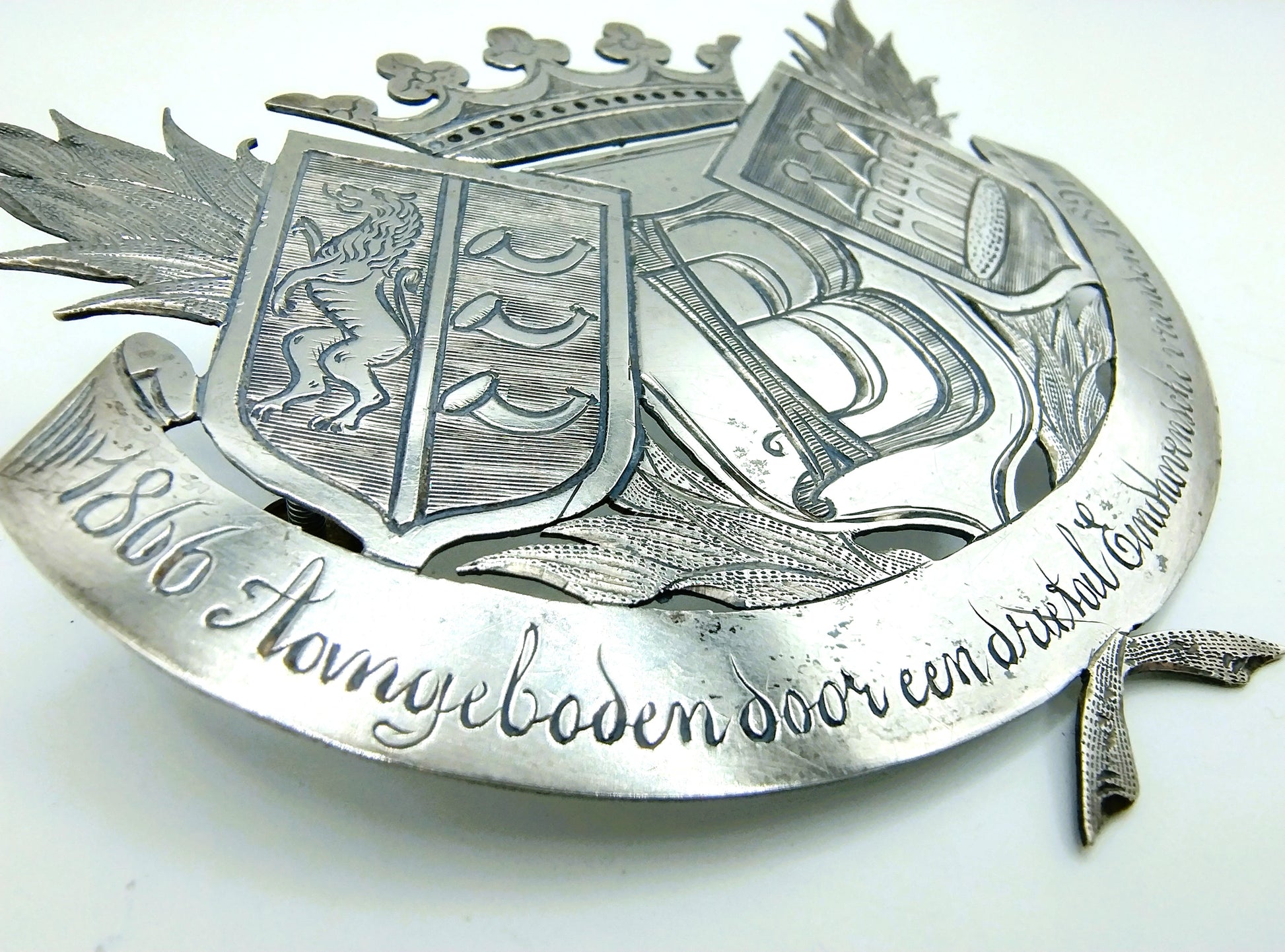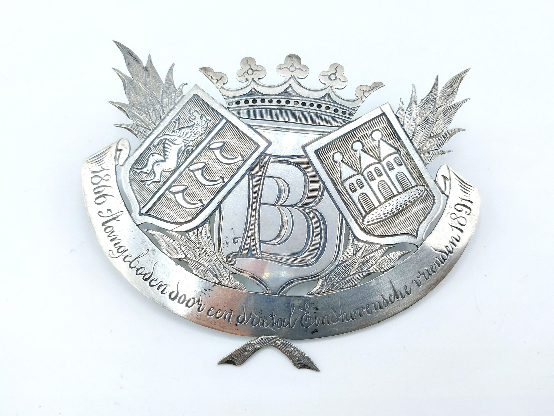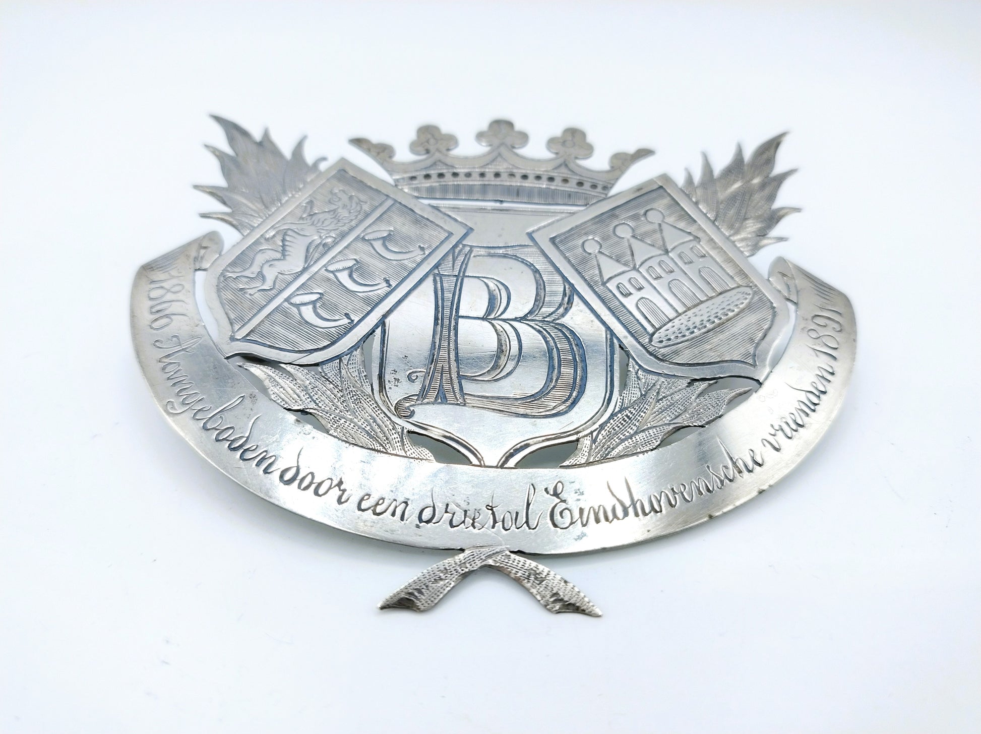 Silver plaque from 1891, offered by three friends from Eindhoven.