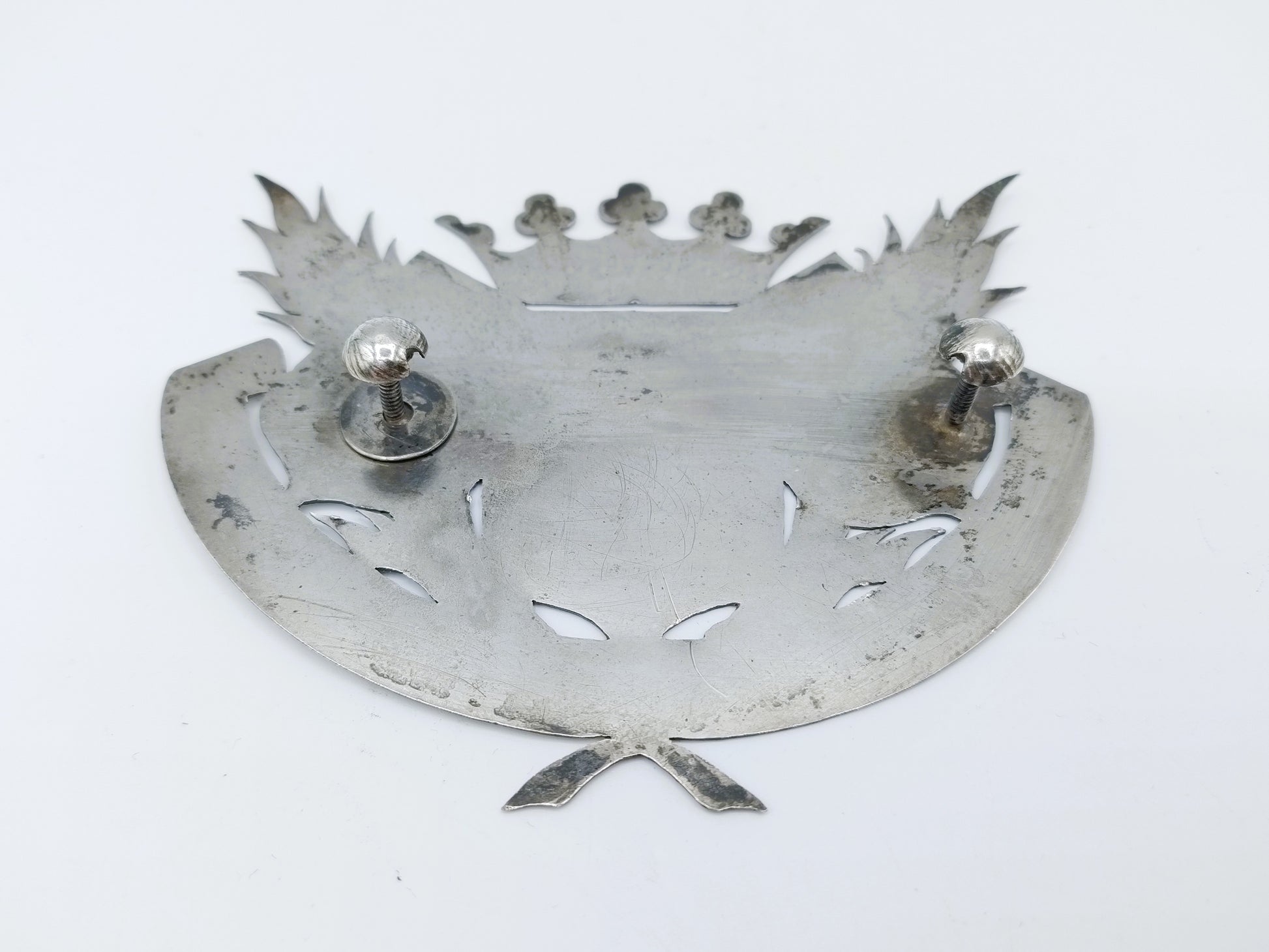 The plaque has been tested for silver content and appears to be 1st grade silver. No hallmarks present.