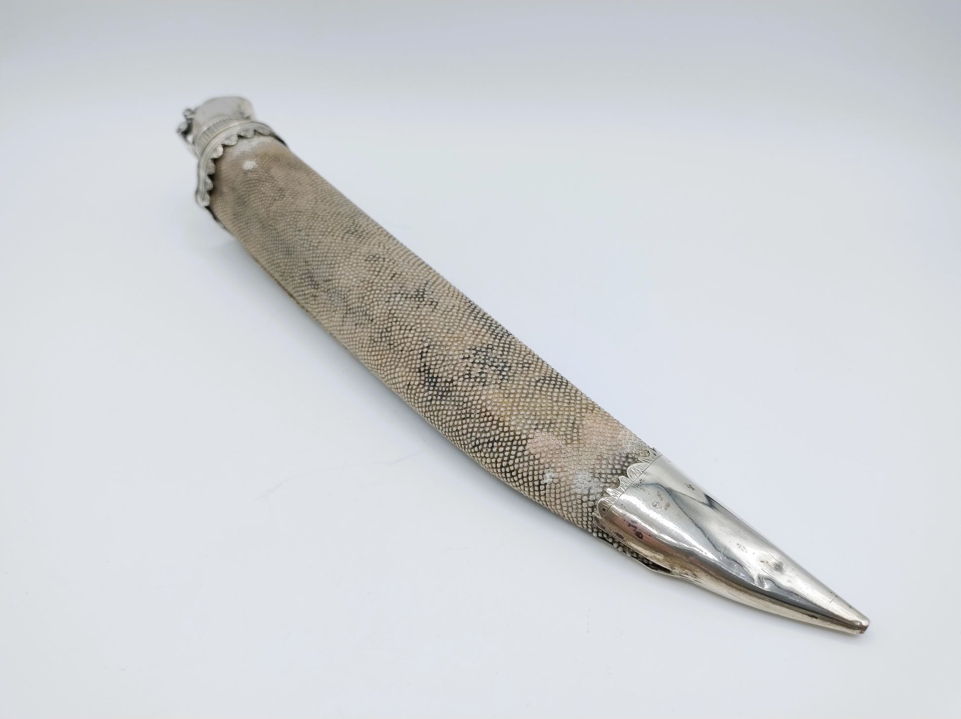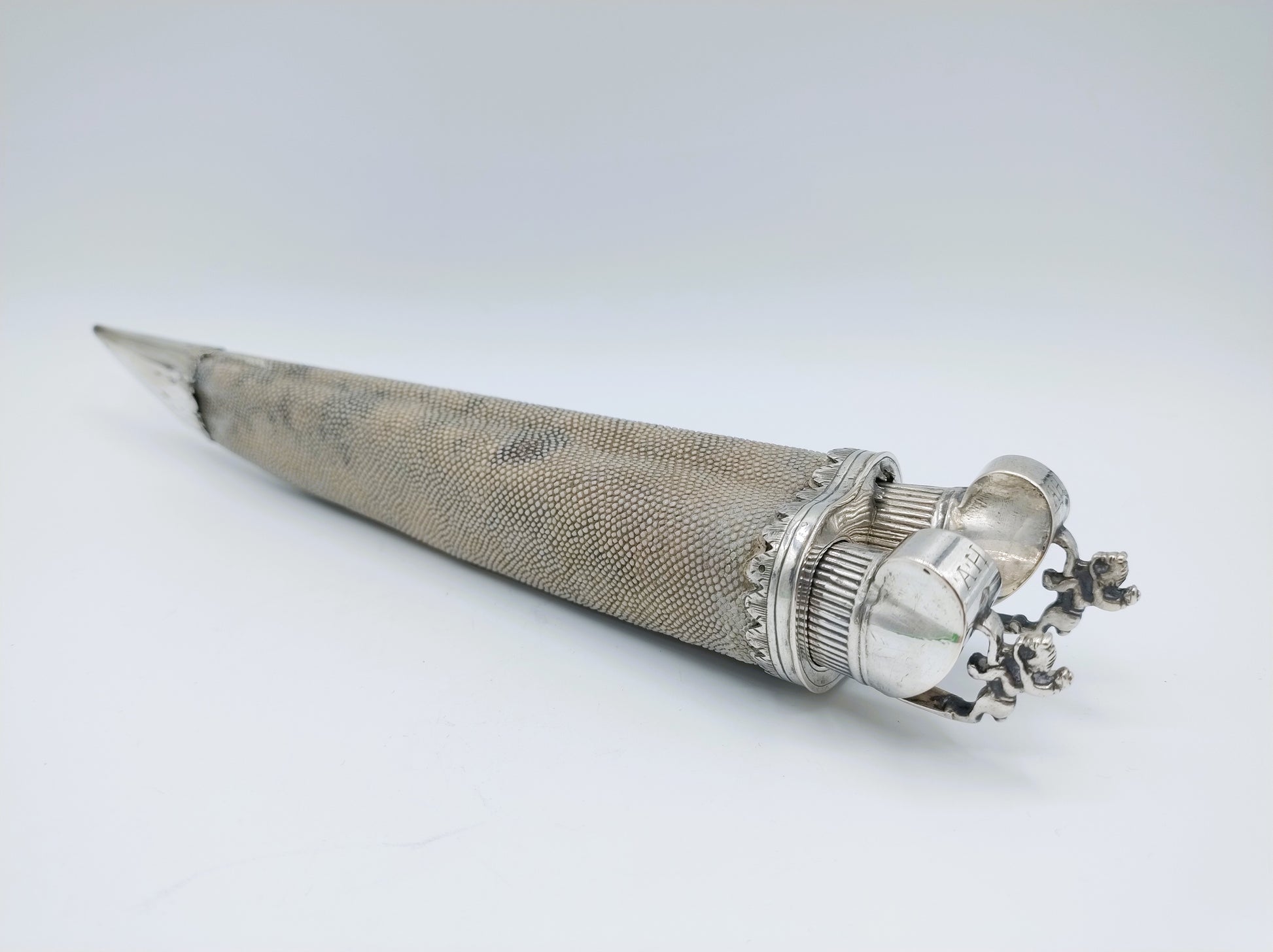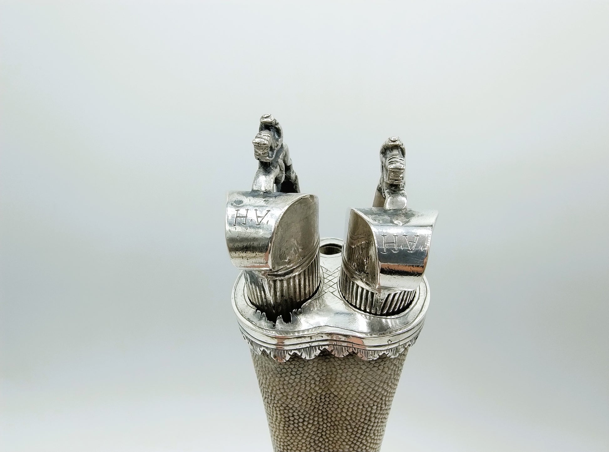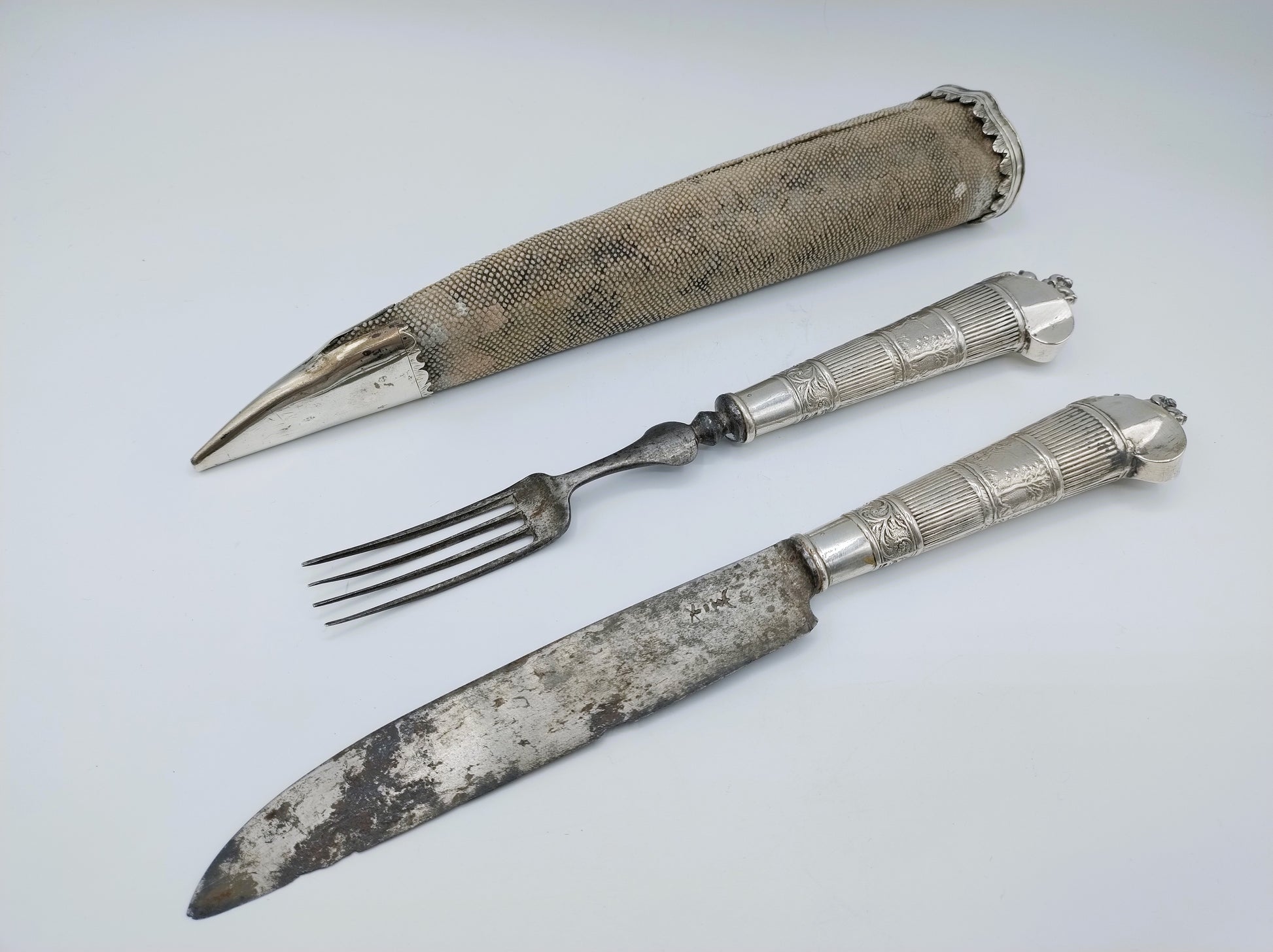 Silver travel cutlery in a shagreen case. Gouda, Ca. 1720