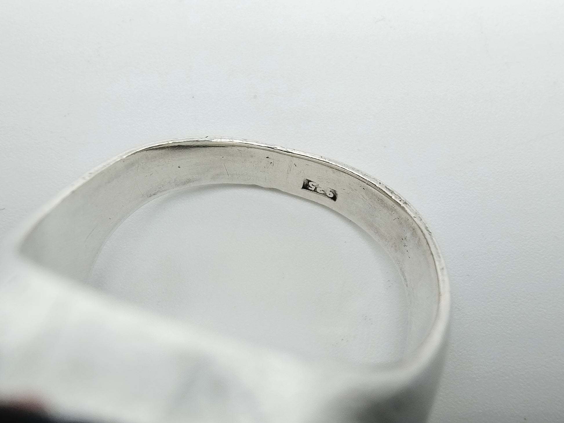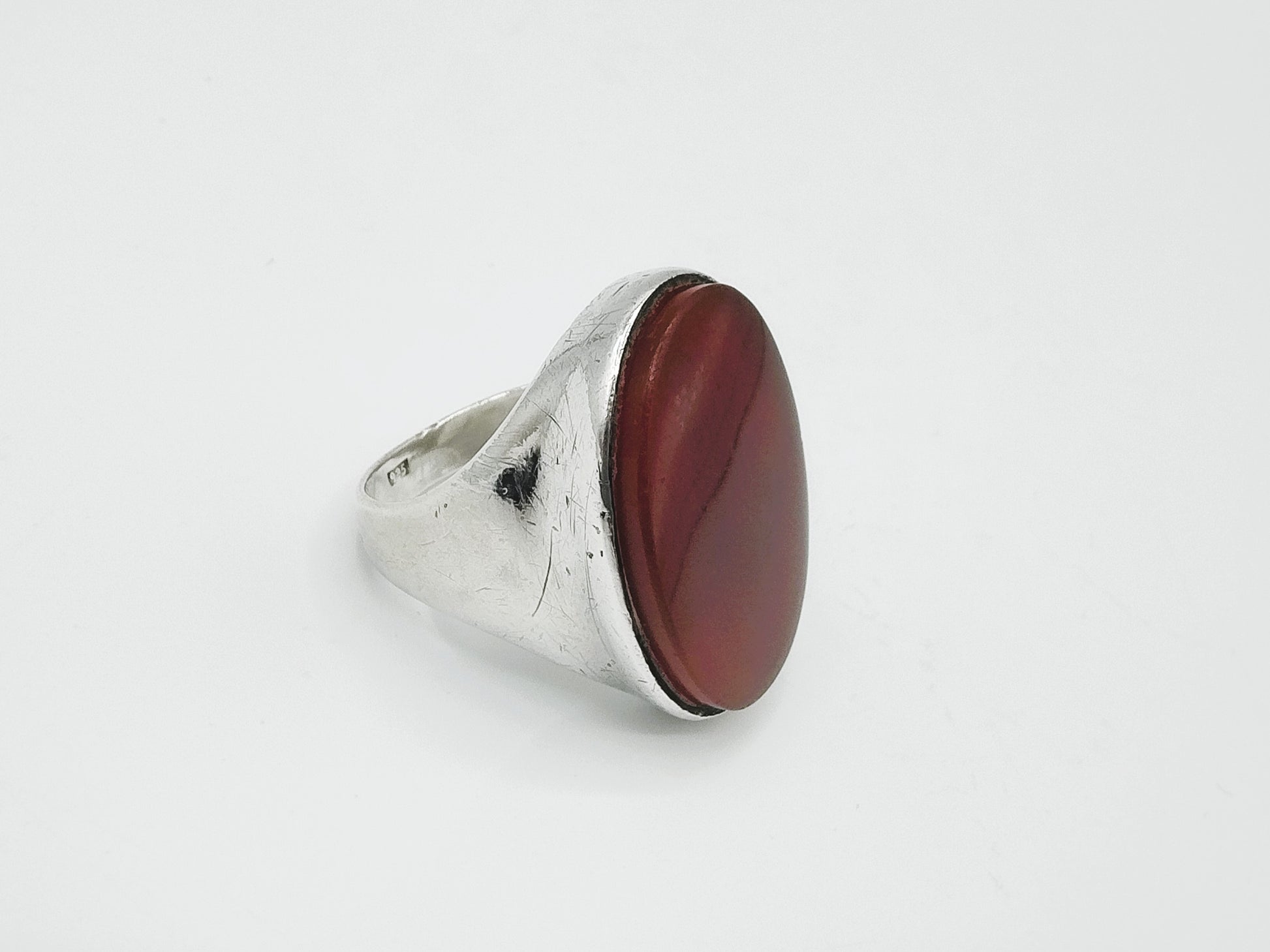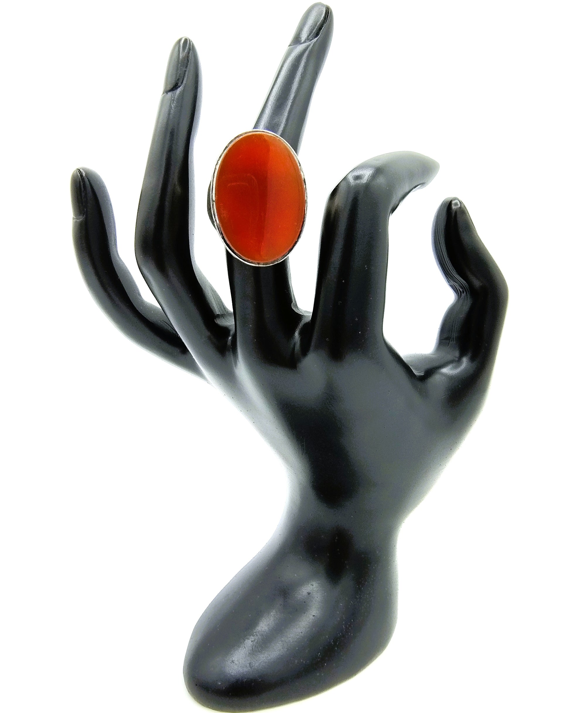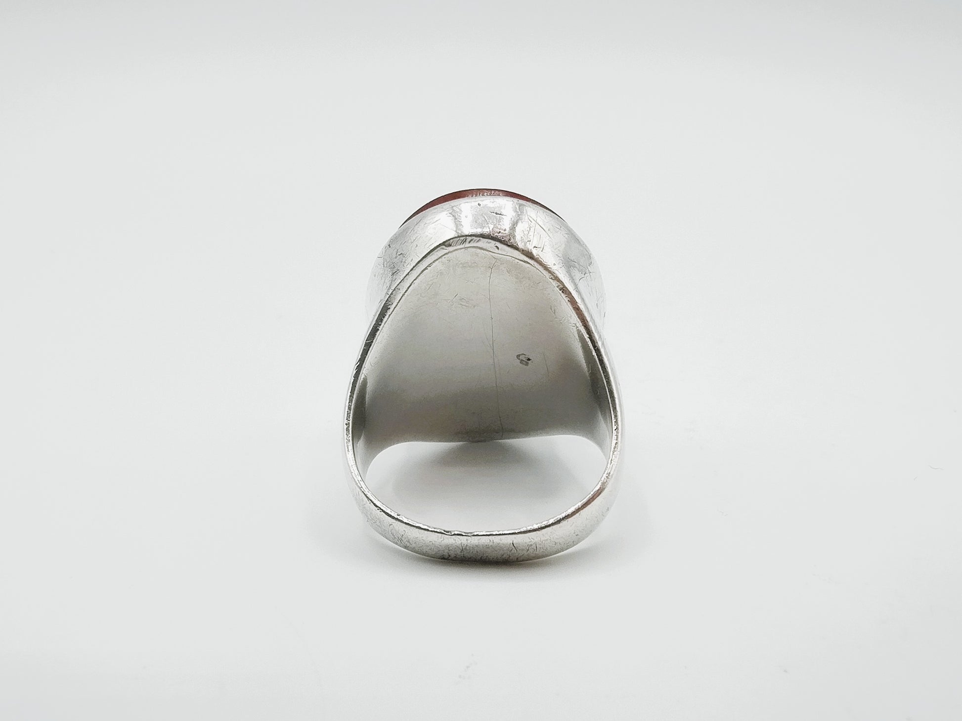 Silver ring with a large cut carnelian with dimensions: 18 x 25 mm.