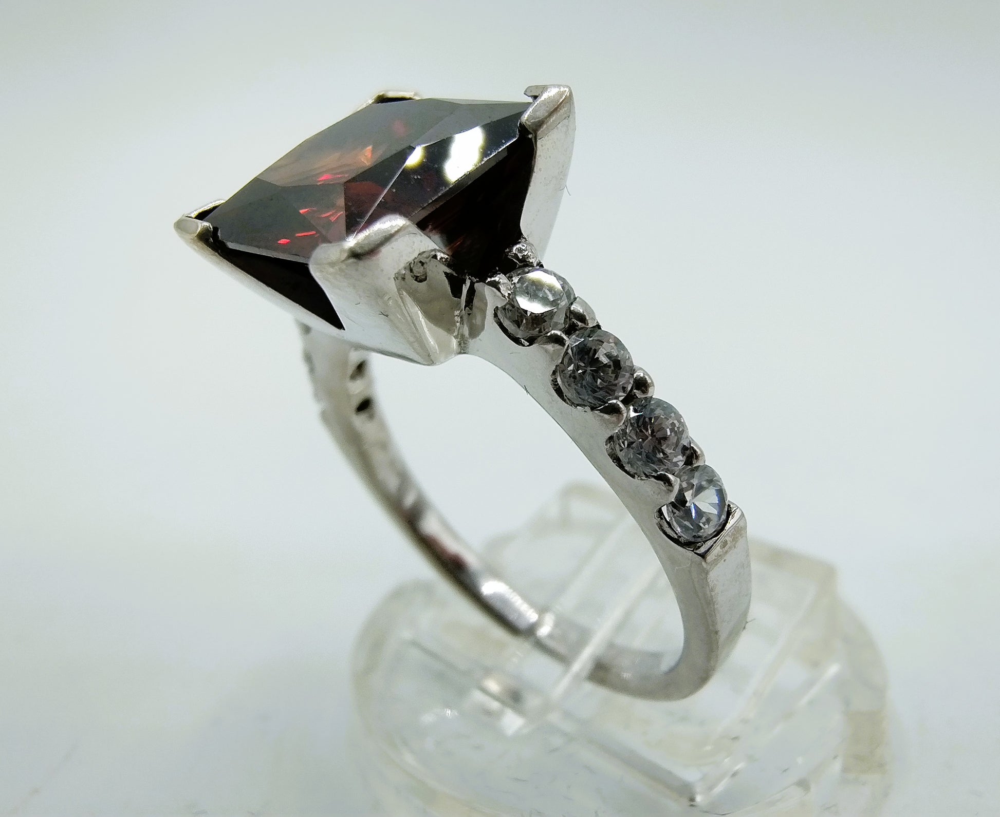 The stone has a diameter of 1 cm. Four zirconia stones are set on each side.