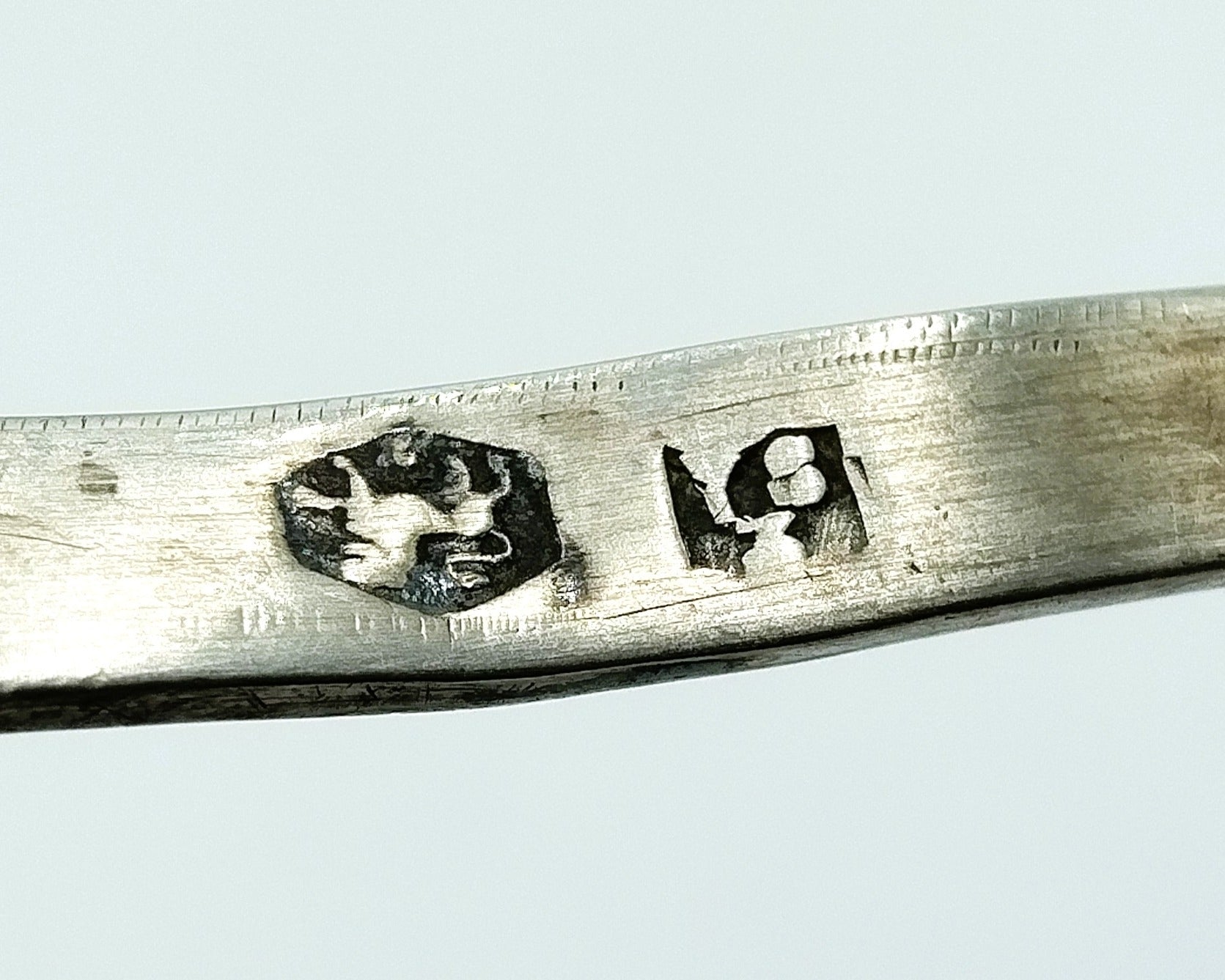 The spoon is marked with a Minerva head, second grade hallmark, date letter N for 1923 and master hallmark YS3.