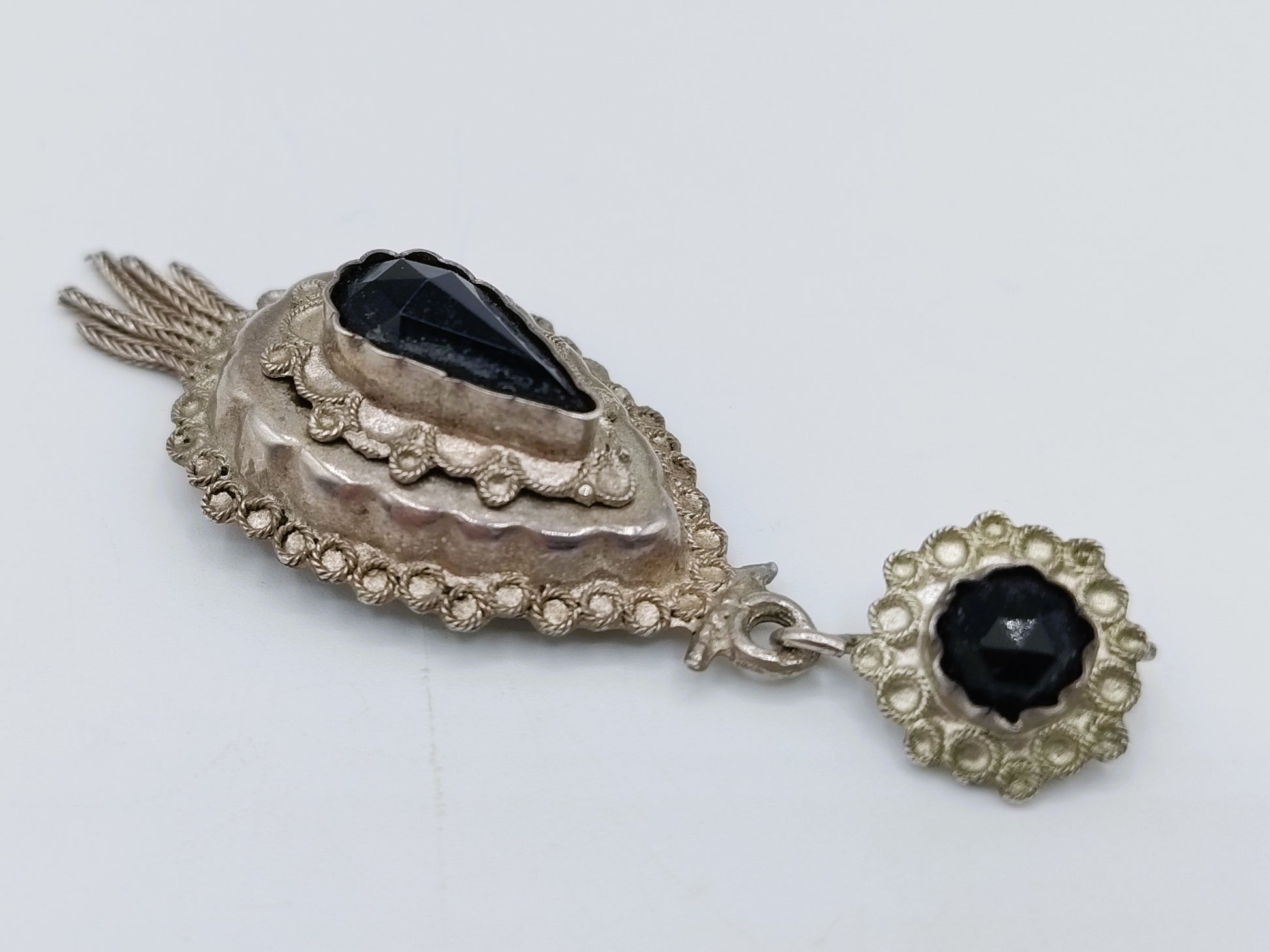 Silver (mourning) costume pendant with jets