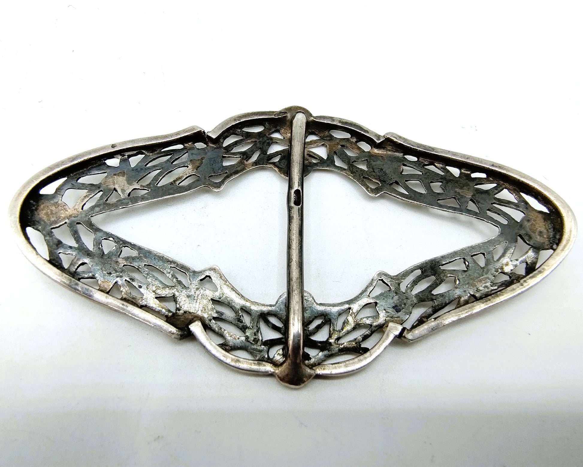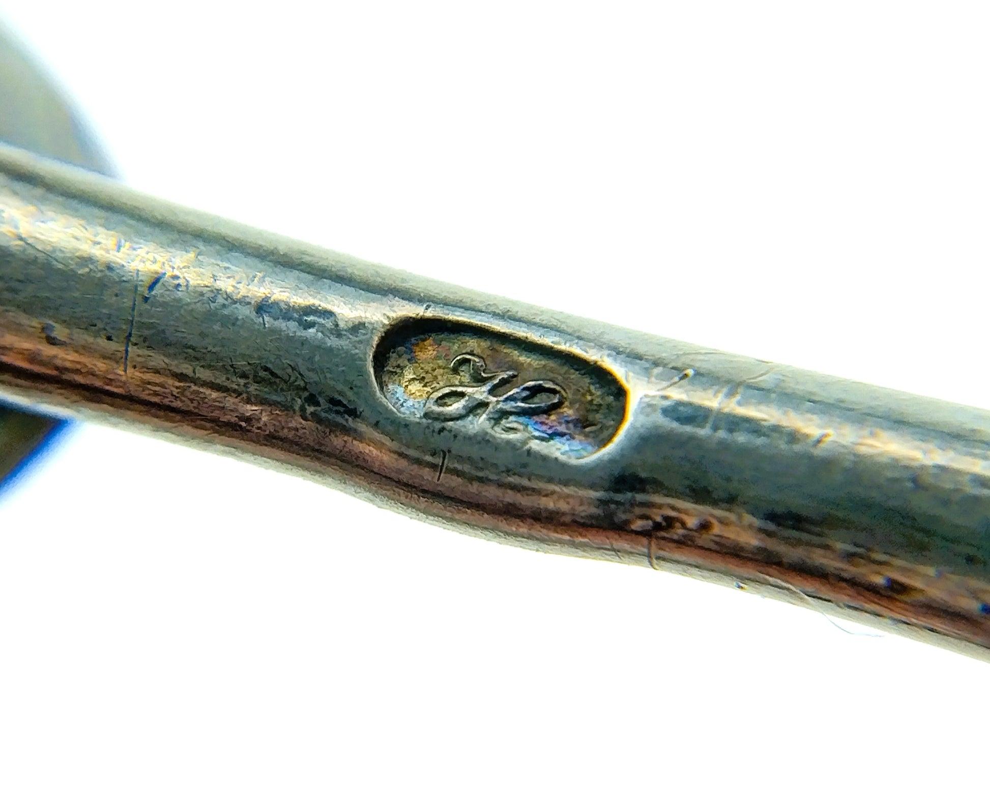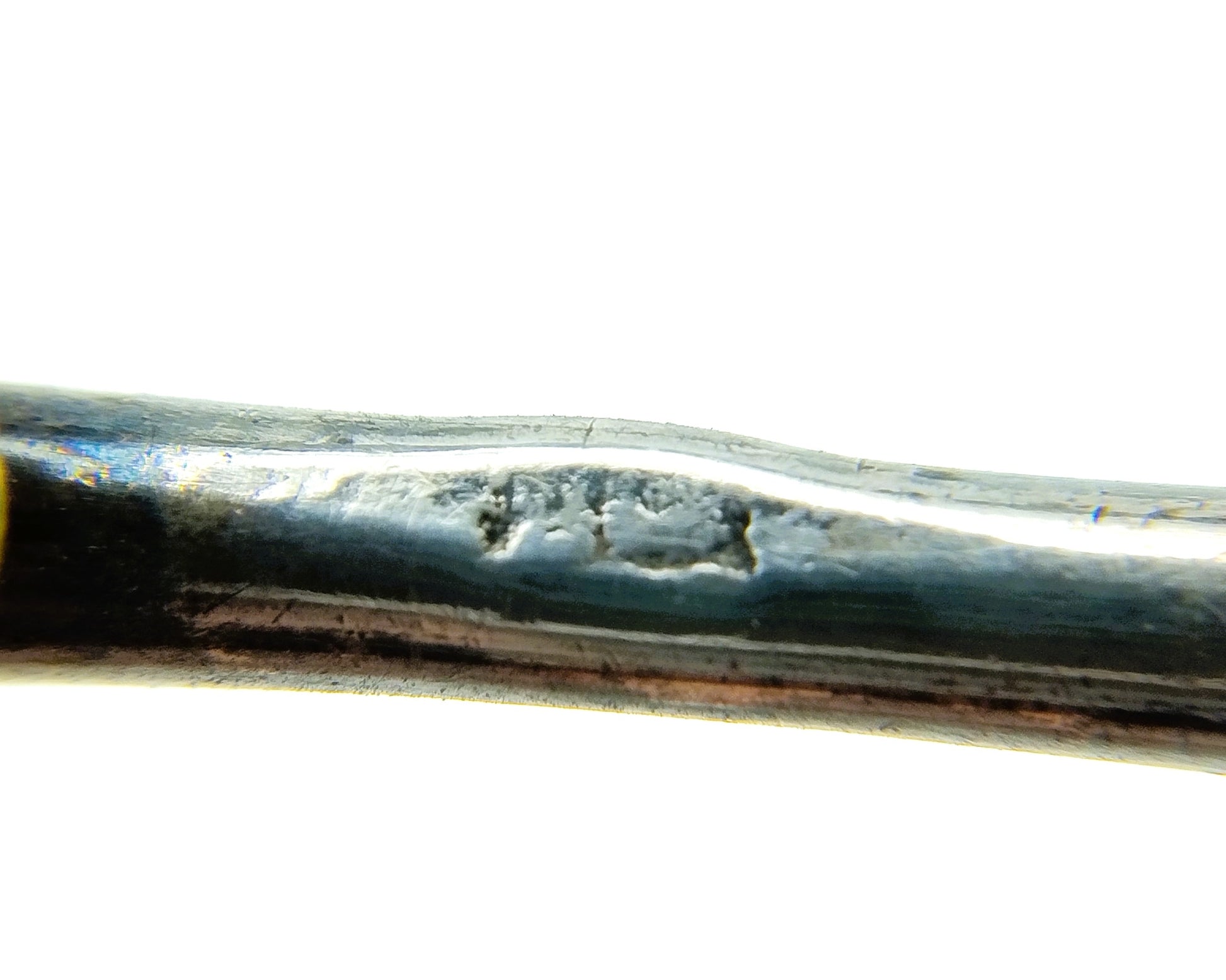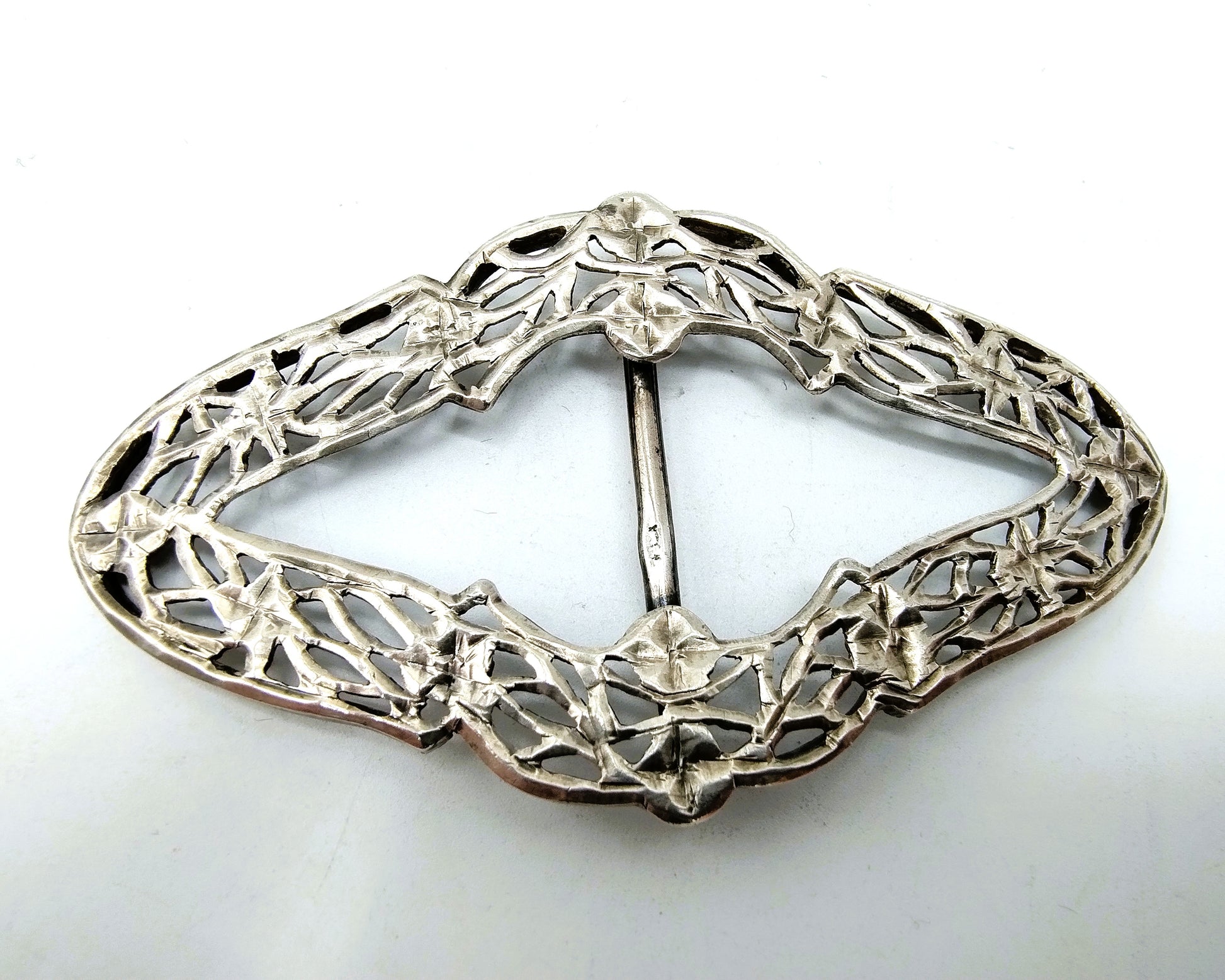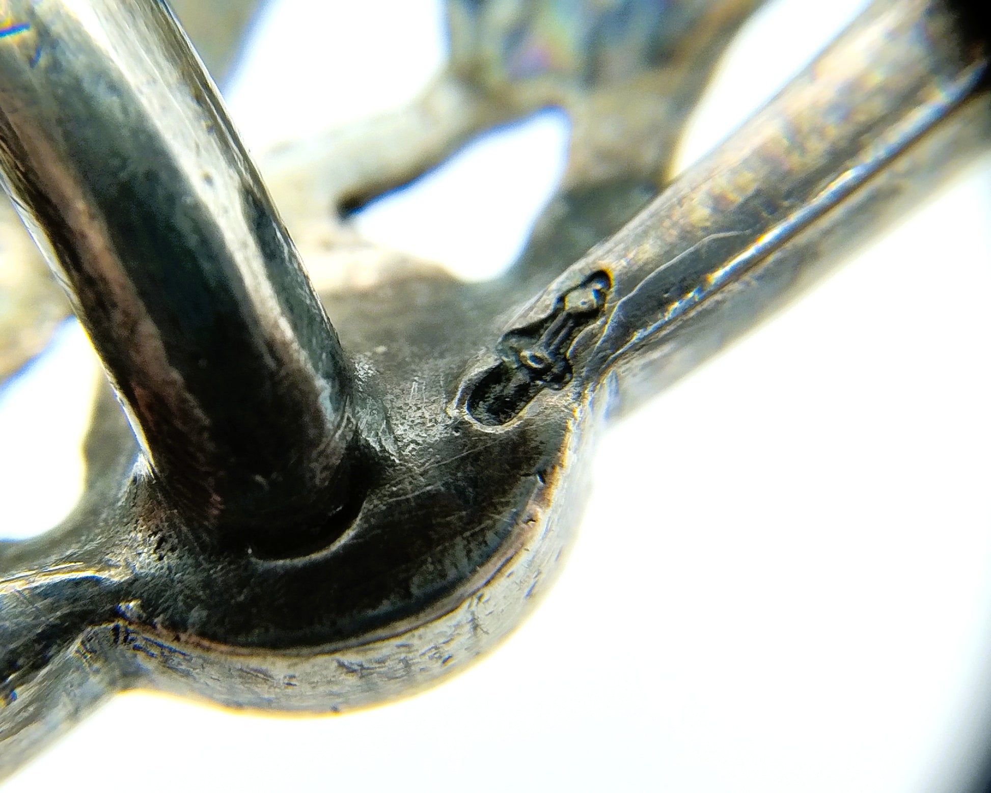 Silver shoe buckle, marked with the letter H (?) and illegible master hallmark. Also inspected with the sword.
