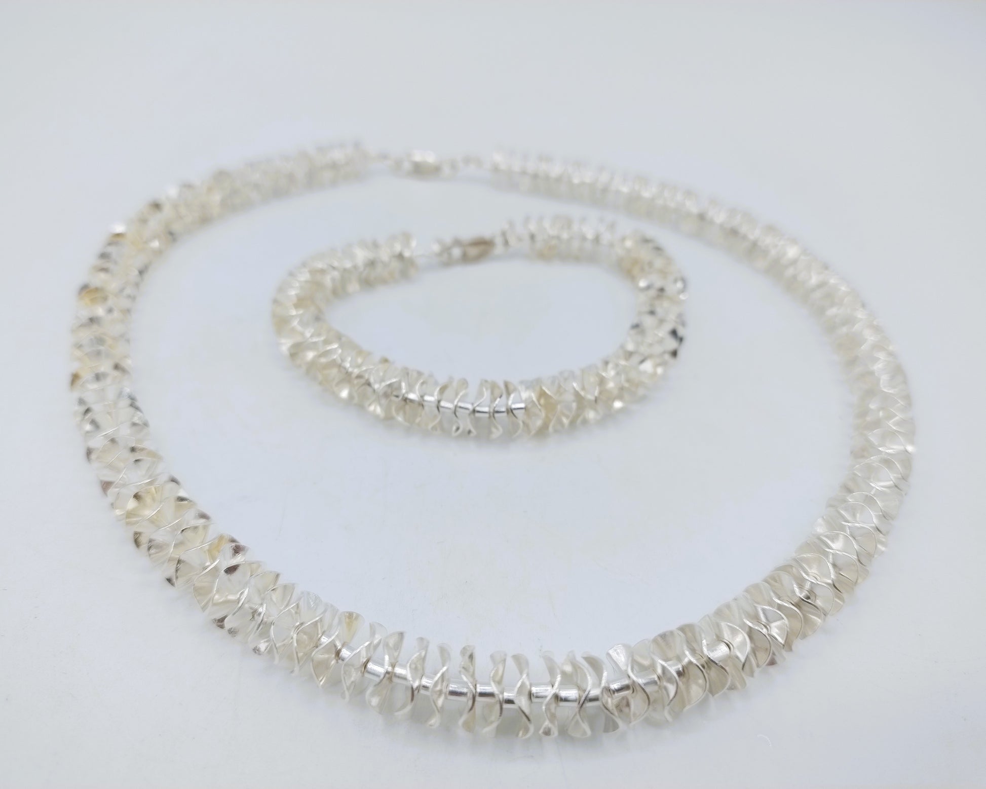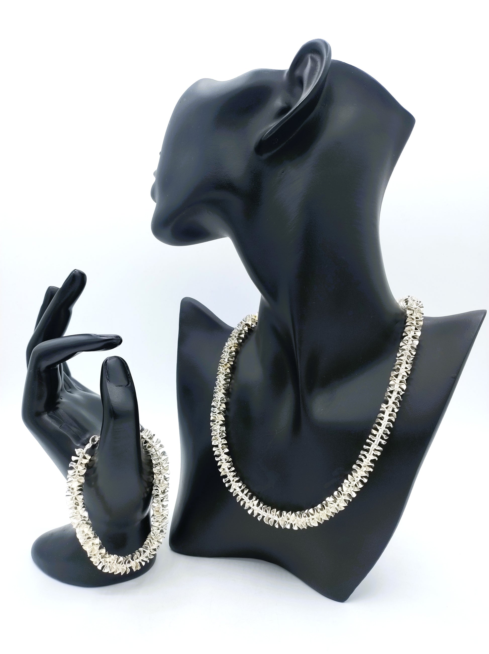 Very beautiful silver set with necklace and bracelet with a designer look.