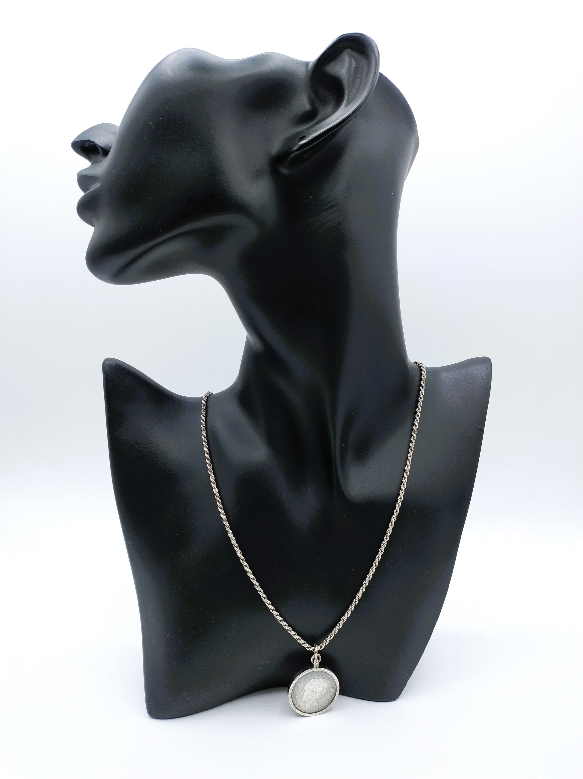 The chain has a link width of 1 mm and is equipped with a lobster clasp. The pendant has a diameter of: 2.5 cm.