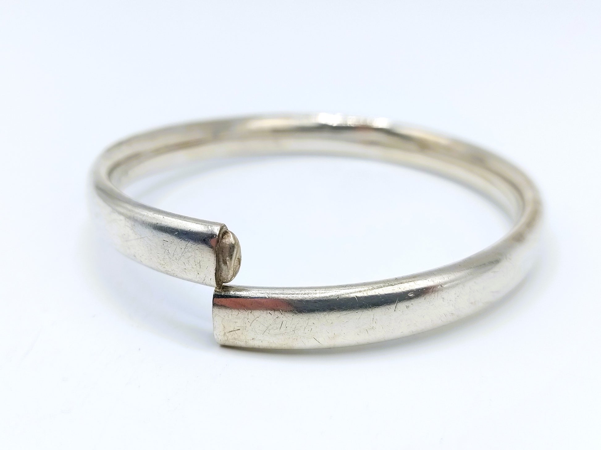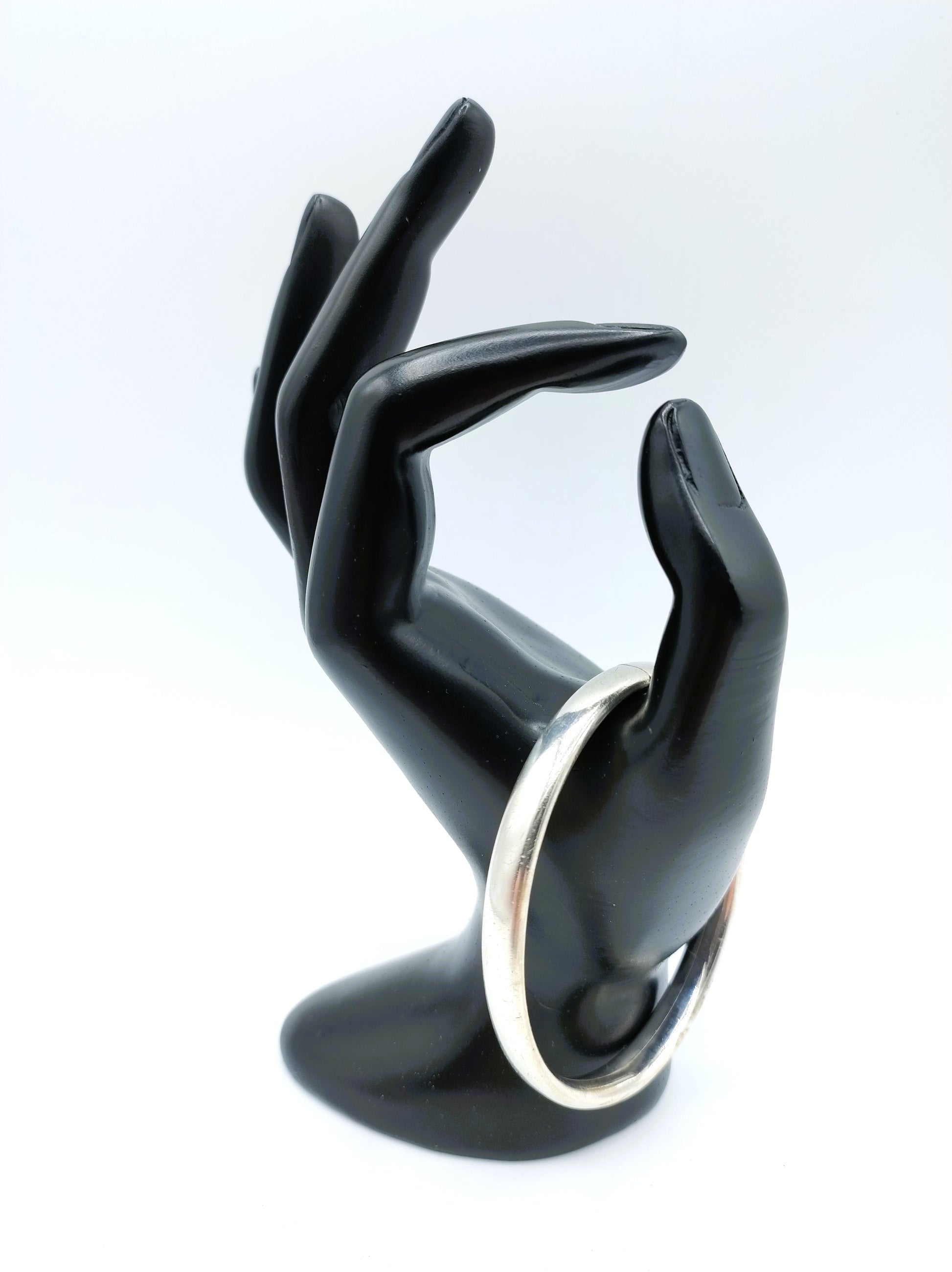 Silver slave bracelet with an inner dimension of: 5.5 x 6.5 cm.