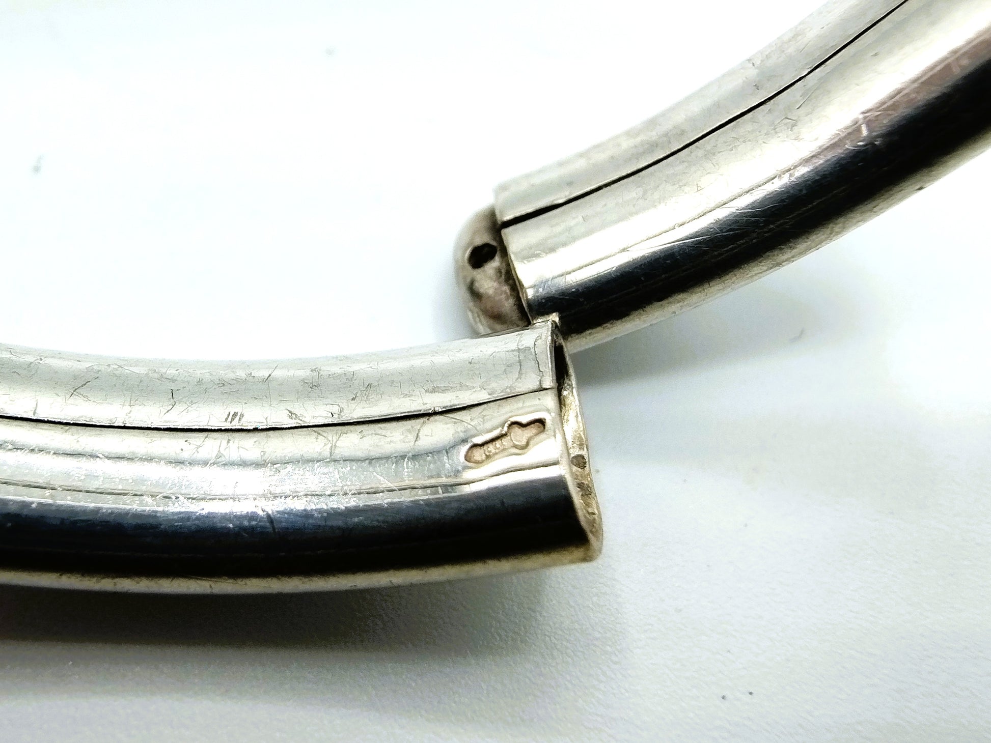 The bracelet is marked with the sword 835 for 2nd grade silver and is in good condition.