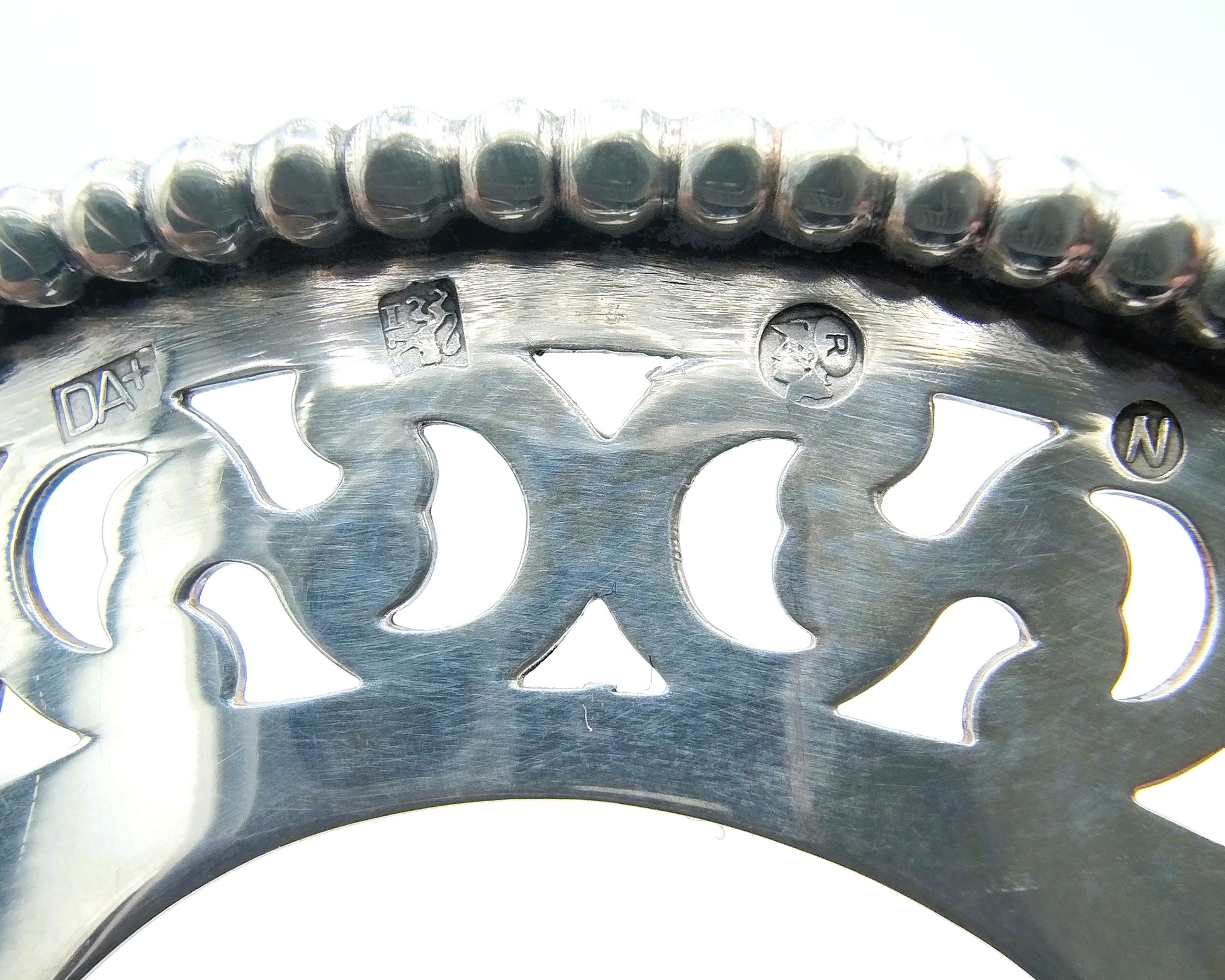The basket is marked with the master mark DA+, Minerva head, 1st grade mark 925 and year letter n for 1997.