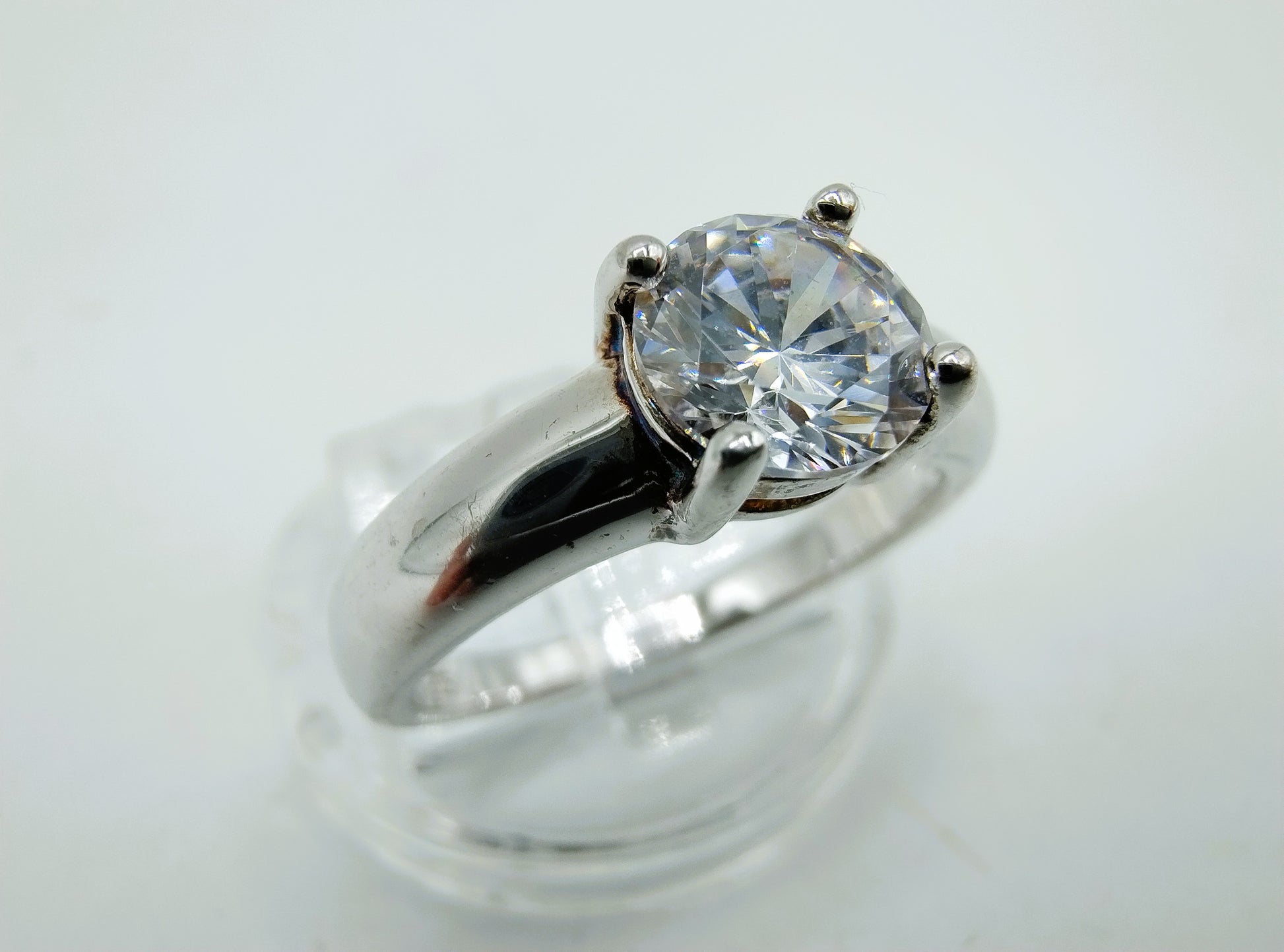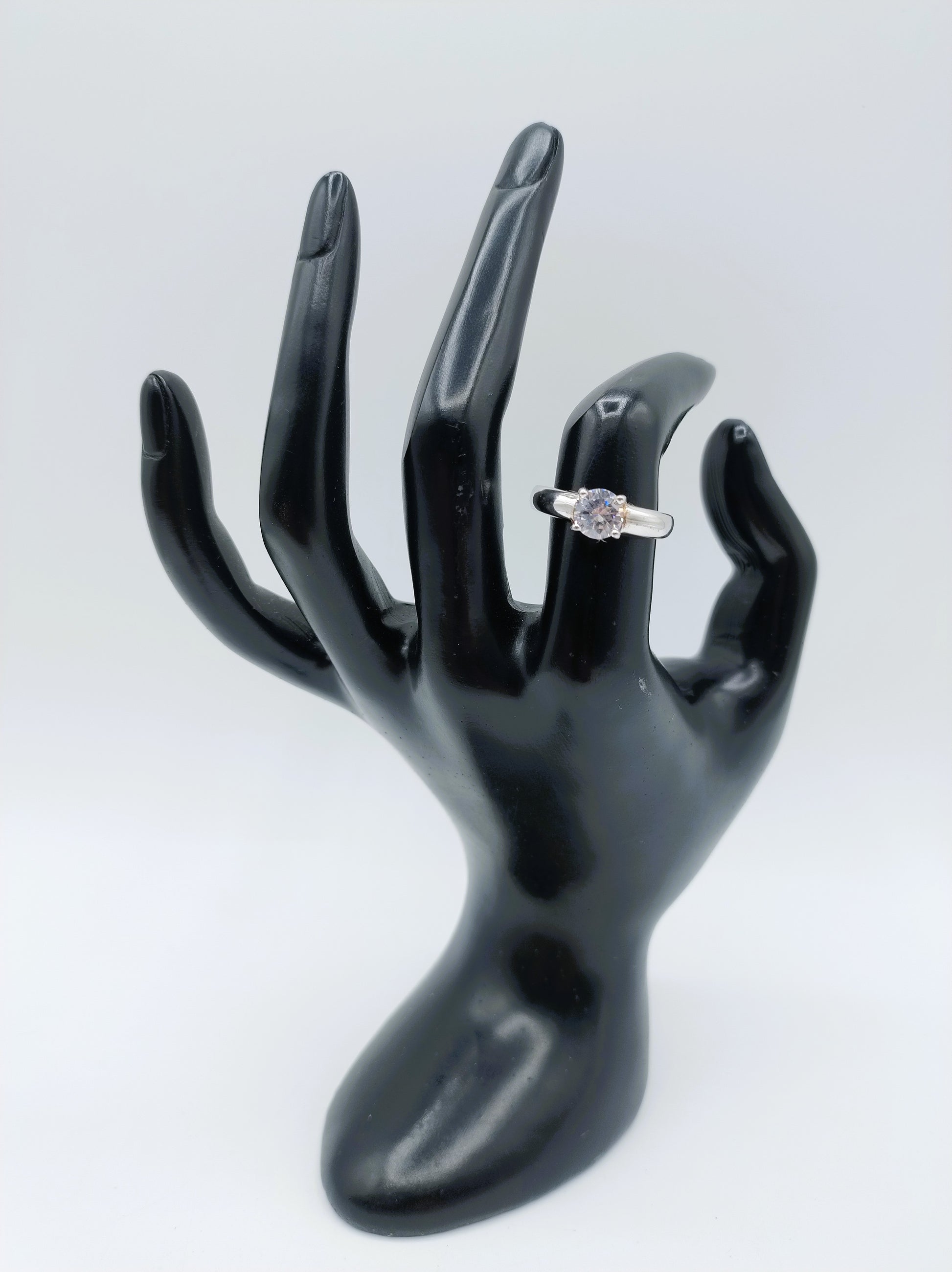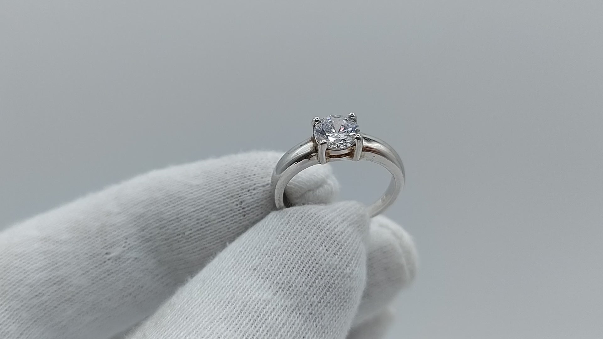Silver ring with a sparkling zirconia, brilliant cut. The stone has a diameter of 6 mm.
