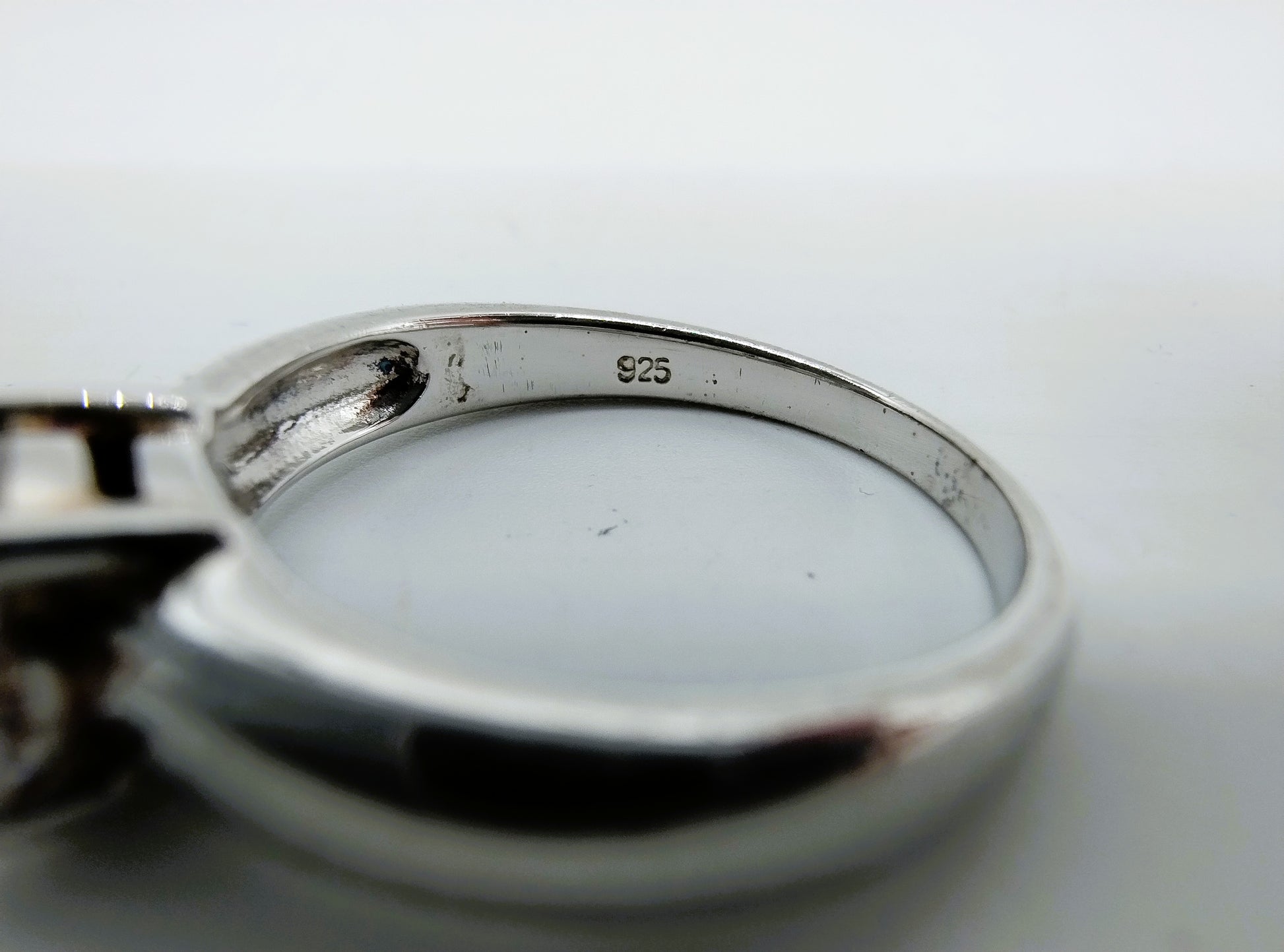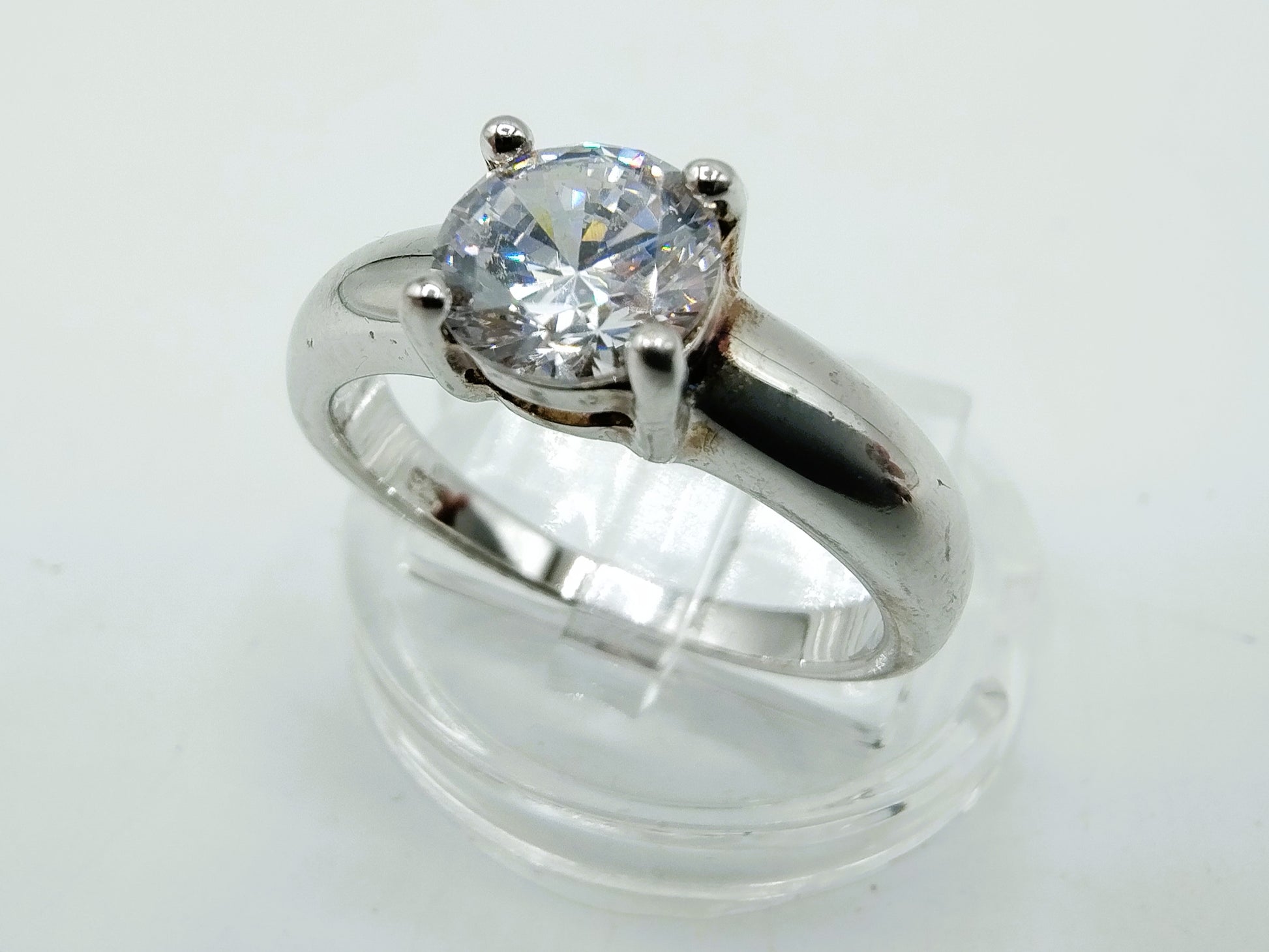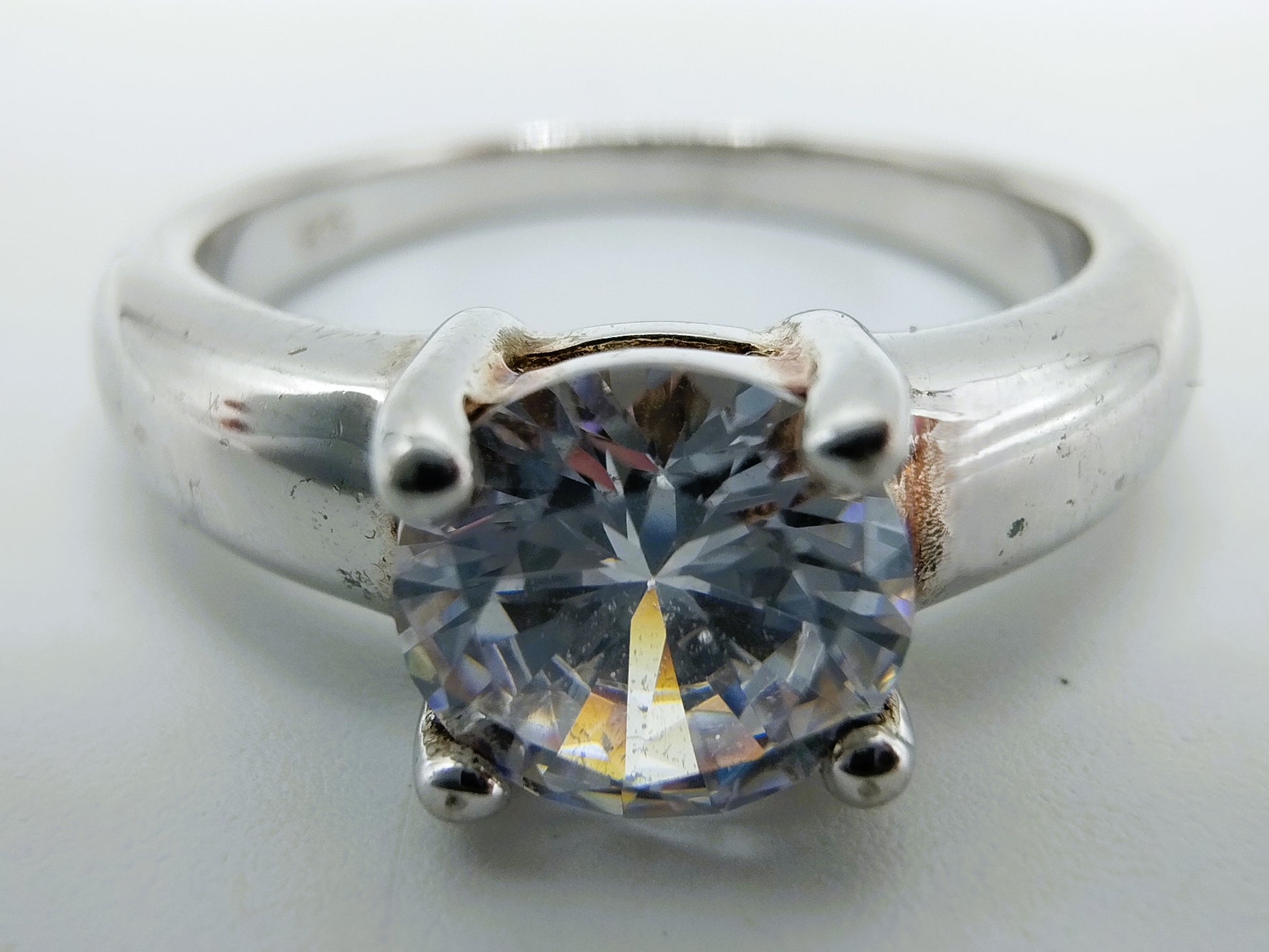 Silver ring with a sparkling zirconia, brilliant cut. The stone has a diameter of 6 mm.
