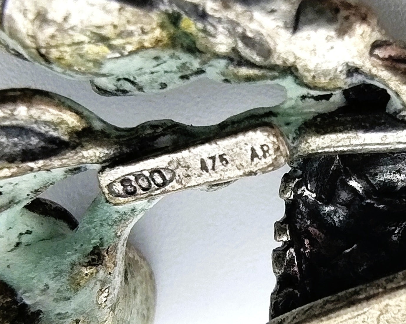 The pin is marked with master hallmark 475 AR and 800 for 3rd grade silver.