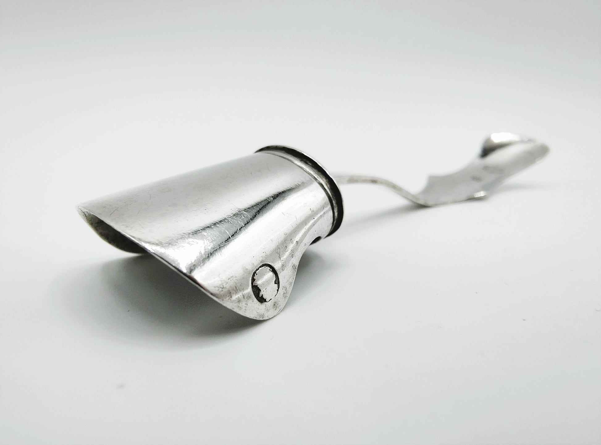 De lepel is verder gekeurd met het minervakopje, jaarletter T voor 1853 en het minervakopje.